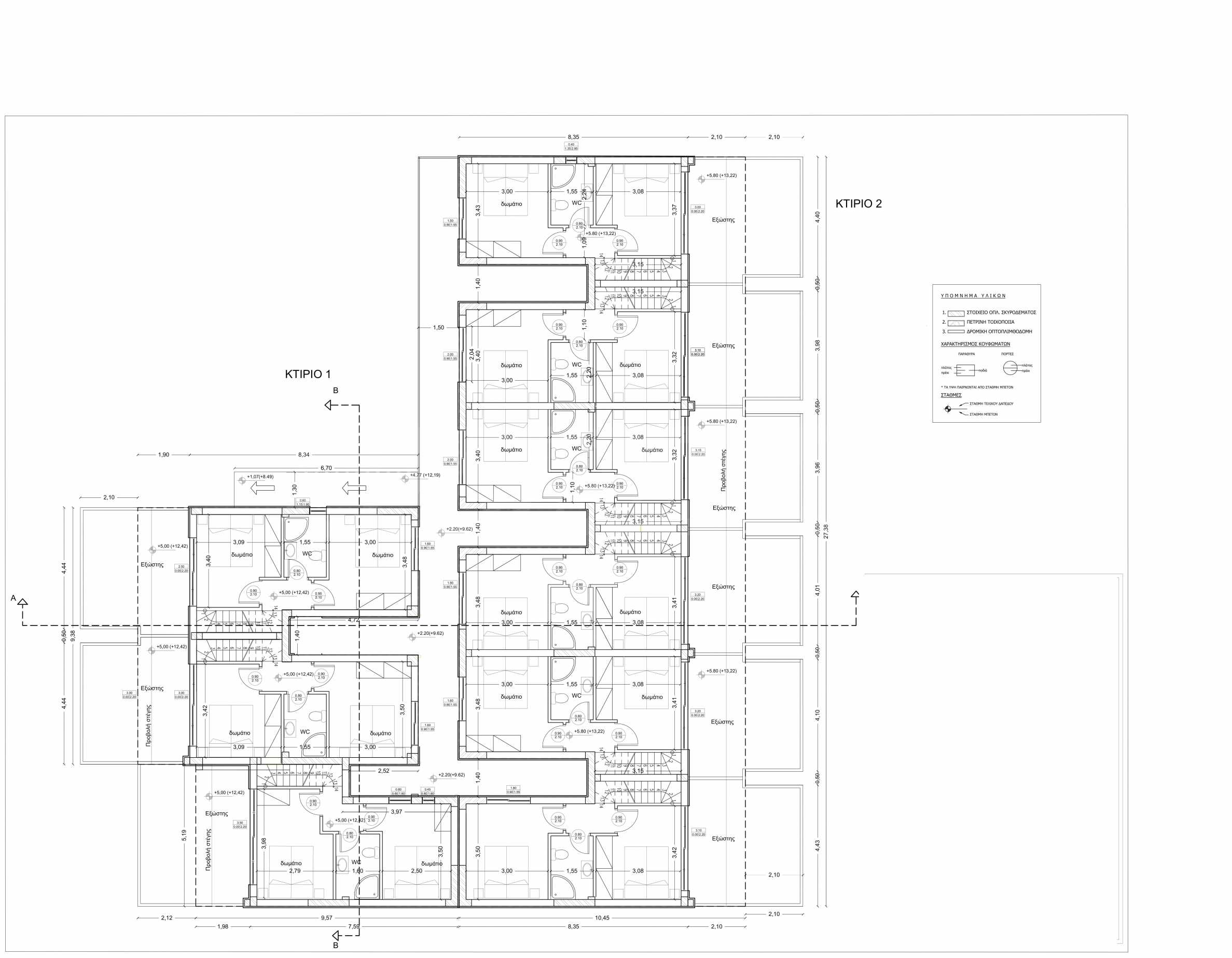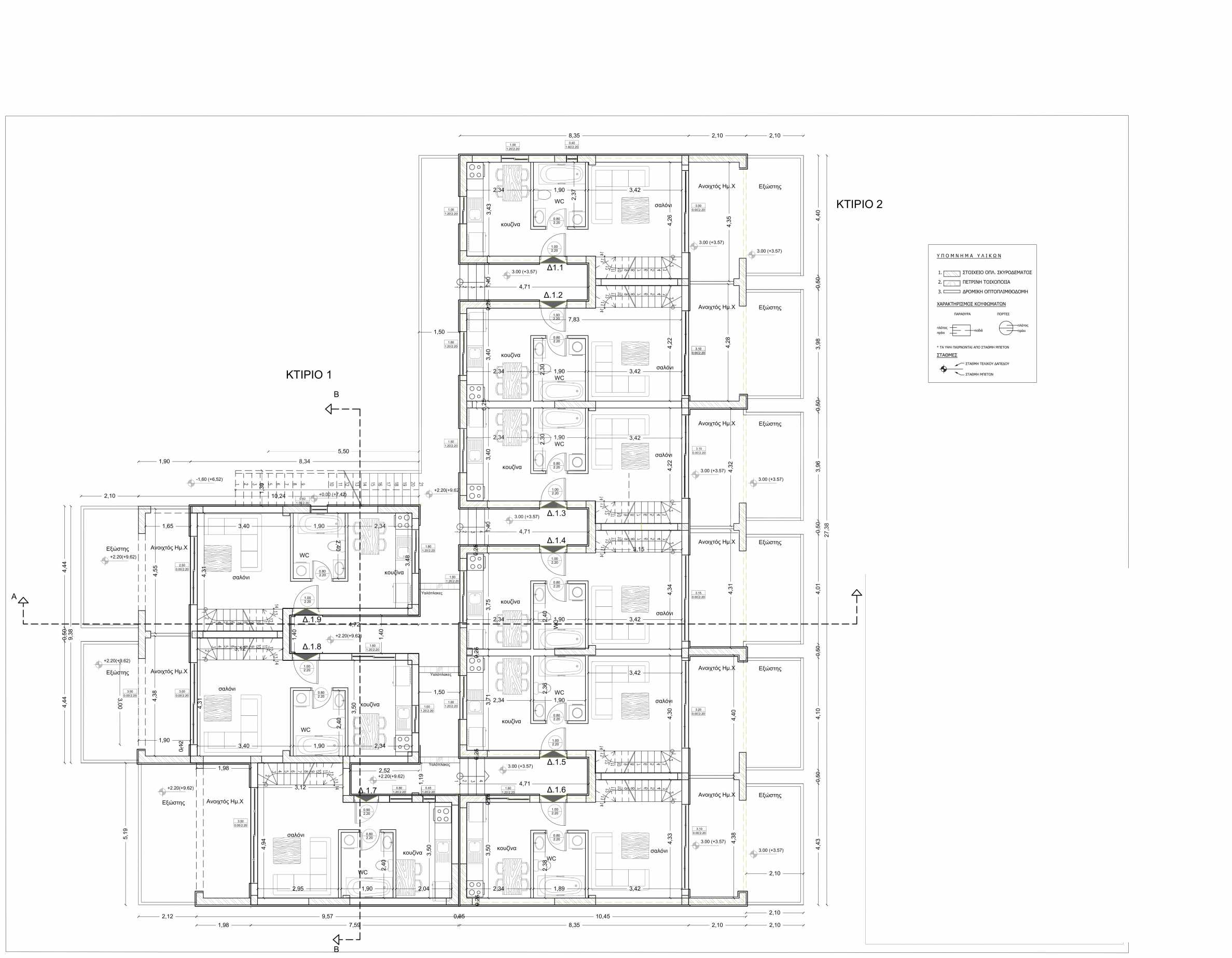 На първо ниво (партер) са разположени двустайни апартаменти, а на второ и трето ниво са разположени тристайни апартаменти тип мезонет.