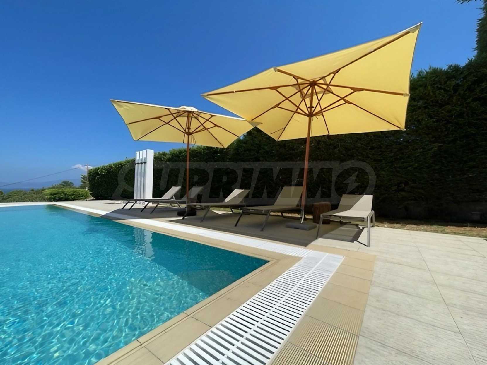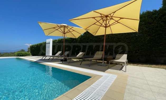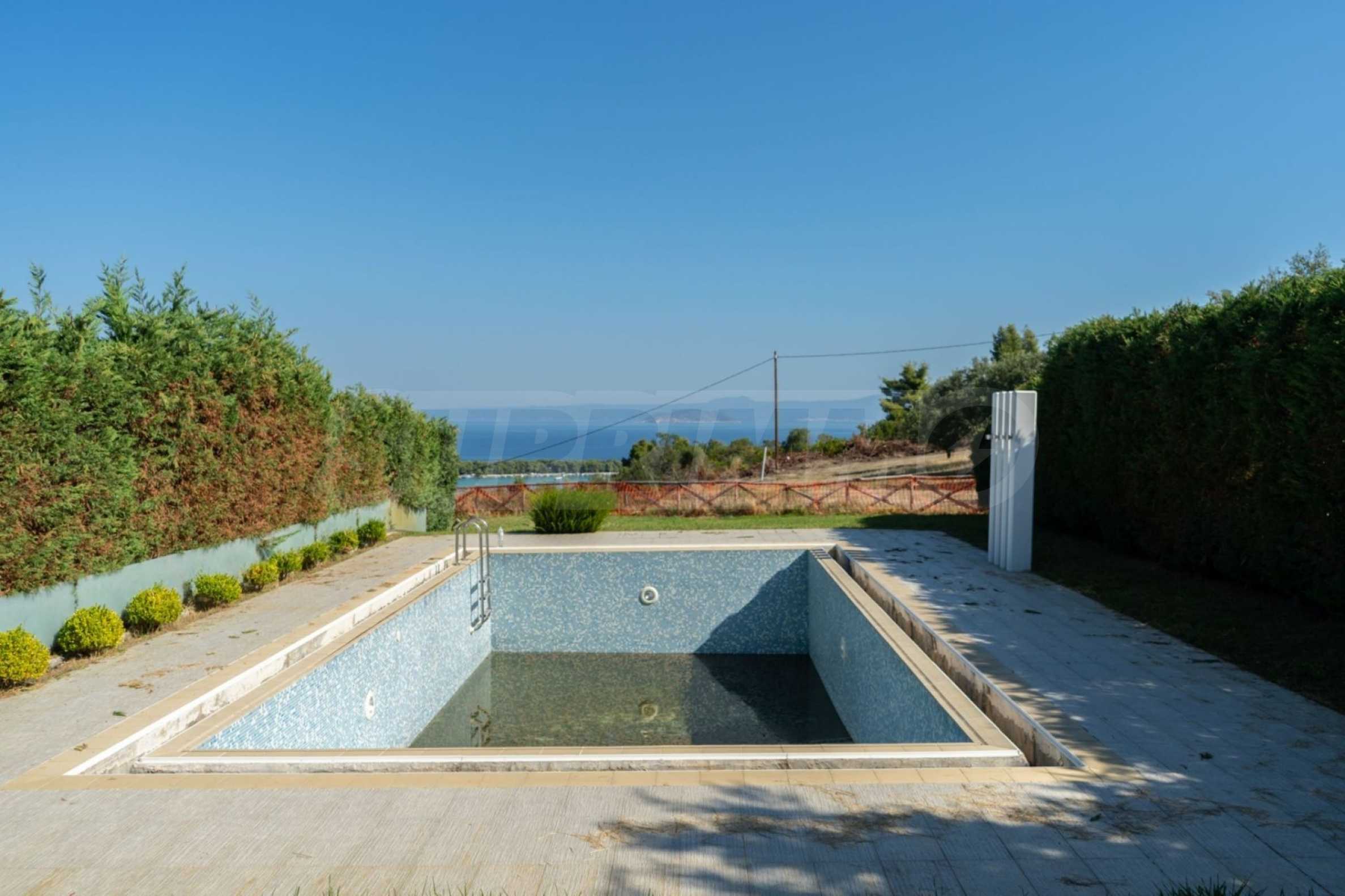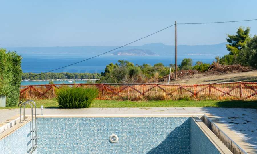 Луксозен имот, Красива самостоятелна къща с басейн, на забележително място в Касандра, в сърцето на Халкидики. Имотът е разположен на площ от 550 кв.м. , с изключителна морска панорама, на 4.7 .км от центъра на селото Състои се от 3 нива с общо 148 кв.м. жилищна площ. Имотът включва 4 спални, склад и 2 бани