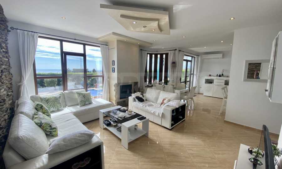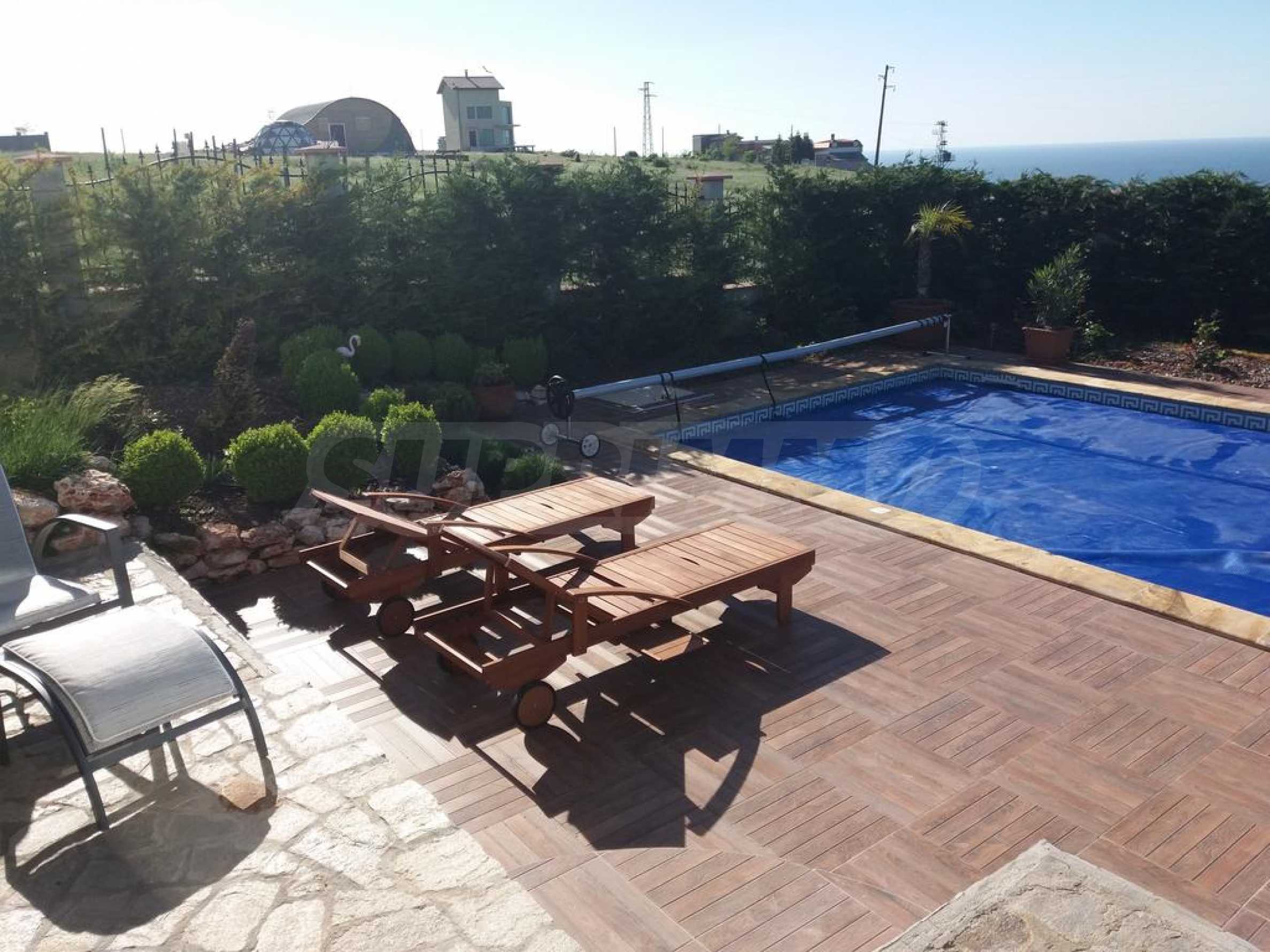 Изложението на имота е изключително благоприятно, като от всяка стая на къщата се разкрива красива гледка към морето. В имота има изградена камина с водна риза за отопление на цялата къща, което го прави подходящ и за целогодишно обитаване.