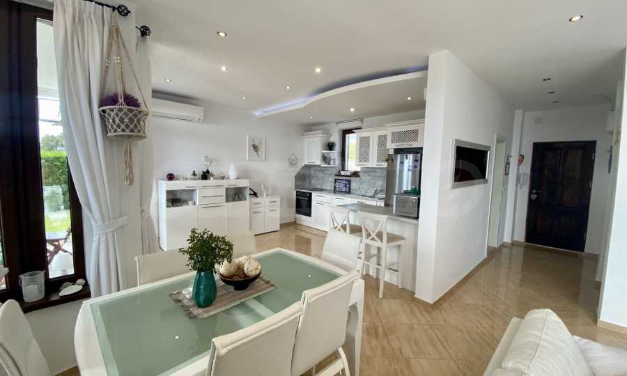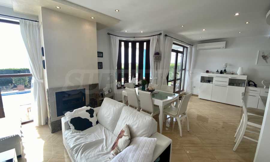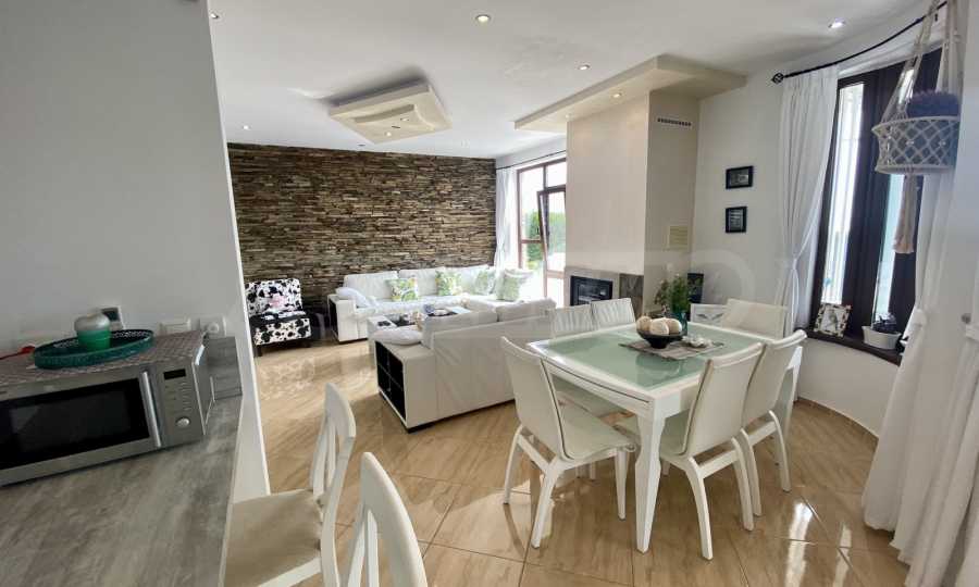 Имотът е въведен в експлоатация през 2014 година и се състои от четири стилно обзаведени спални, просторен дневен тракт, килер и две бани с тоалетни на всеки етаж. Всички електроуреди са нови, а обзавеждането е изработено по индивидуален проект.