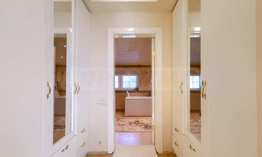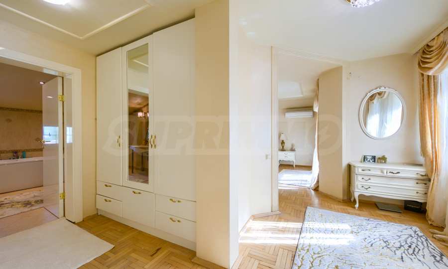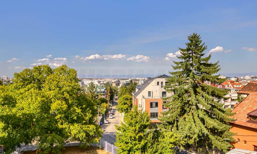 • втори етаж: три просторни спални, всяка със собствена баня и тераса, гардеробна, както и кабинет с впечатляваща панорамна гледка към София.
