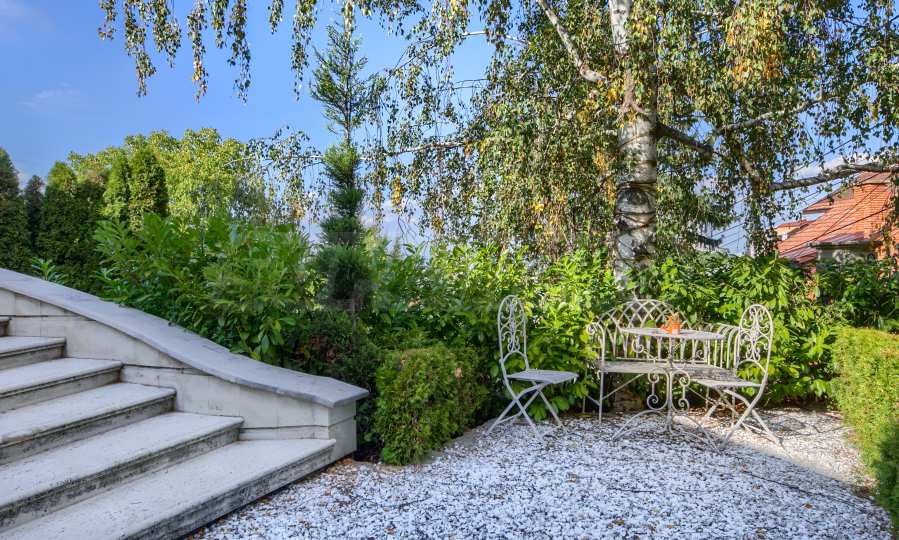 Къщата е свързана към централна канализация, дворът позволява паркиране на до 5 автомобила, а цялостната атмосфера носи усещането за луксозна уединеност и аристократичен комфорт.