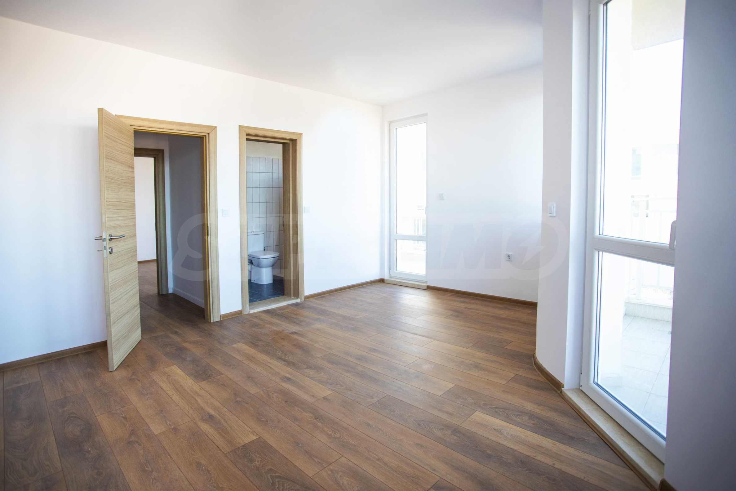 Имотът се предлага завършен "до ключ", без мебели: гранитогрес/ламинат, монтирани входни блиндирани врати и висококачествени интериорни врати, санитарно помещение изцяло със санитария ROCA.