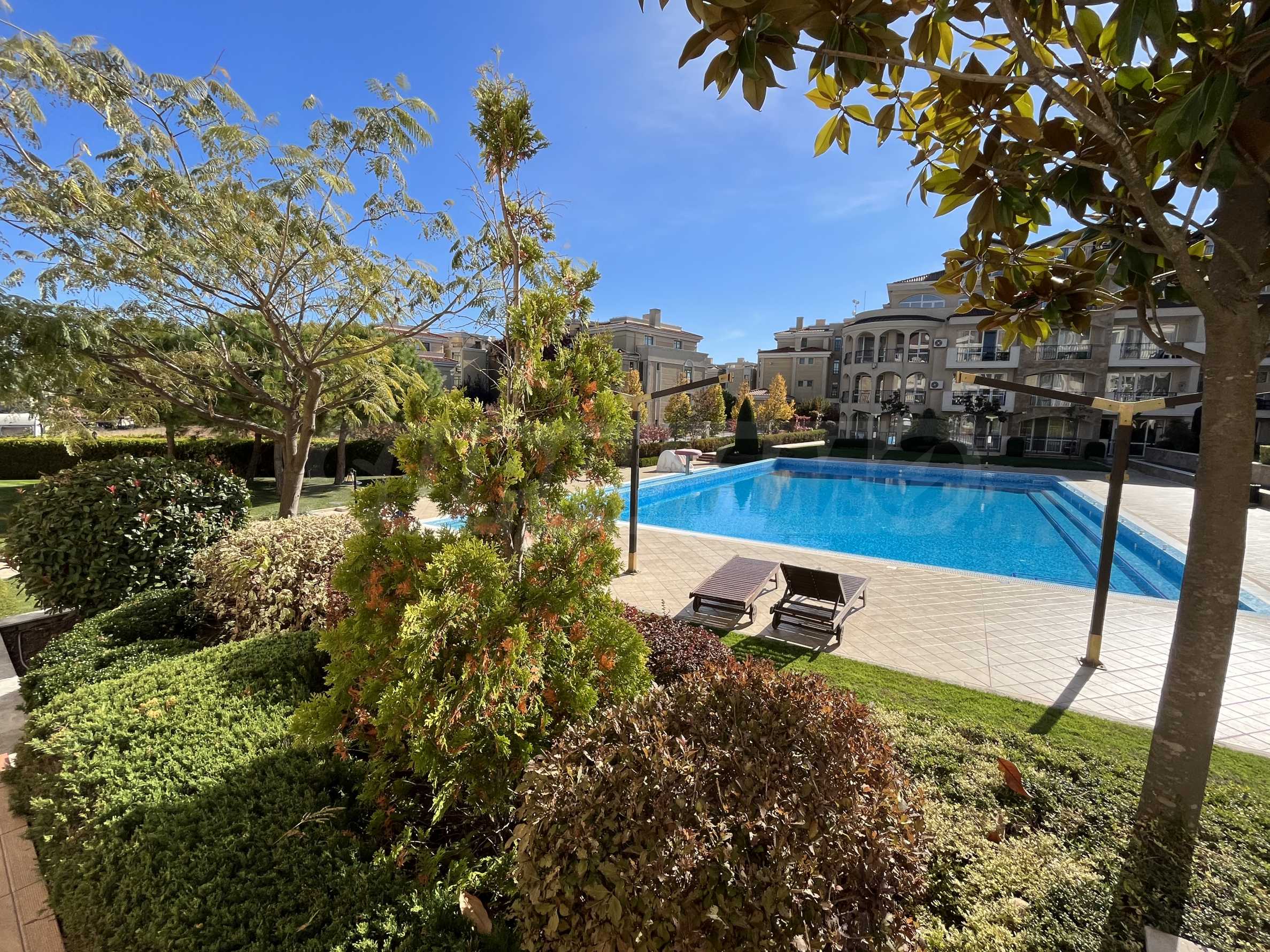 Имотът се намира на 4-ти етаж и предлага гледка към градината и морето. Намира се на 100 метра от плажа.