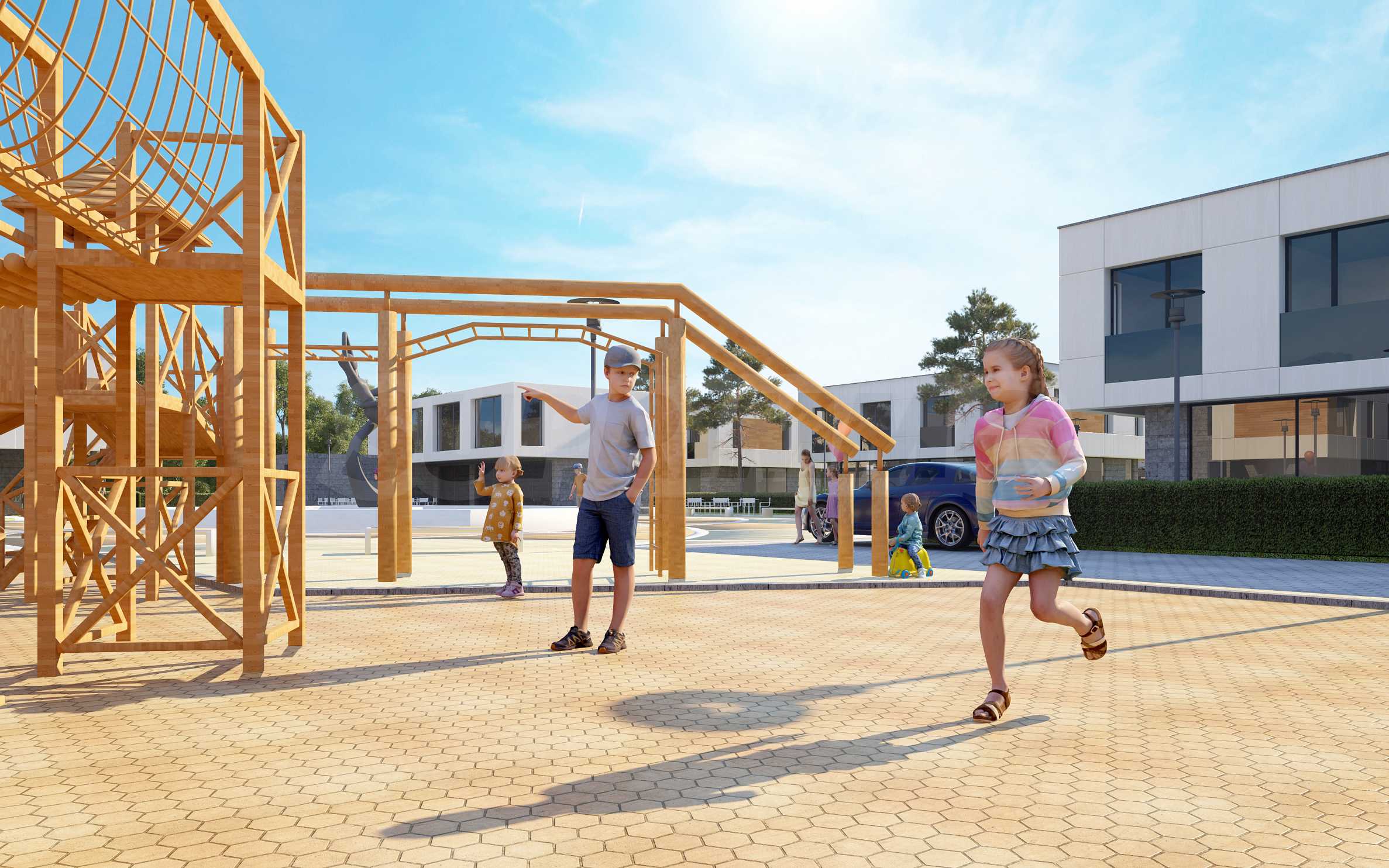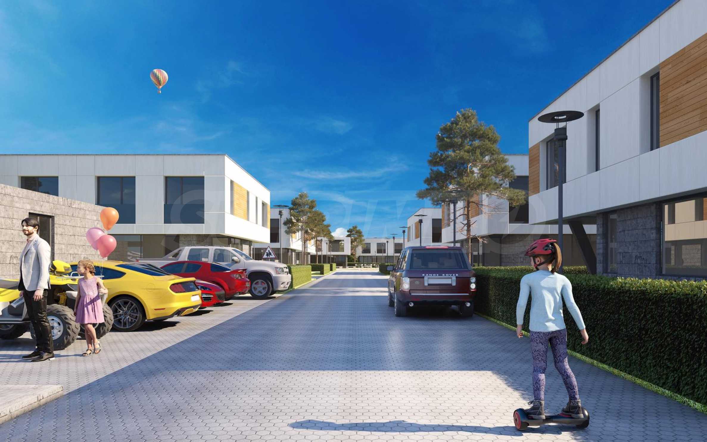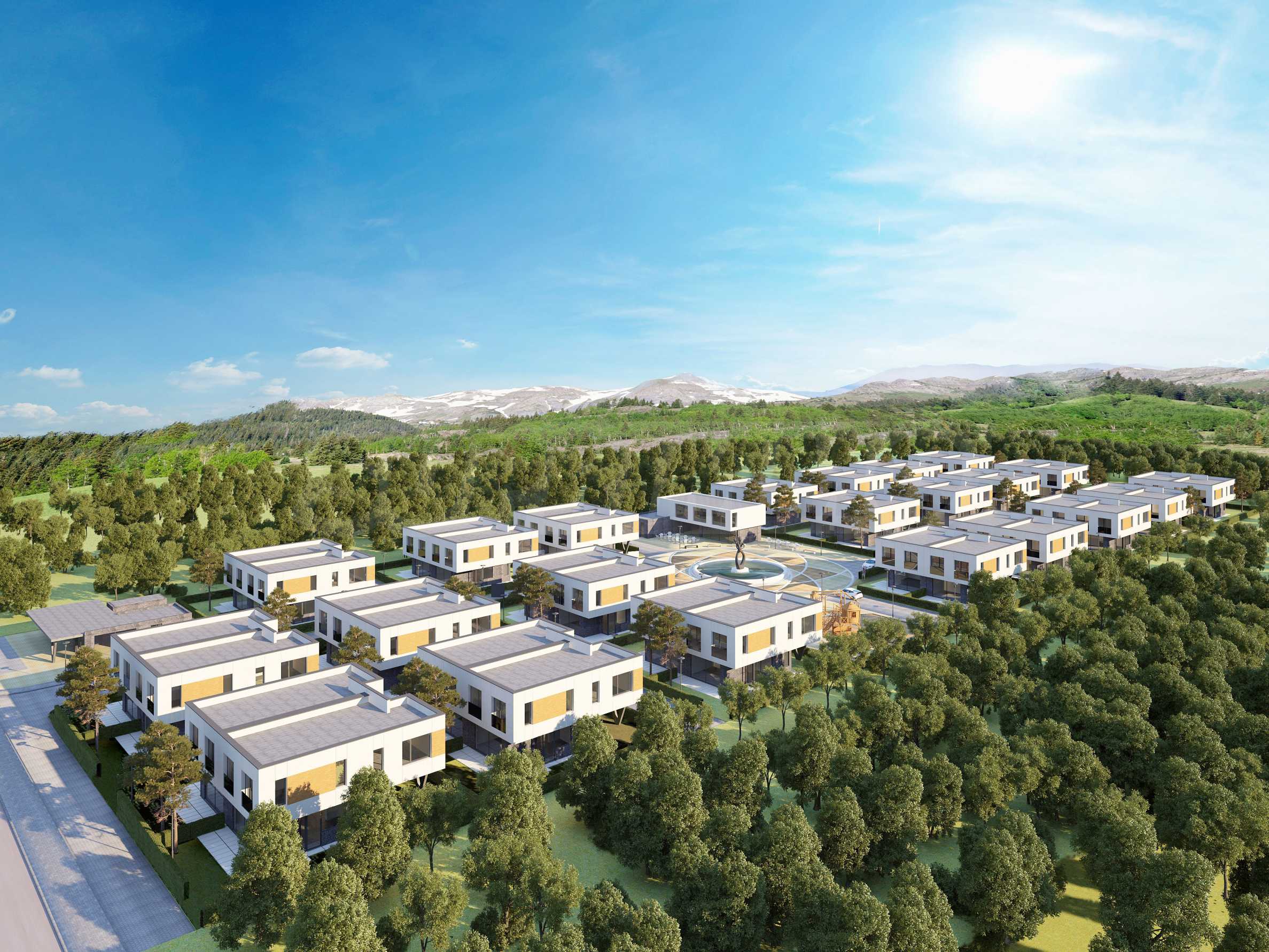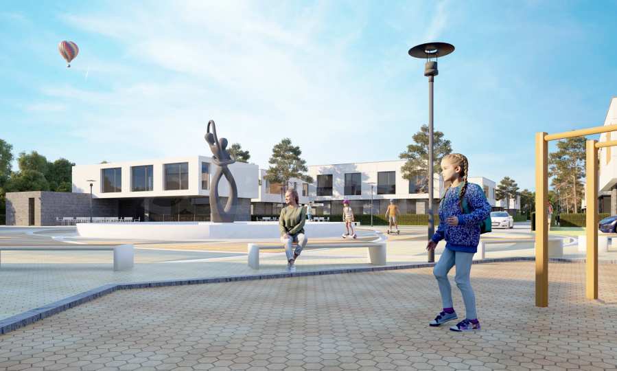 Къщите ще са заобиколени от собствени частни дворове, градини и места за почивка, а централното място в парка ще заема специално изработен и поставен по правилата на Фън Шуй фонтан. Към всяка къща ще има зарядни за електрически коли.