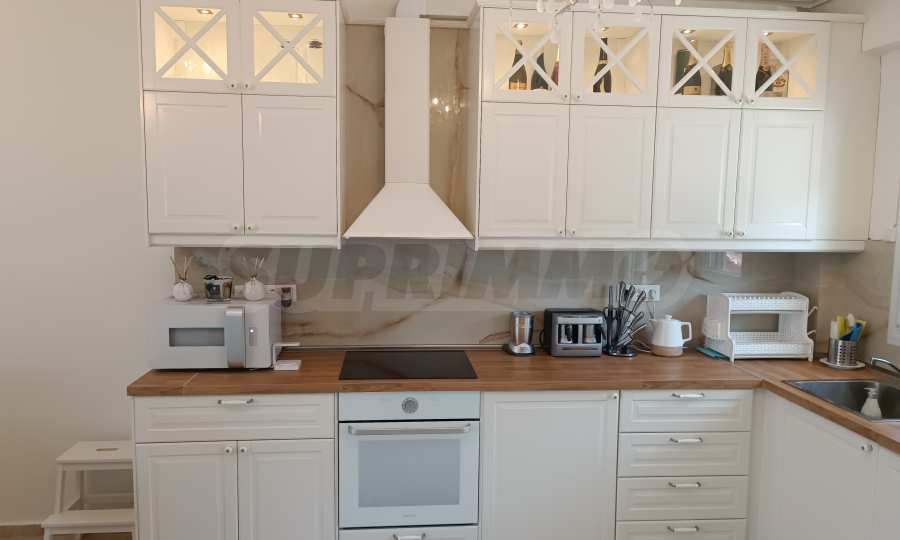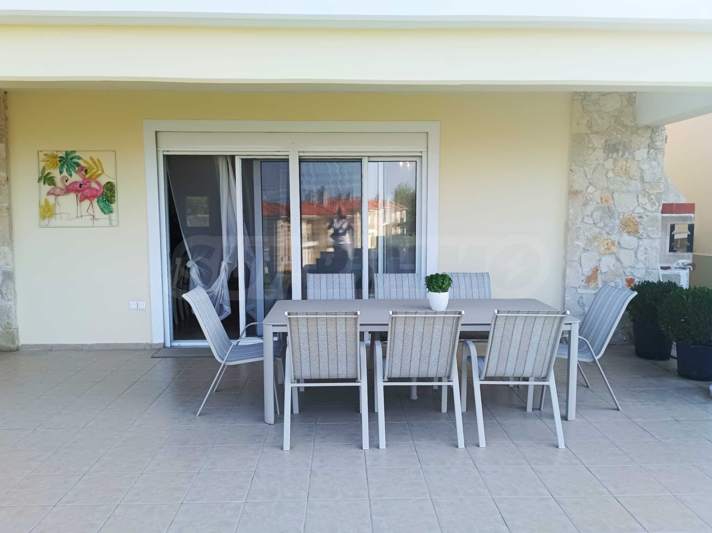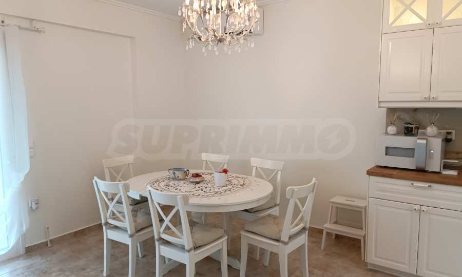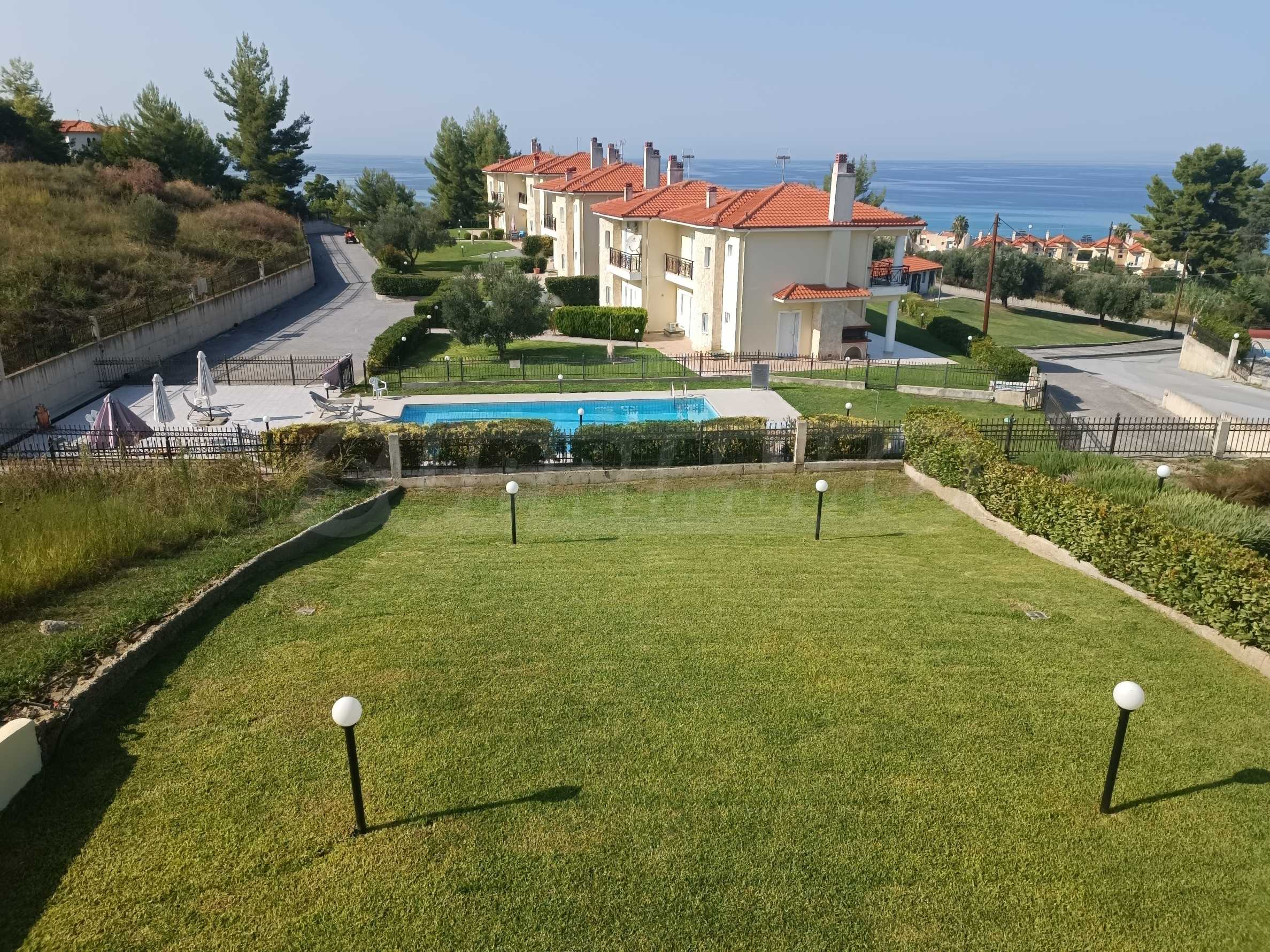 Имотът е част от затворен комплекс и се отличава с високо качество на строителство, изключително подържани общи части, обзавеждане със стил и финес и най-вече с безпирния и зашеметяващ изглед към кристално чистите, тюркоазените води на Егейско море.