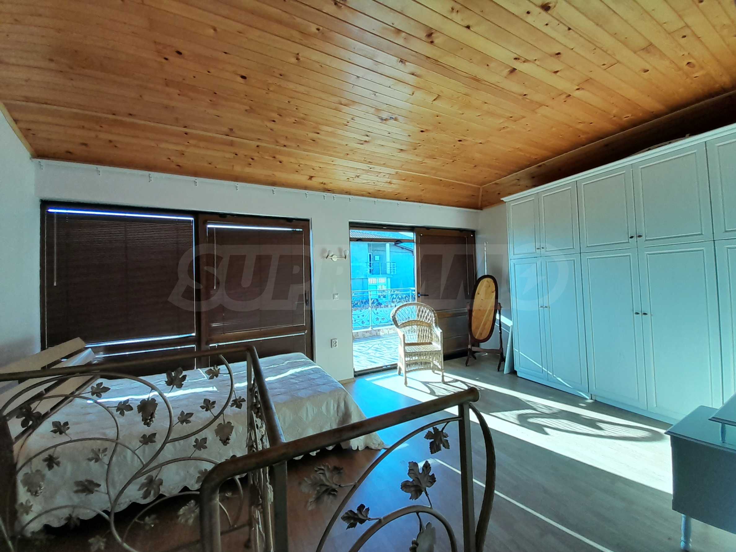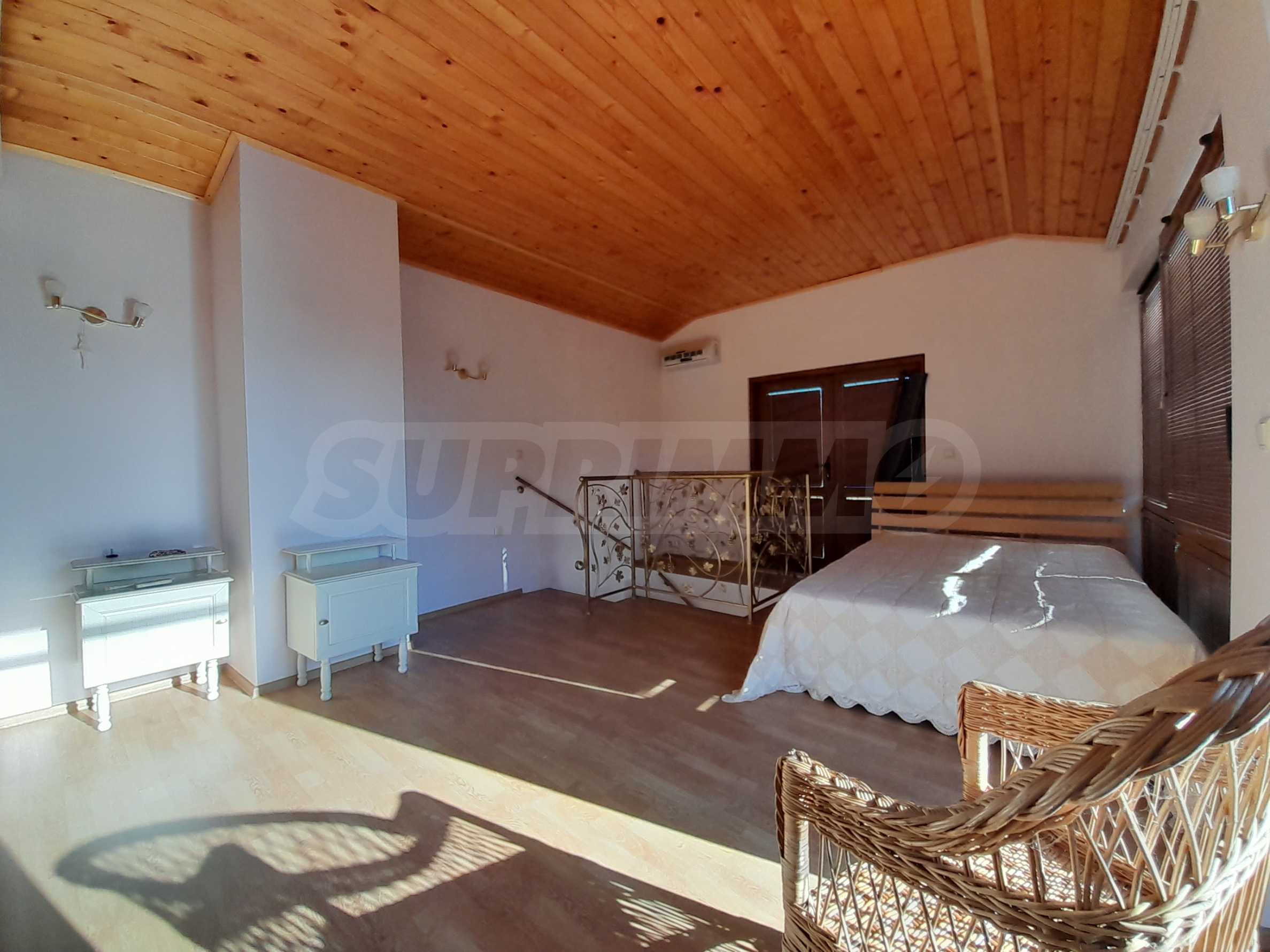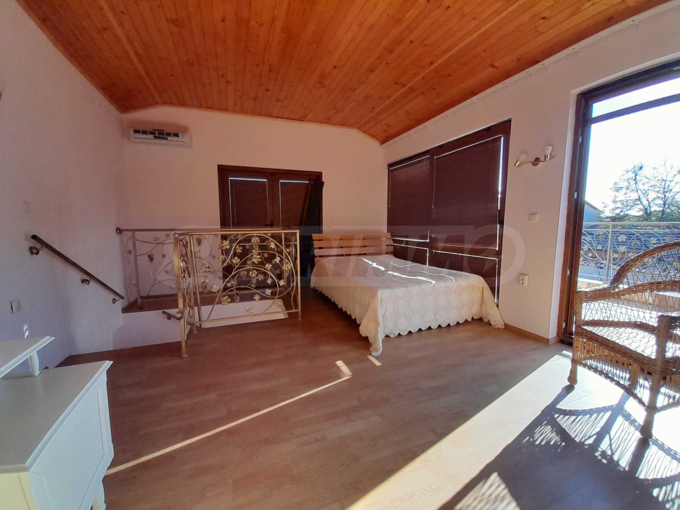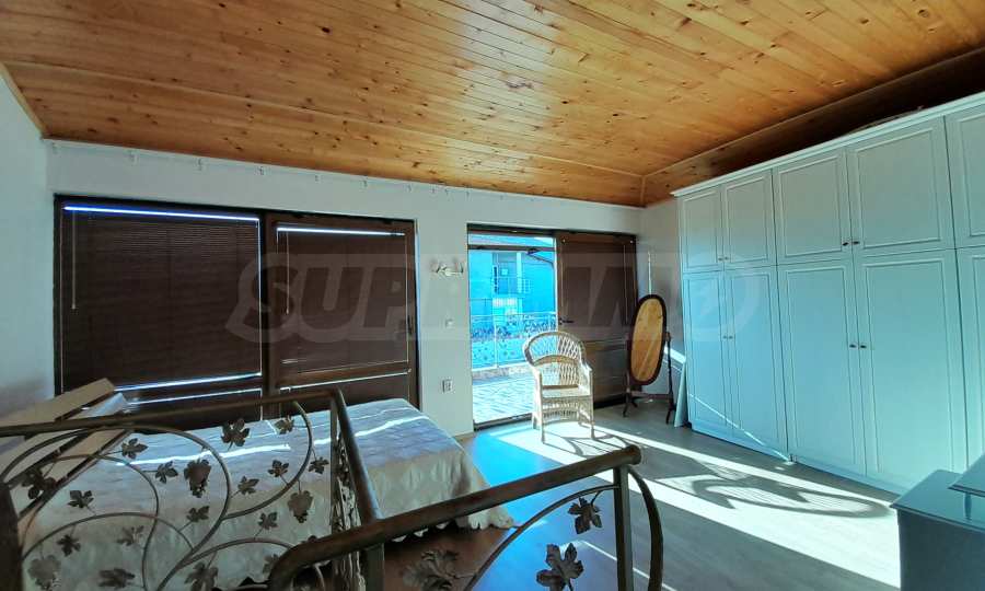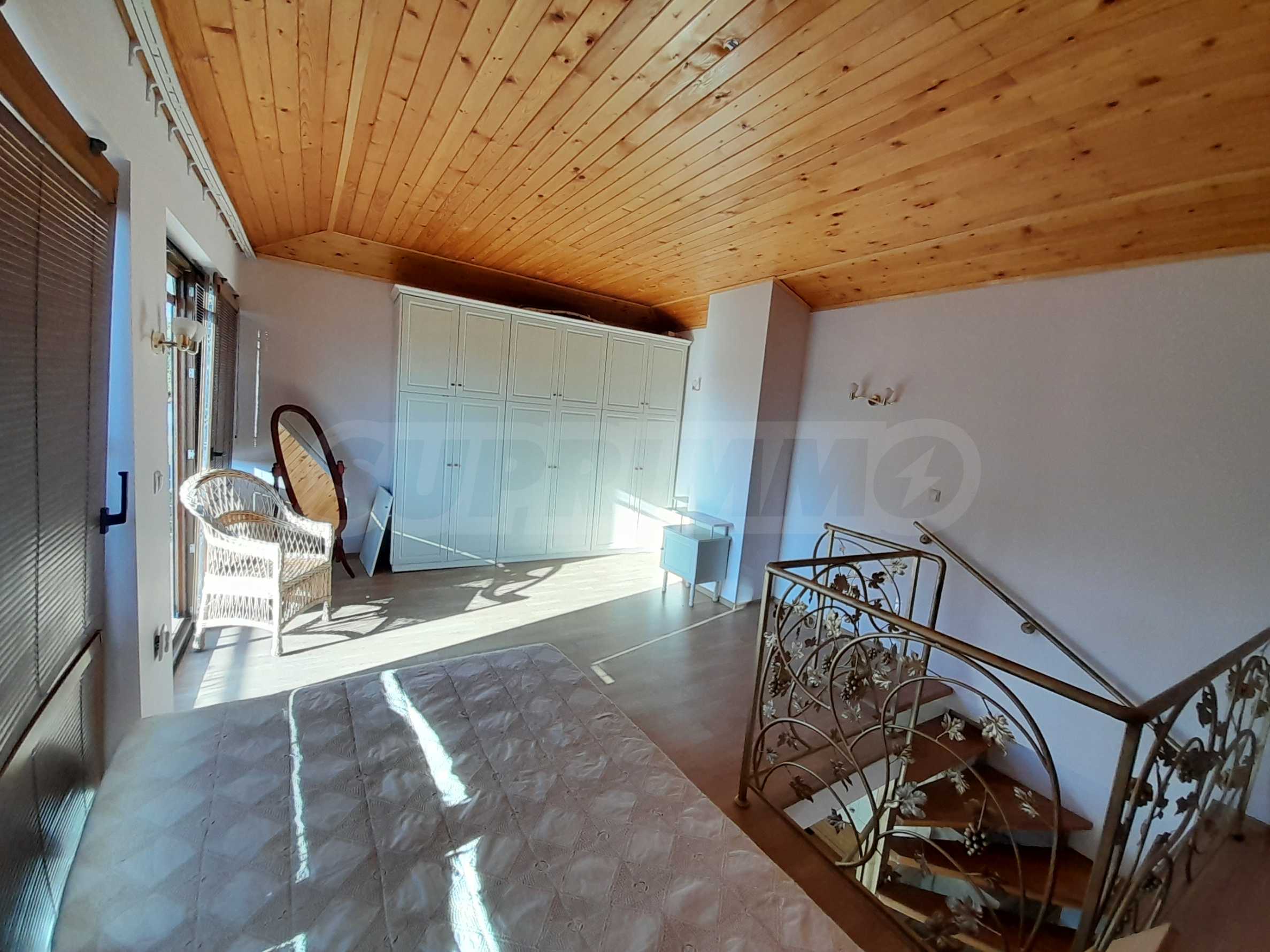 Изкачването на втория етаж е по вита стълба, с декоративни бронзови елементи. На горното ниво е разположена спалня, с шкафове, трикрилен гардероб и ретро огледало.