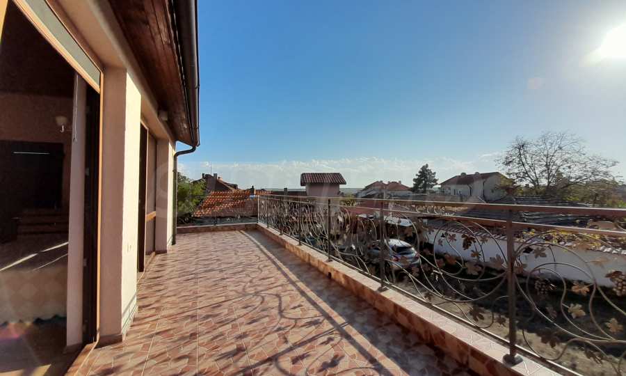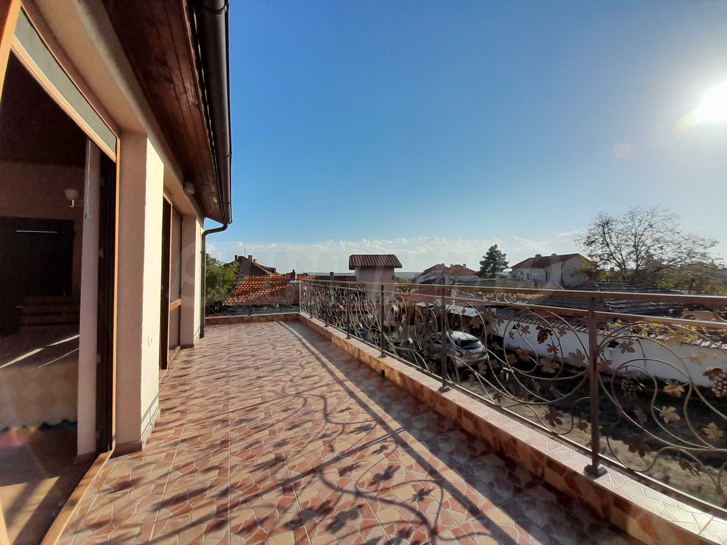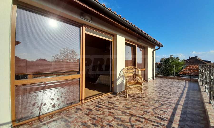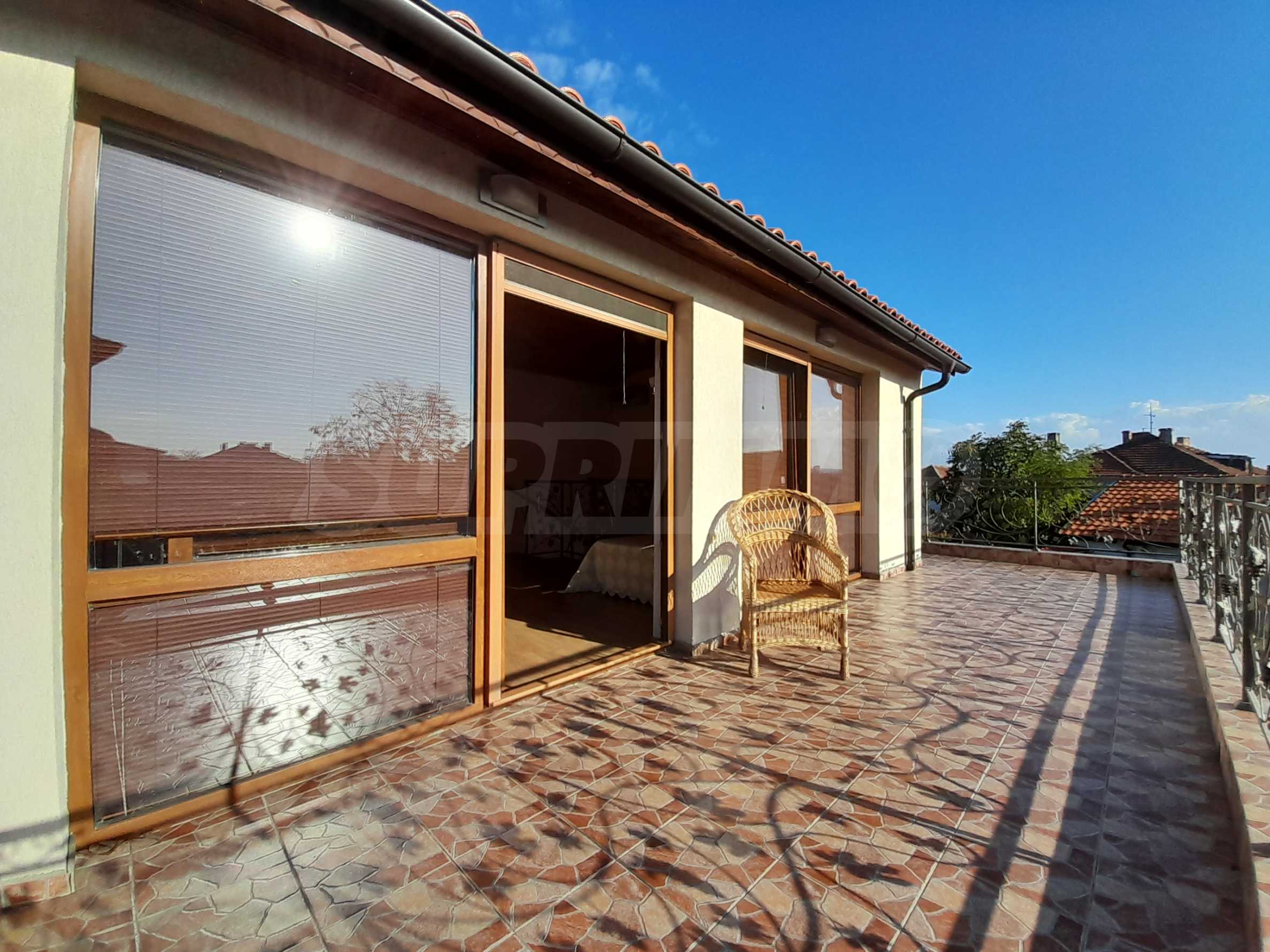 Къщата има и външна вита стълба, с декоративни елементи, която води до широка слънчева тераса.