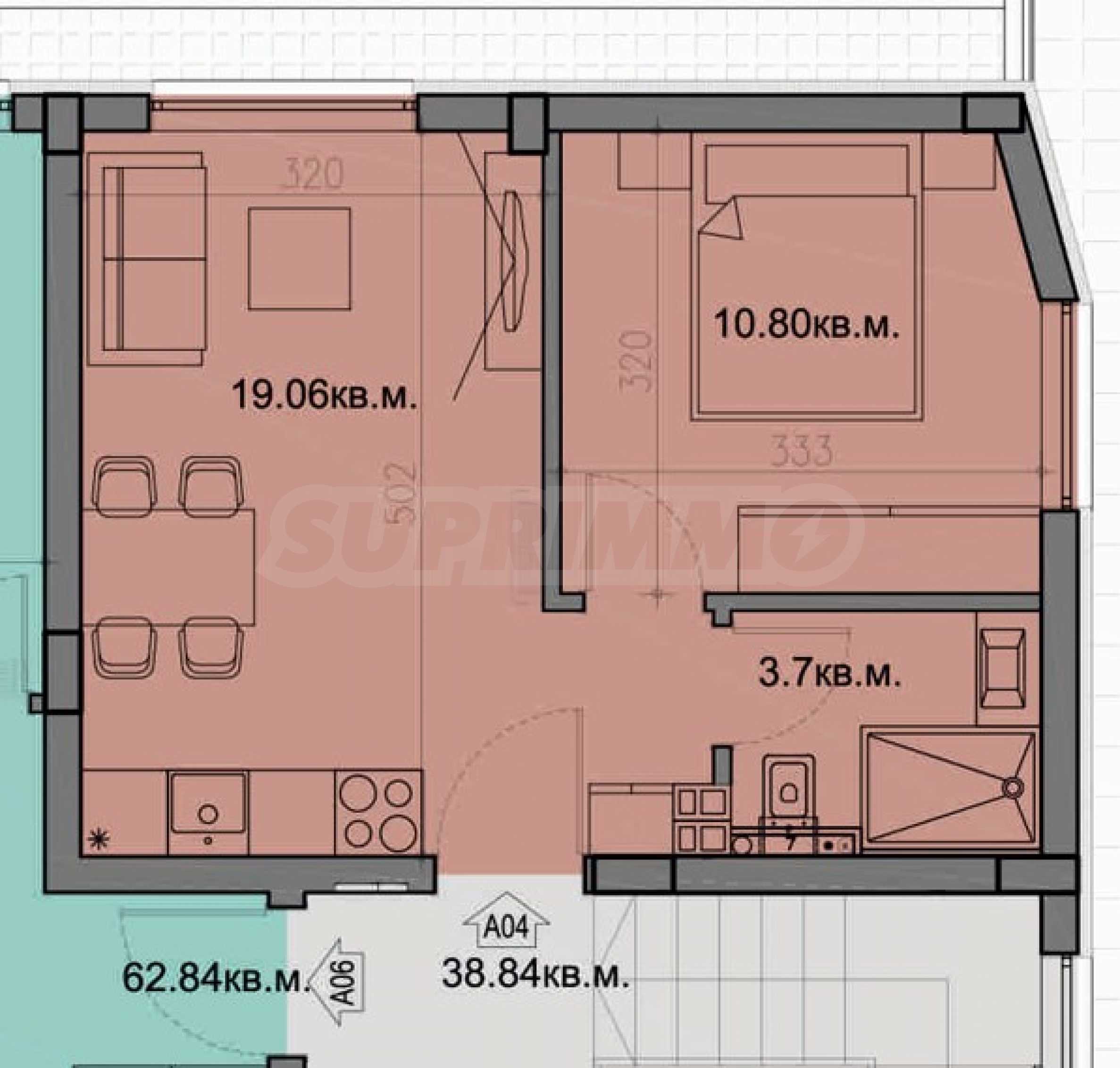 Имотът е със статут на кабинет и в цената му е включено завършване " до ключ" - боя на стени, настилки на подове, изцяло оборудвана баня.
