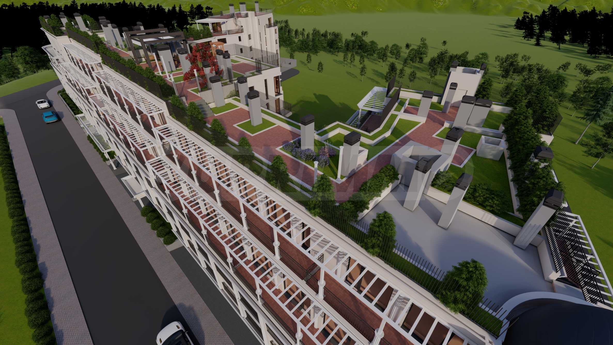 - голямо отстояние до съседни сгради и елегантно оформено озеленяване и среда;