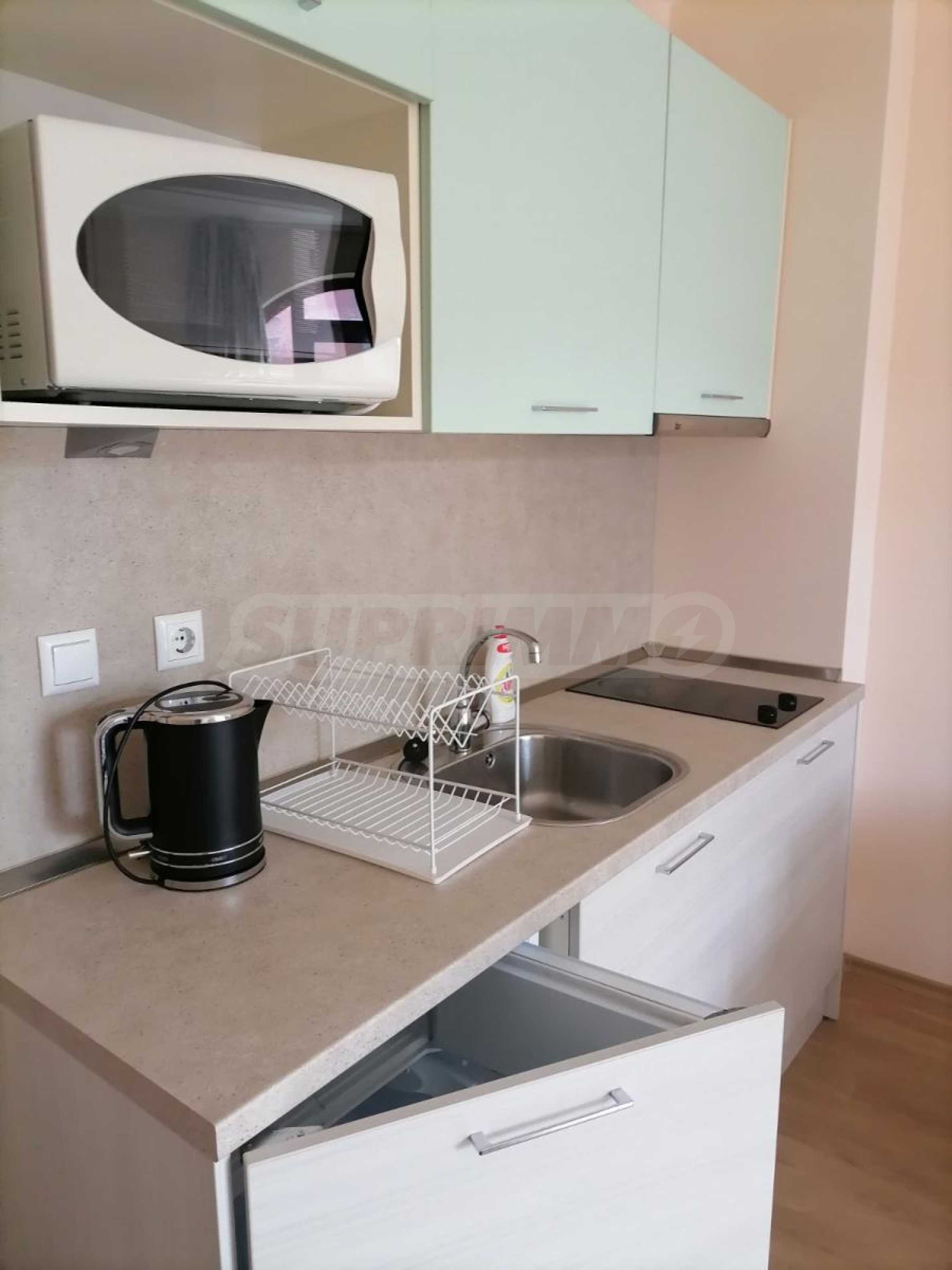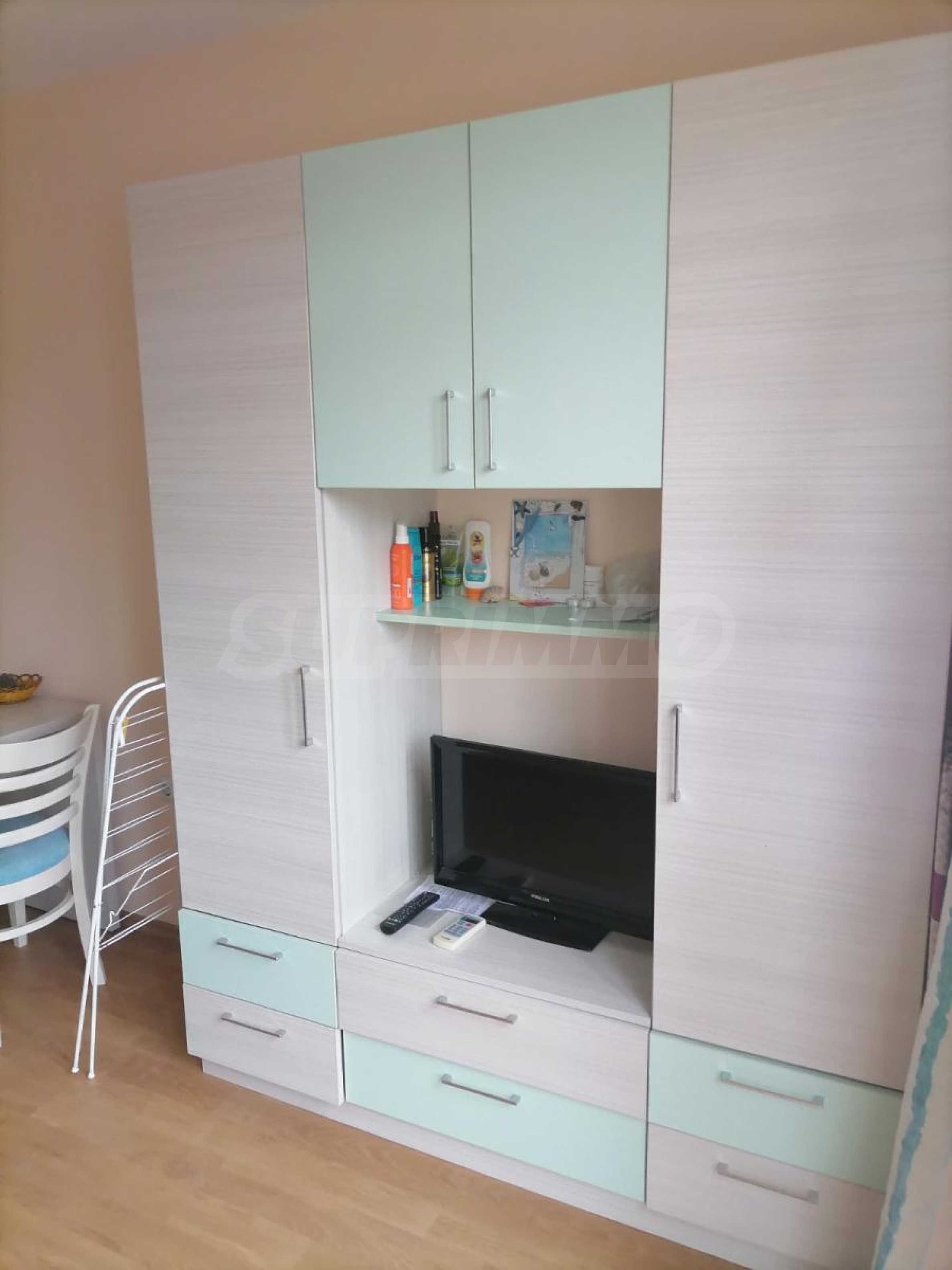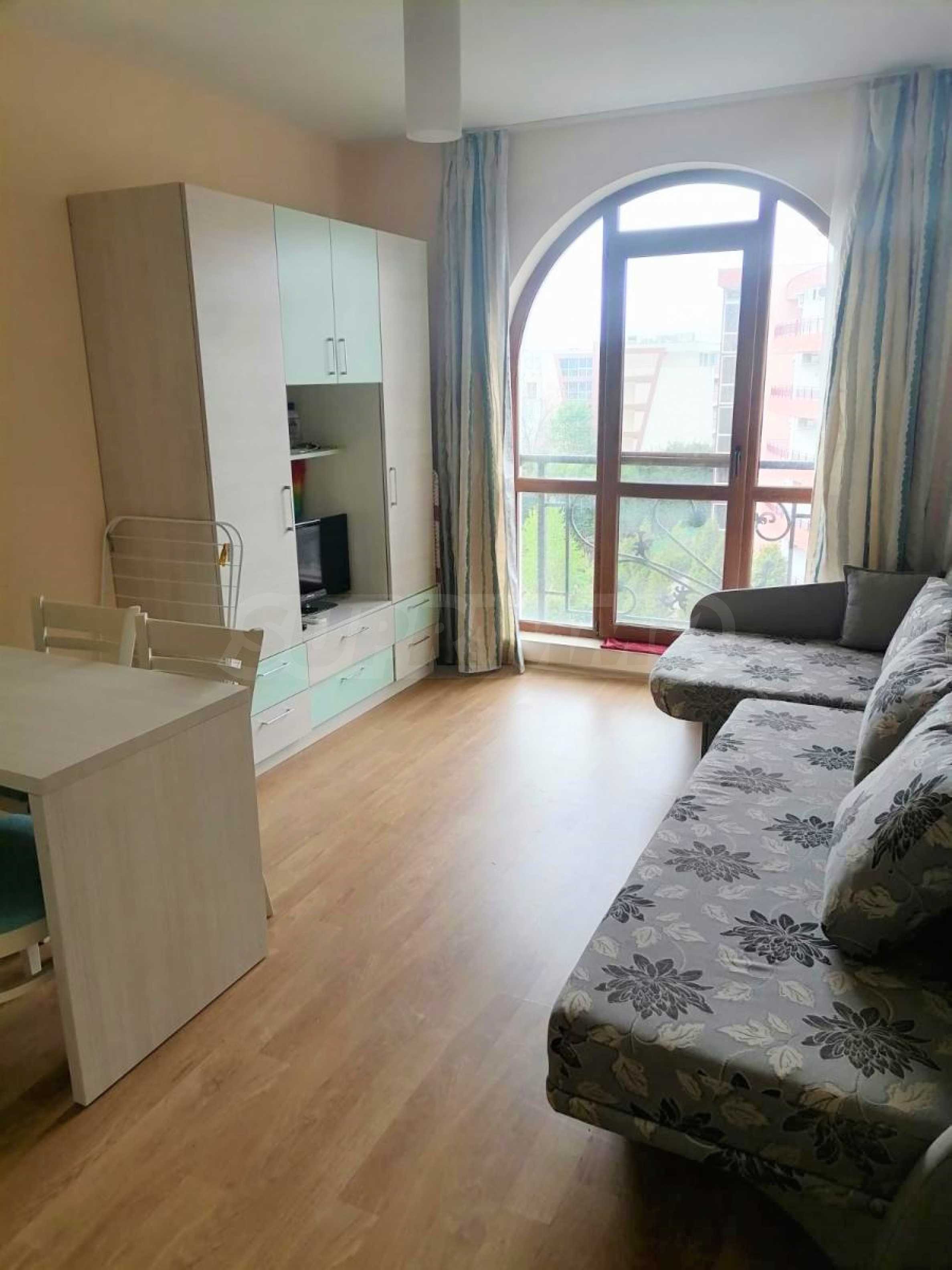 Представяме студио на атрактивна цена в затворен комплекс с удобства, на 200 м от морето в курорт Елените.
