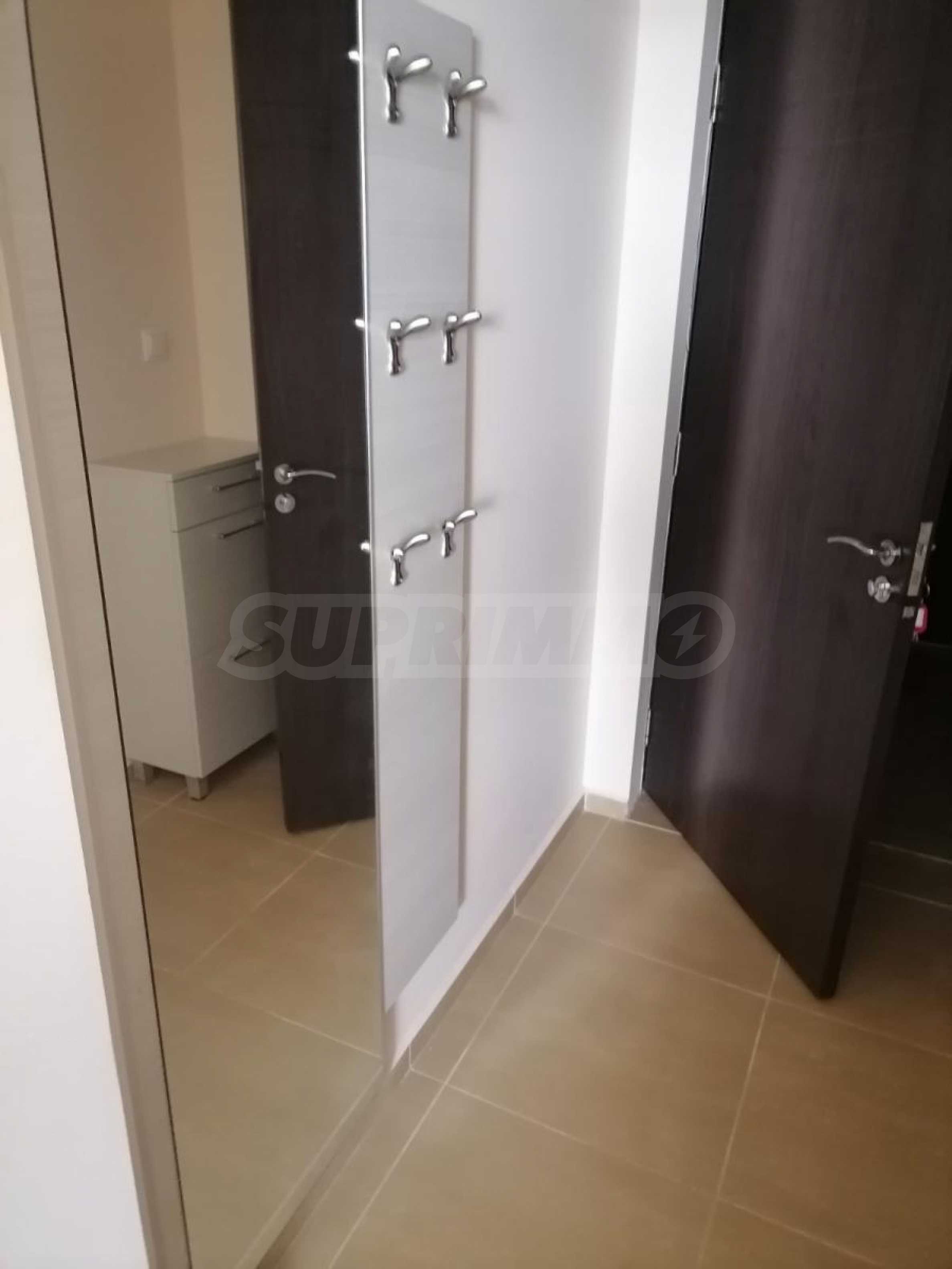 Предлага се напълно обзаведено и оборудвано с мебели и електроуреди. Има климатик, хладилник, малък кухненски бокс, оборудвана баня с бойлер и душ.