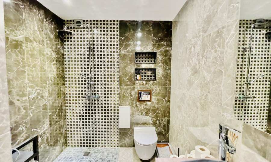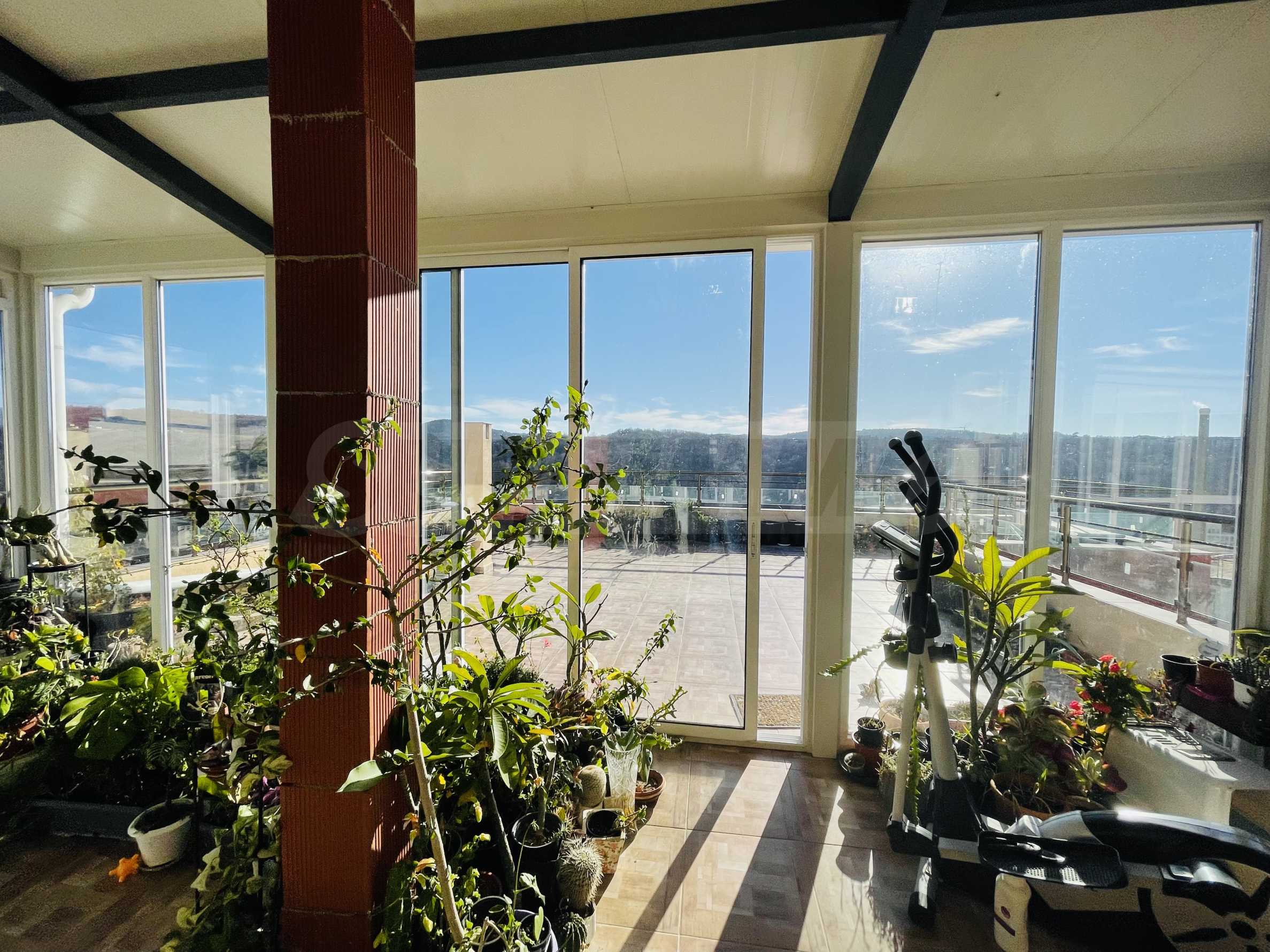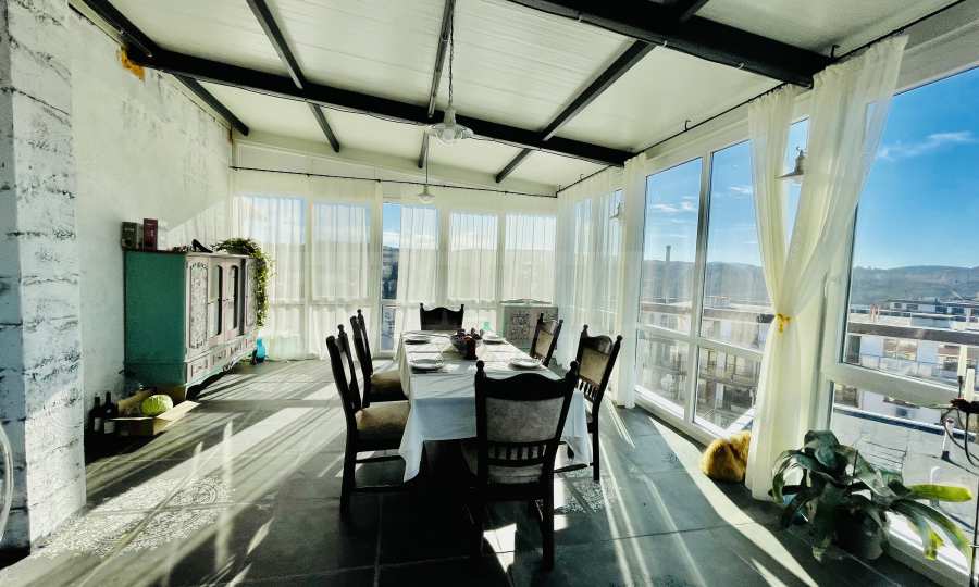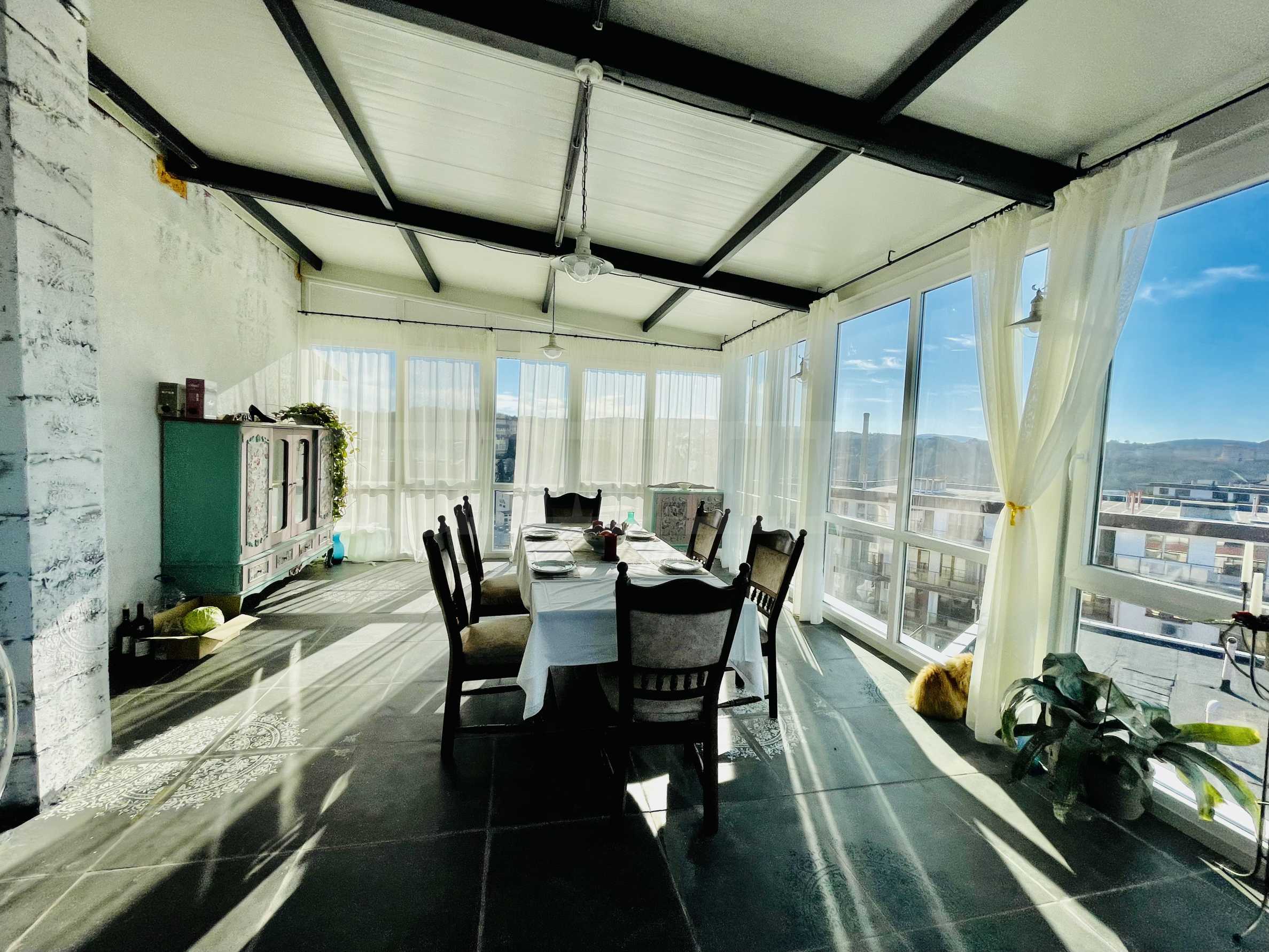 Общата площ на имота е 220 кв.м, от които 76,3 кв.м чиста жилищна площ, 10 кв.м общи части и 133 кв.м. приобщени тераси. Състои се от коридор, просторна всекидневна с трапезария и кухня, две спални, баня с тоалетна, килер и две големи панорамни тераси (едната изцяло остъклена) с кътове за отдих.