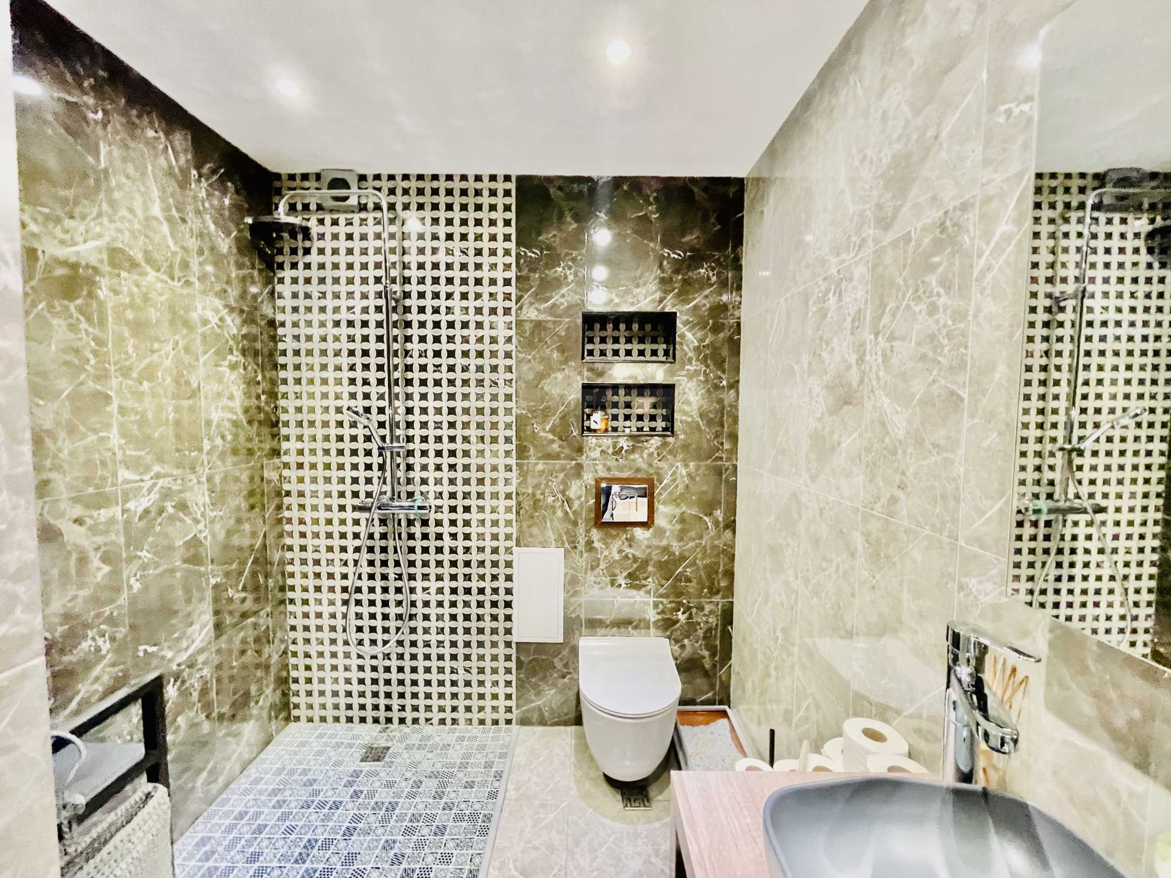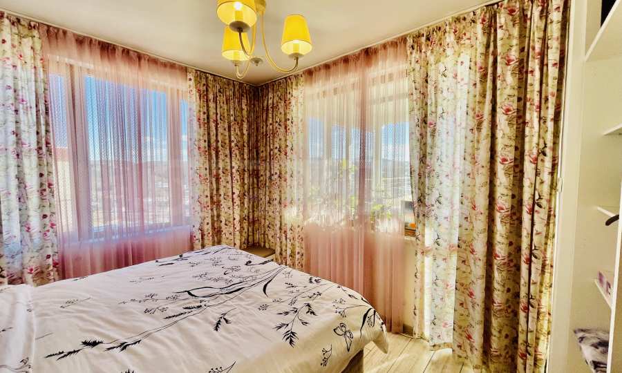Апартаментът е разположен на седми етаж в сграда ново строителство с асансьор. Жилището е с изложение юг –изток-север и предлага красива панорамна гледка не само към града , а и към върховете на Стара планина.