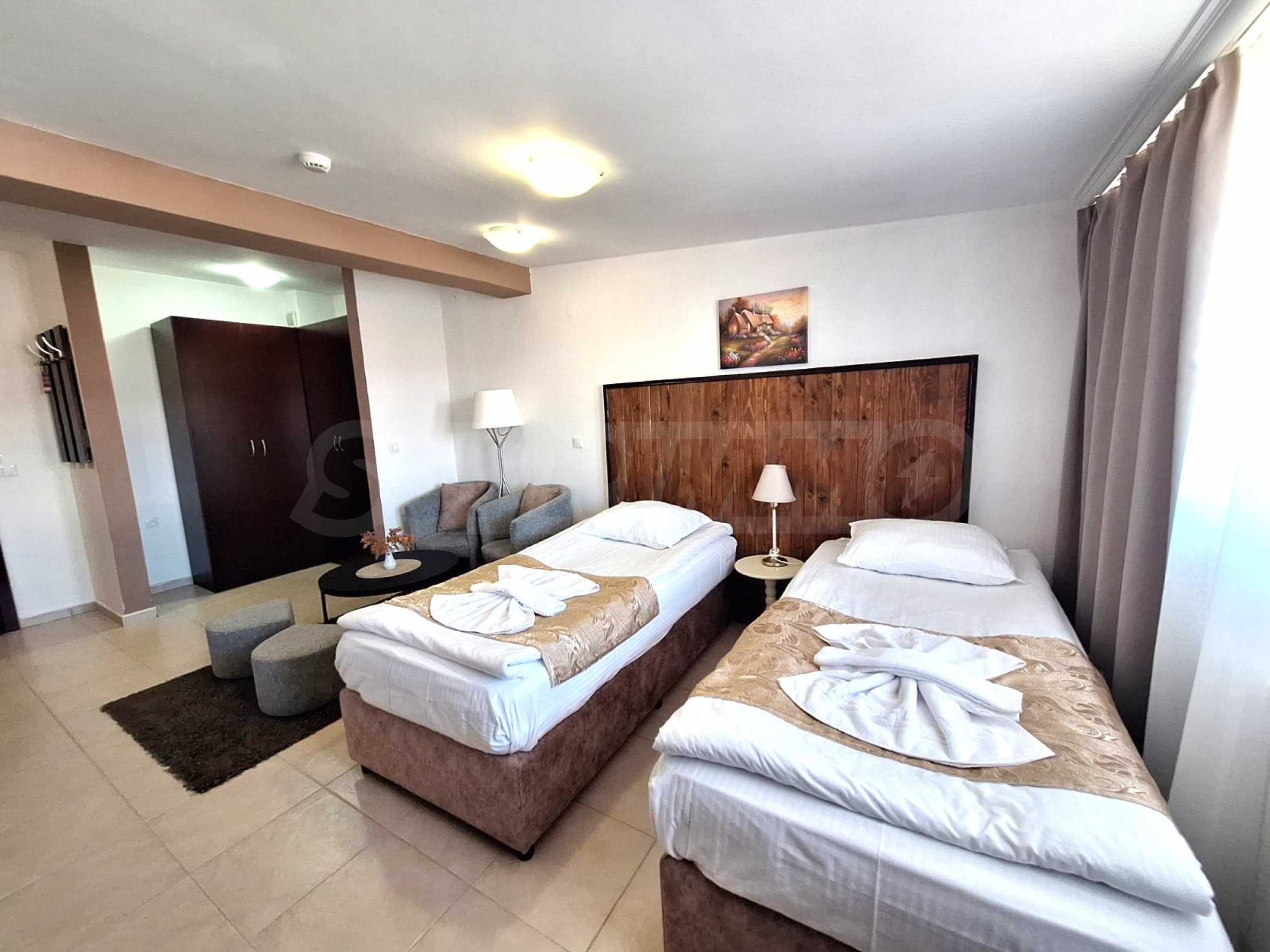 • Хол, обзаведен с две единични легла и гардероб (без кухненски бокс);