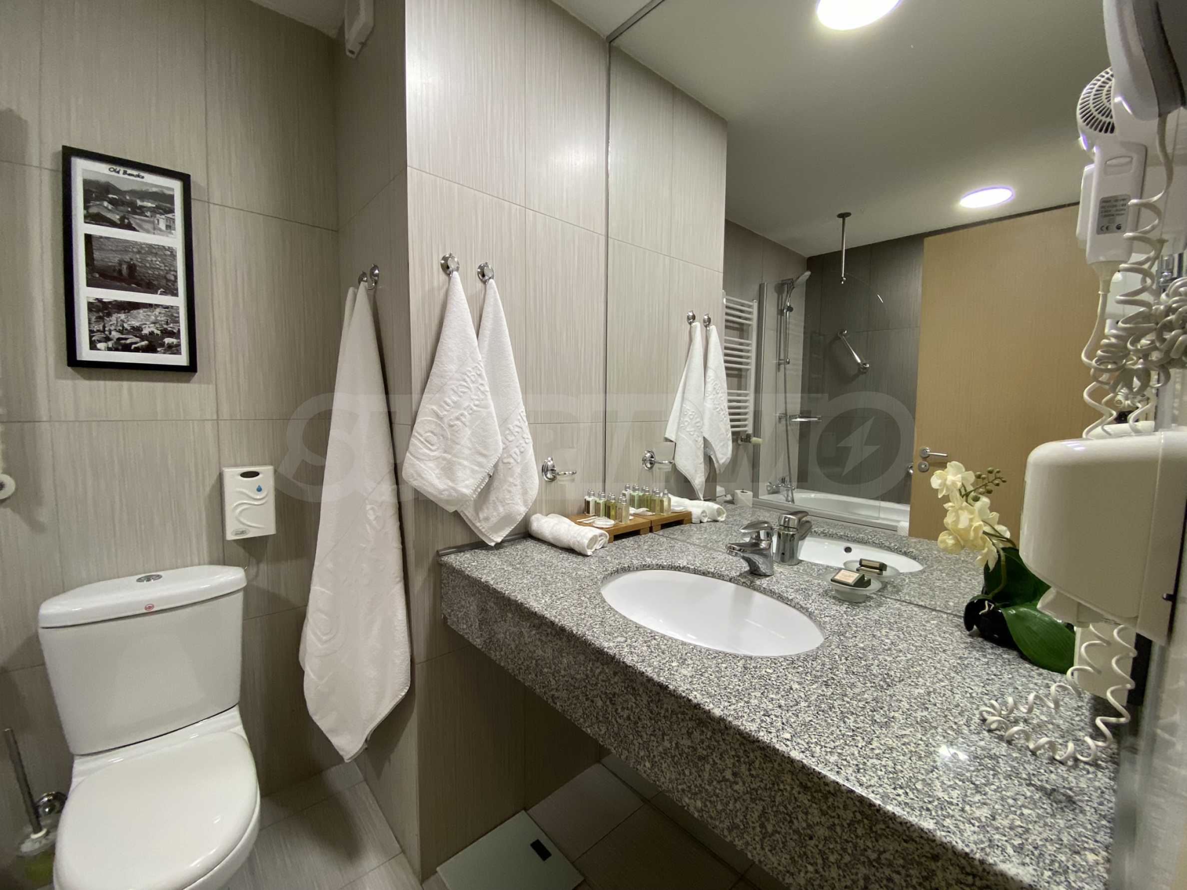 Обзаведен апартамент с обща площ 42 кв.м. в затворен комплекс Лъки Банско, предлагащ всички удобства и услуги за пълноценна почивка. Комплексът се намира на 5 минути пеша от центъра на ски курорта Банско.