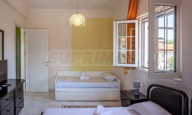 Уникална самостоятелна къща на пешеходно разстояние от морето, на забележително място в Ситония, в сърцето на Халкидики. Имотът е разположен на площ от 750 кв.м. на 700 .м от центъра на селото Състои се от 2 нива с общо 150 кв.м. жилищна площ. Имотът включва 5 спални, 1 WC. , склад и 1 бани