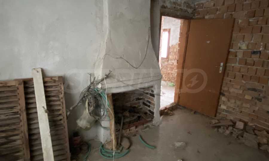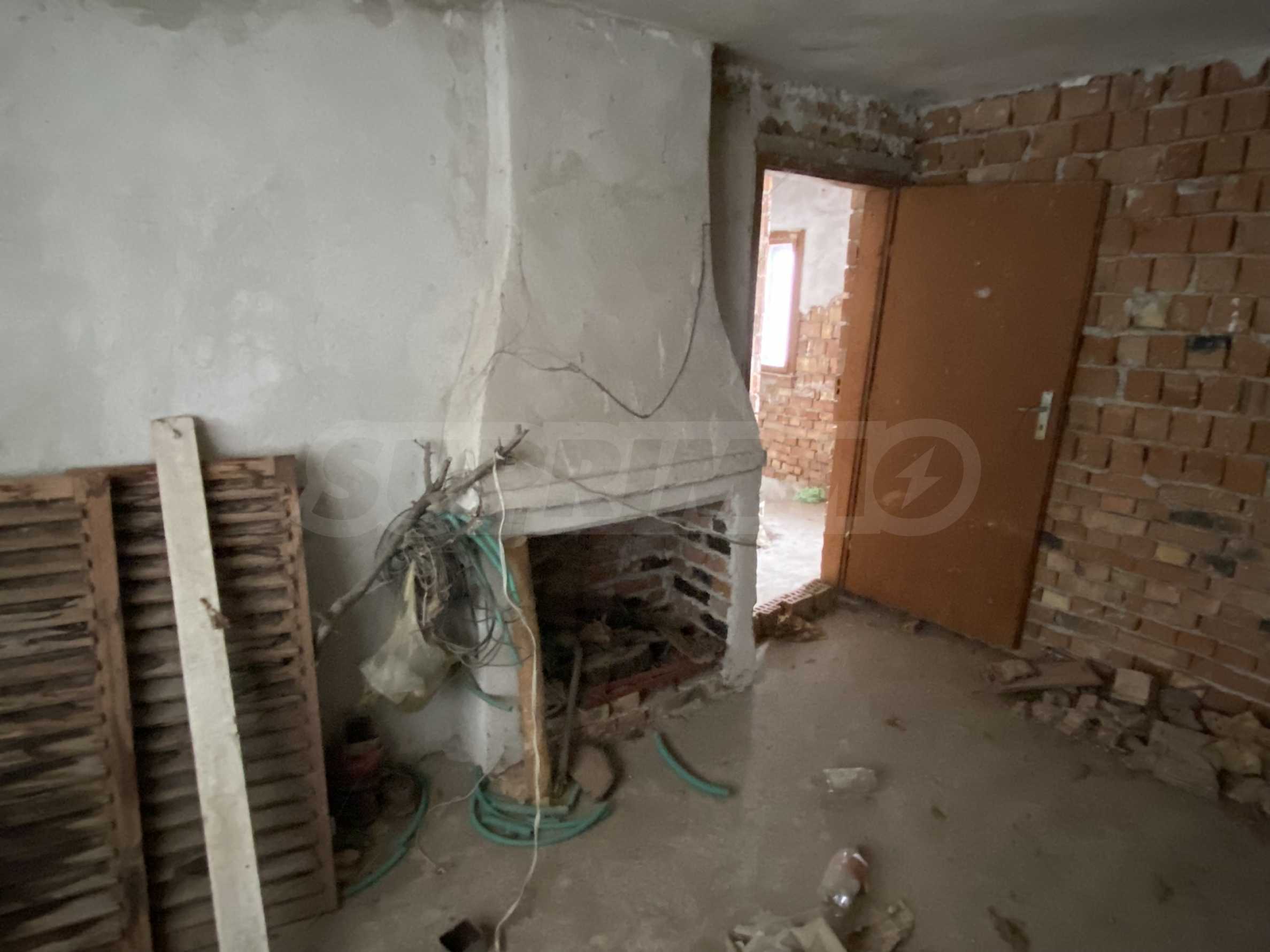 Къщата се нуждае от довършване. Дворното място е 900 кв.м с правоъгълна форма.