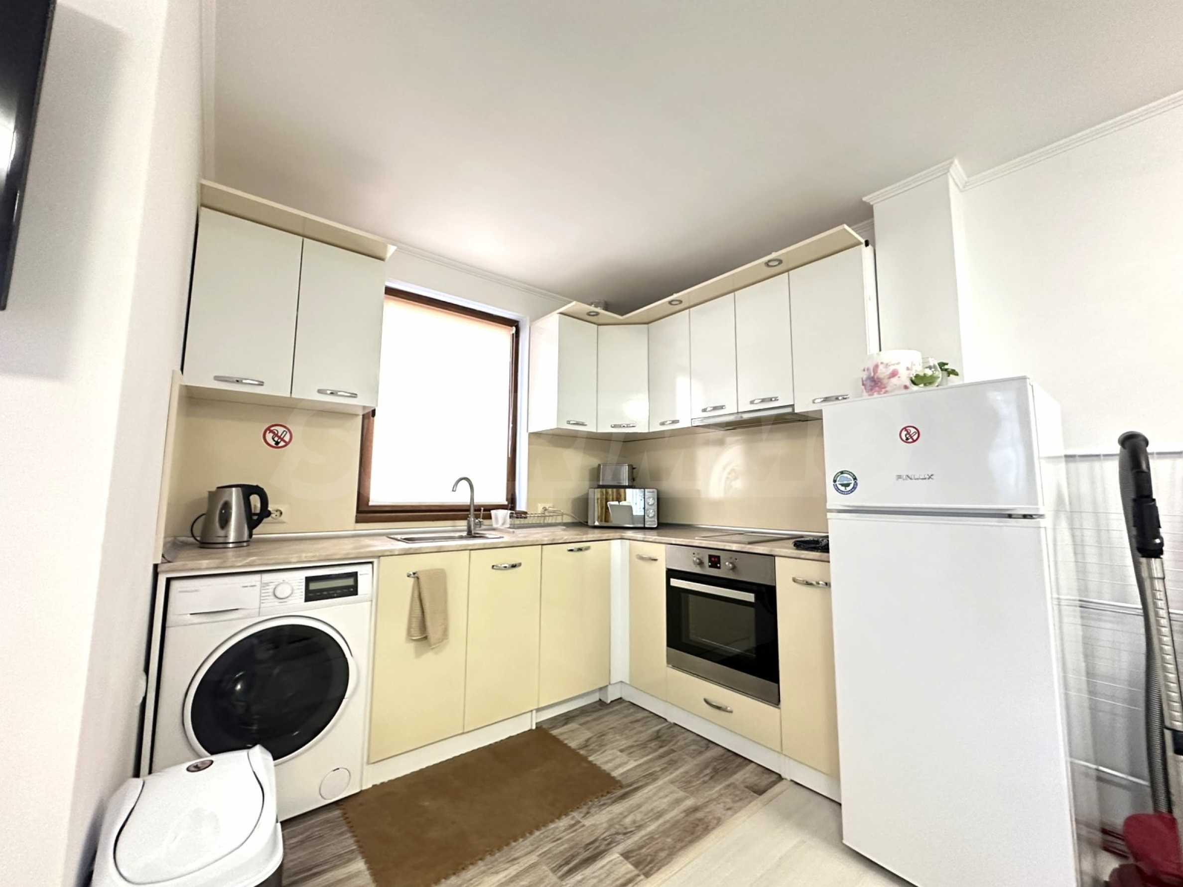 Състои се от: коридор, всекидневна стая, напълно оборудван кухненски бокс и трапезарна част, спалня, балкон, баня и тоалетна.