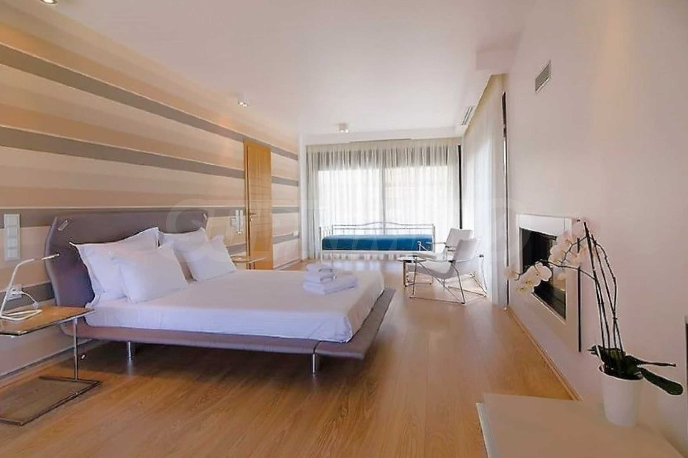 Луксозна вила 1-ва линия във Вурвуру, Ситония, Халкидики - неповторимо място за ваканционен имот в Гърция. Крайбрежната вила е с площ 400 кв.м и е построена върху парцел от 1500 кв.м, двора е добре поддържан и е осеян с екзотична растителност. Имотът се намира в най-престижния район на Ситония, пред красив пясъчен плаж във Вурвуру, предлагащ невероятна гледка към морето и остров Диапорос. Вилата е изградена на три нива с 6 двойни спални, всички със собствена баня, една основна всекидневна и две кухни. На приземния етаж се разполагат едната кухня, две спални, баня и склад. Първият етаж включва всекидневна, кухня, трапезария, хол, баня и спалня със самостоятелна баня. Вторият етаж се състои от две спални, всяка със самостоятелна баня и родителска спалня с размер 60 кв.м със самостоятелна баня с вана и изглед към морето. Вилата е напълно обзаведена и оборудвана с всичко необходимо за вашата почивка. Имотът е напълно климатизирана с централна отоплителна система, което дава уникално предимство за обитаването на къщата през цялата година. Разполага със слънчеви колектори, алармена система и камери за наблюдение, смарт телевизори, сателитна телевизия, DVD и wi-fi интернет.