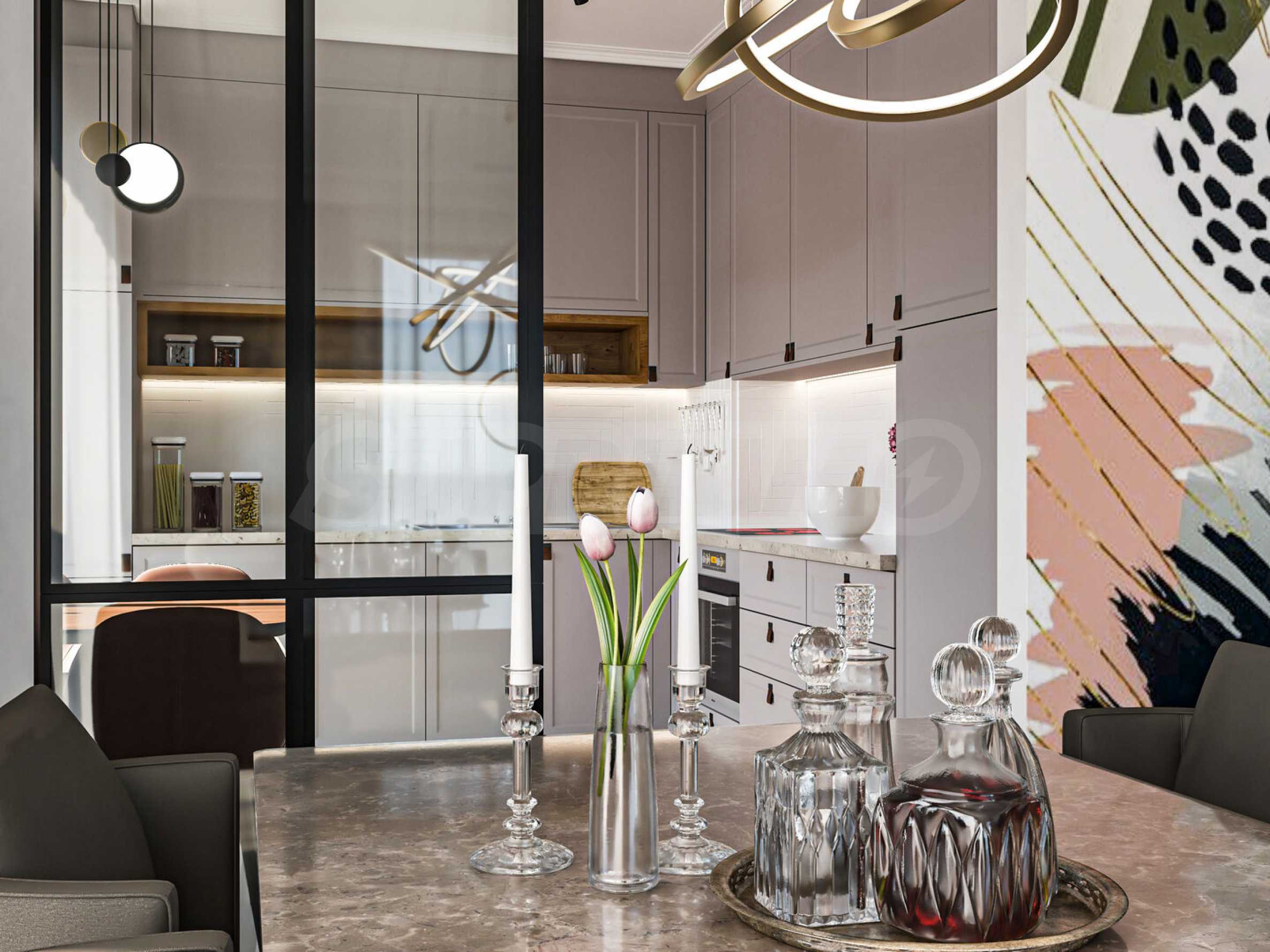 Визуализациите са примерни. Инвеститорът предлага примерни интериорни решения, като е обърнато особено внимание на детайлите, които да създадат усещането за топлина в дома и радост от новото жилище. Опитните дизайнери и архитекти на фирмата са готови да осигурят съпровод до пълна пространствена реализация на всеки индивидуализиран обект.