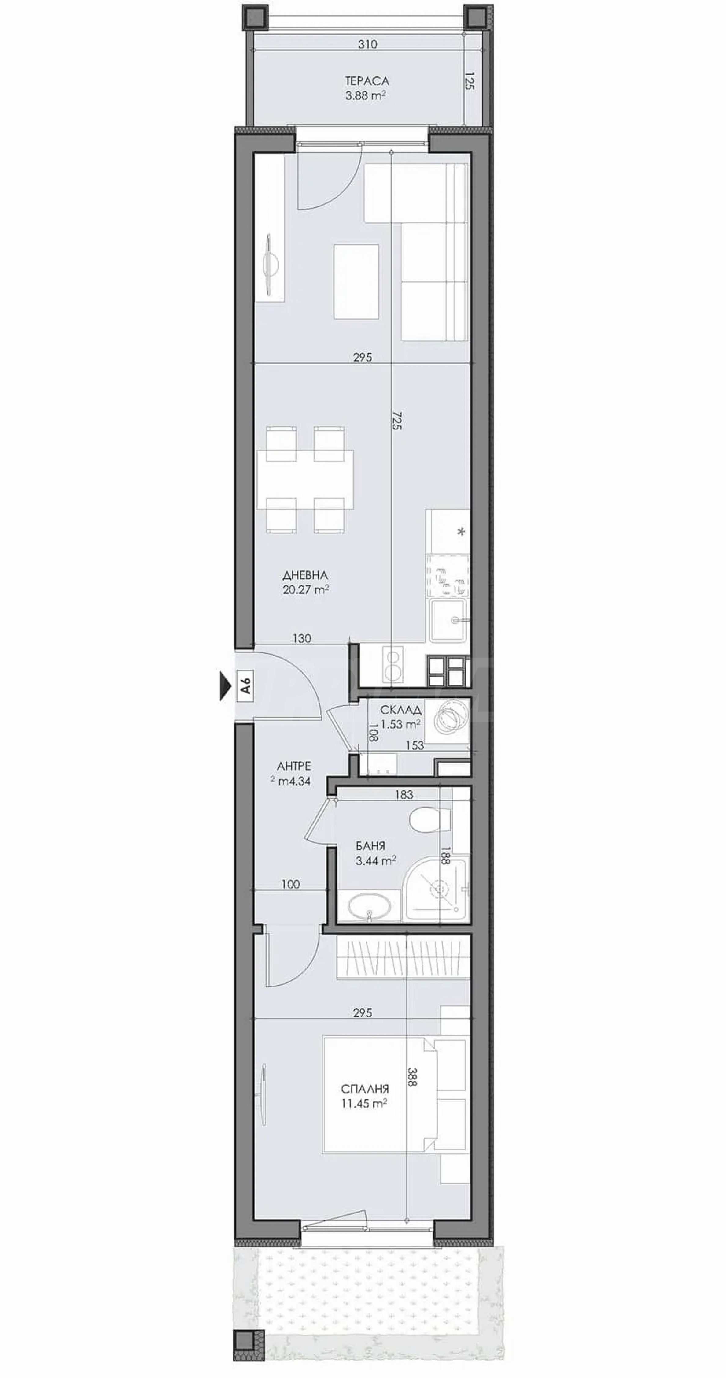 Апартаментите за продажба са комфортни двустайни и тристайни имоти, предлагат се в степен на завършеност по БДС: