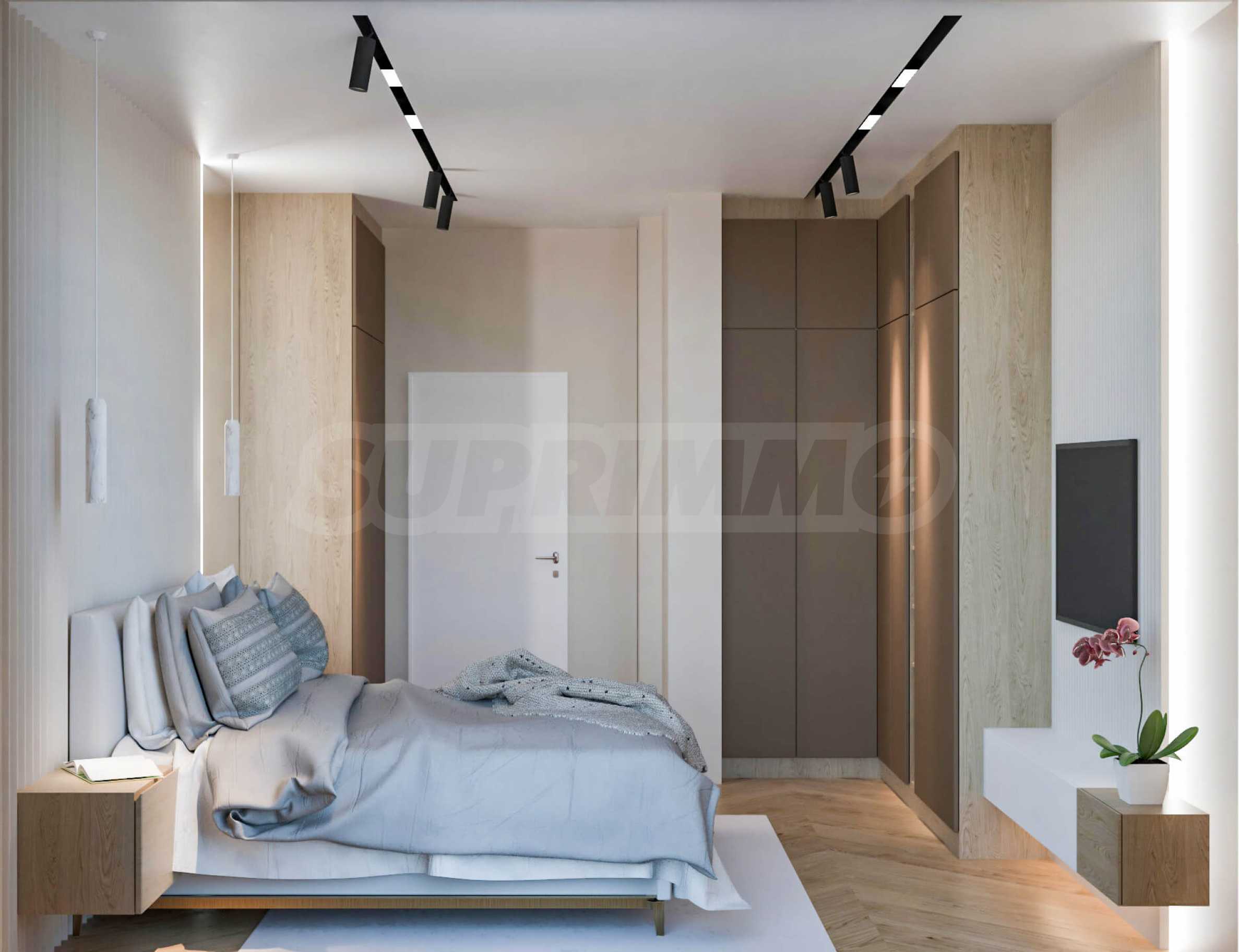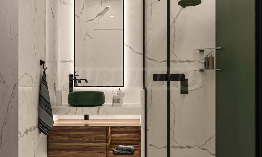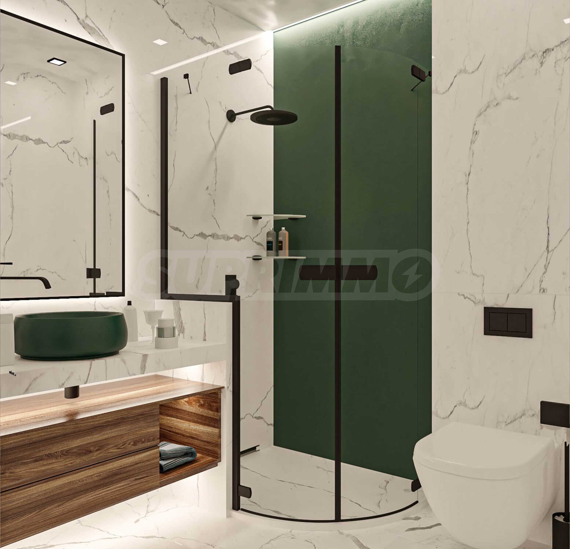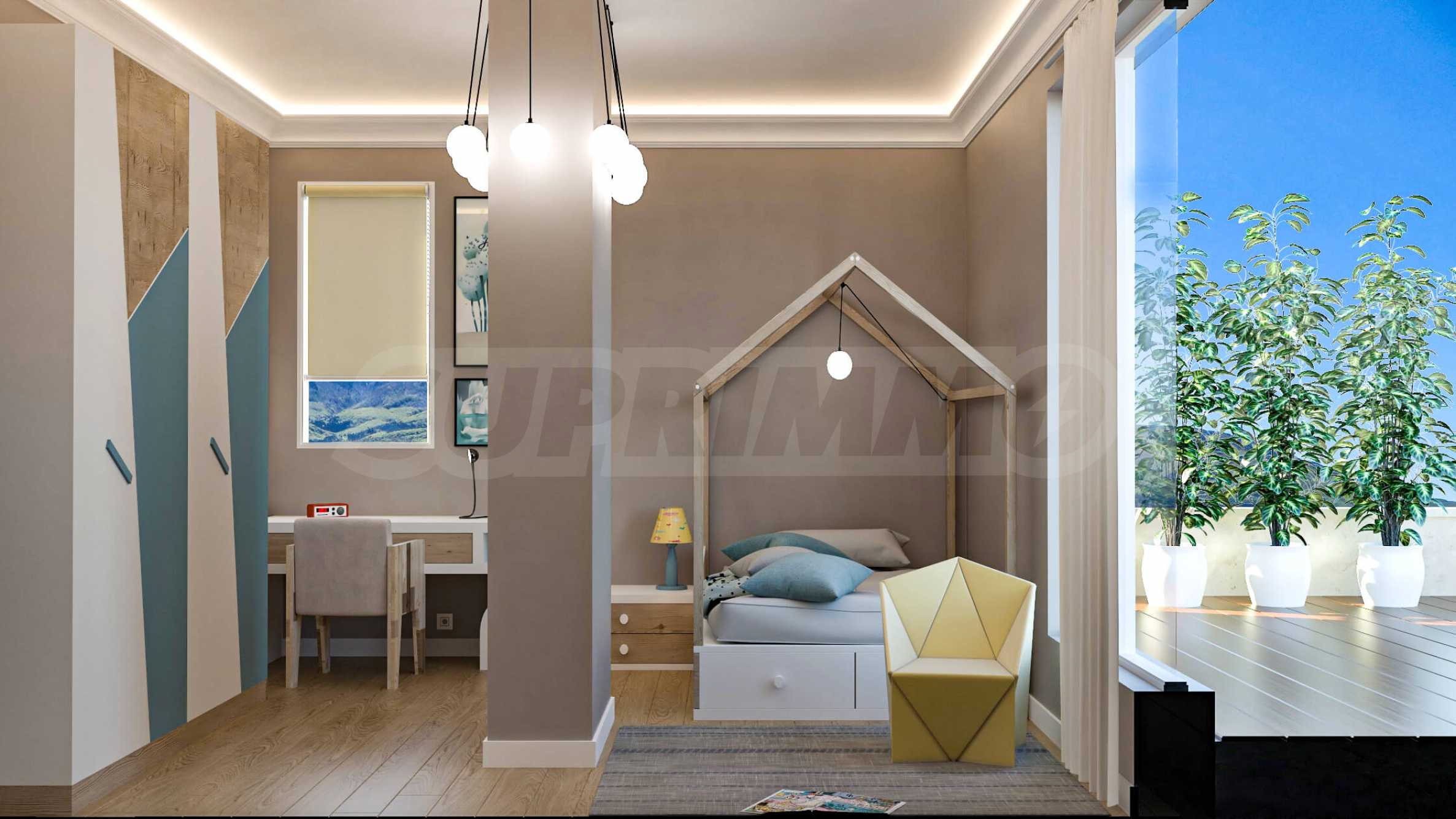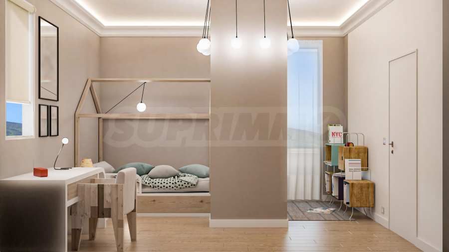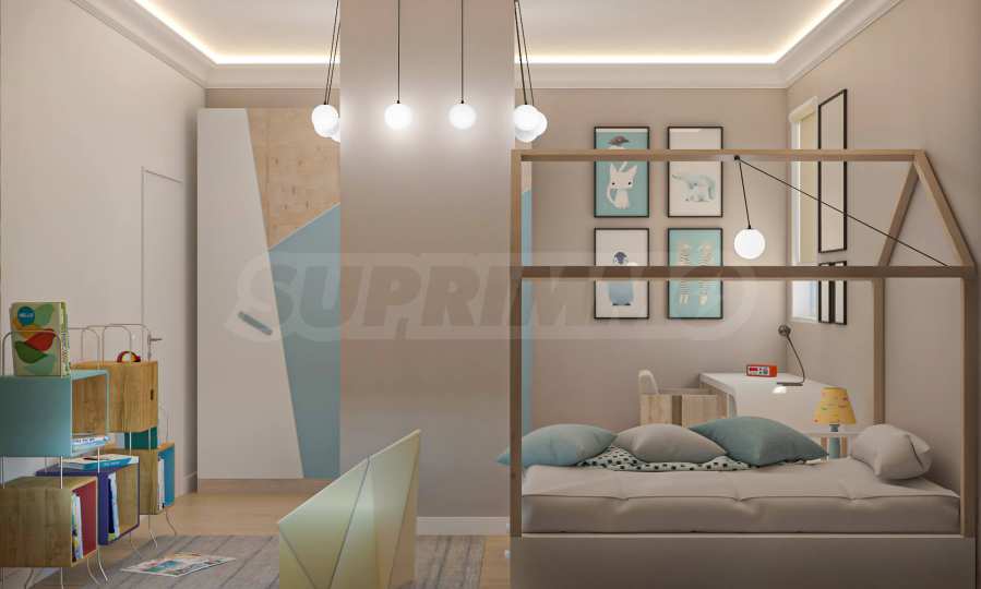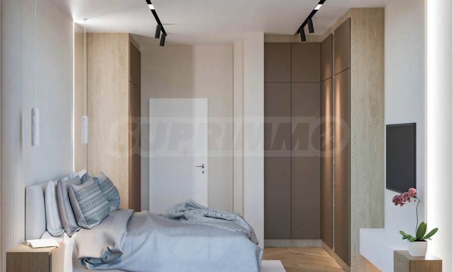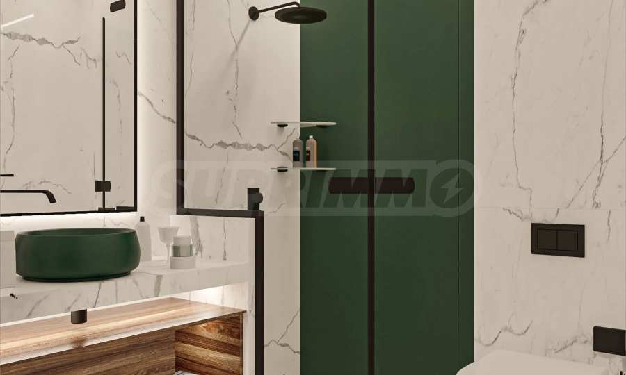 Визуализациите са примерни. Инвеститорът предлага примерни интериорни решения, като е обърнато особено внимание на детайлите, които да създадат усещането за топлина в дома и радост от новото жилище. Опитните дизайнери и архитекти на фирмата са готови да осигурят съпровод до пълна пространствена реализация на всеки индивидуализиран обект.Изложение: юг-запад-север.