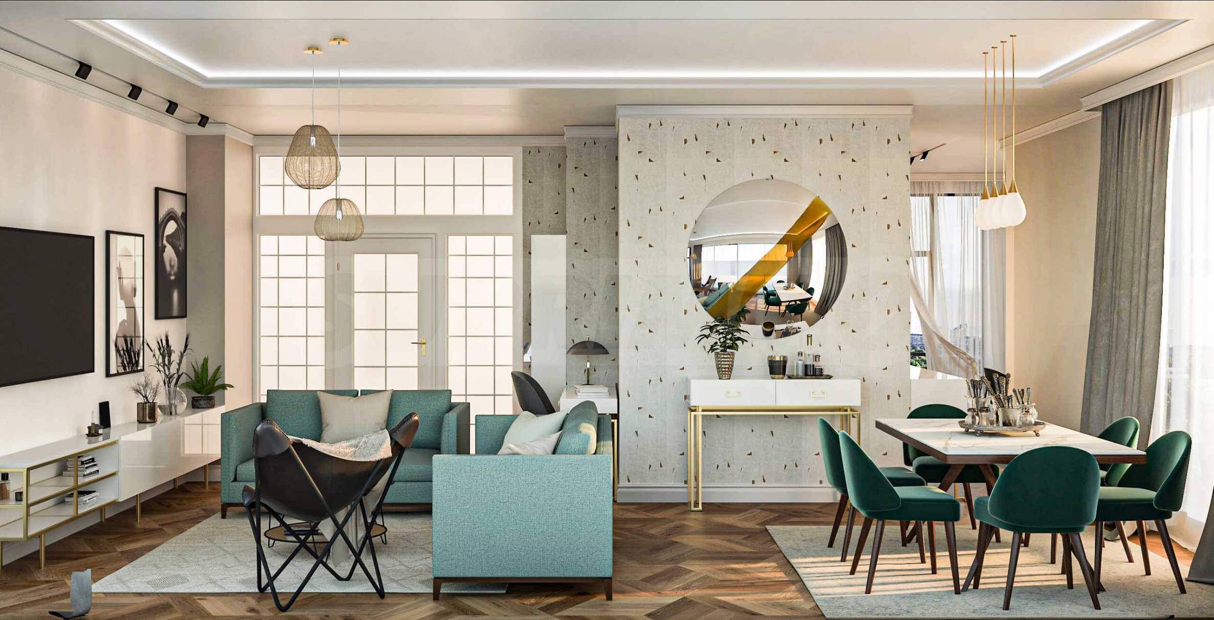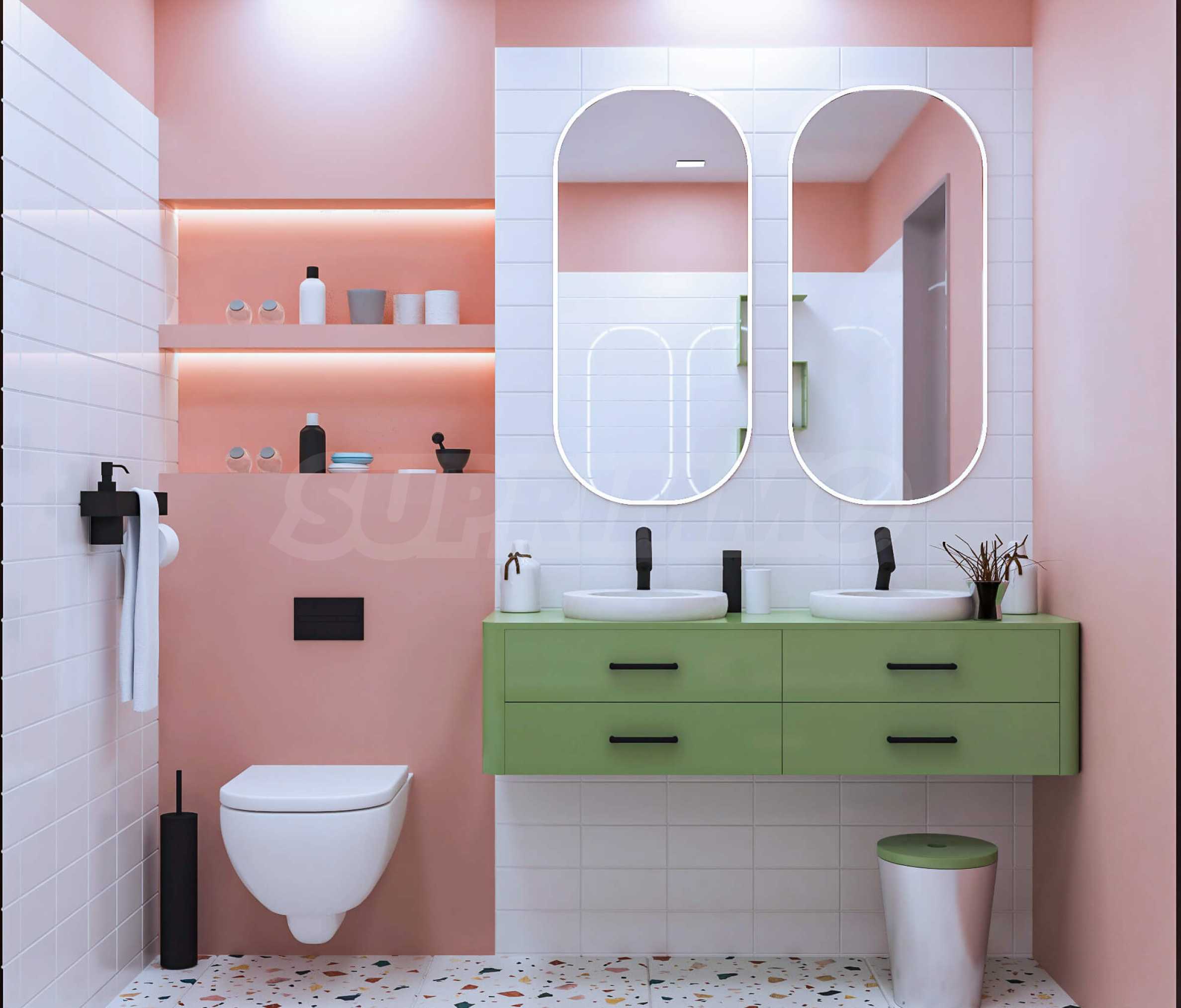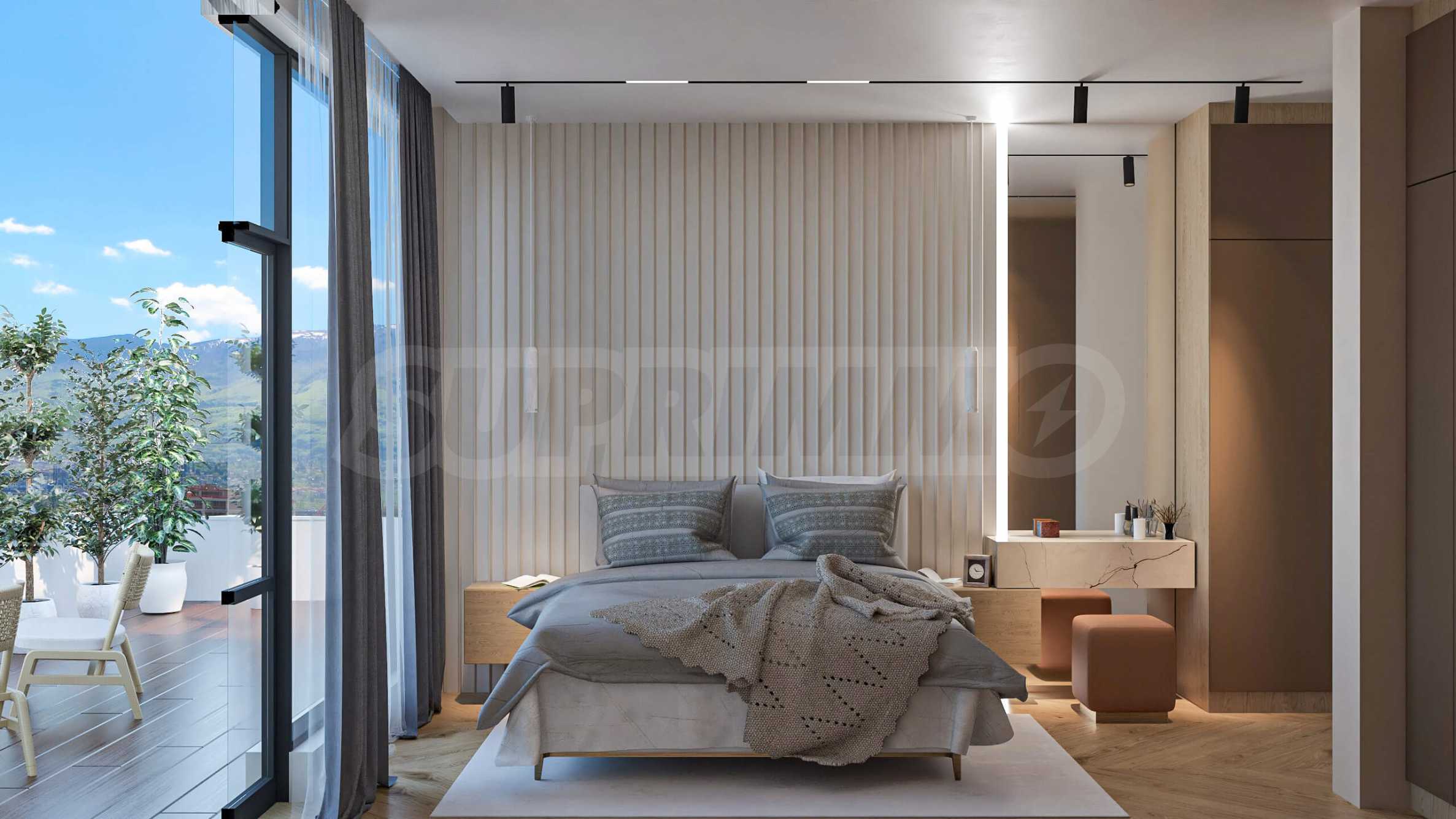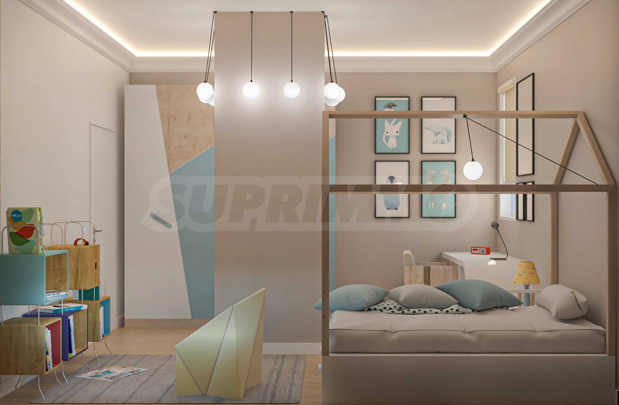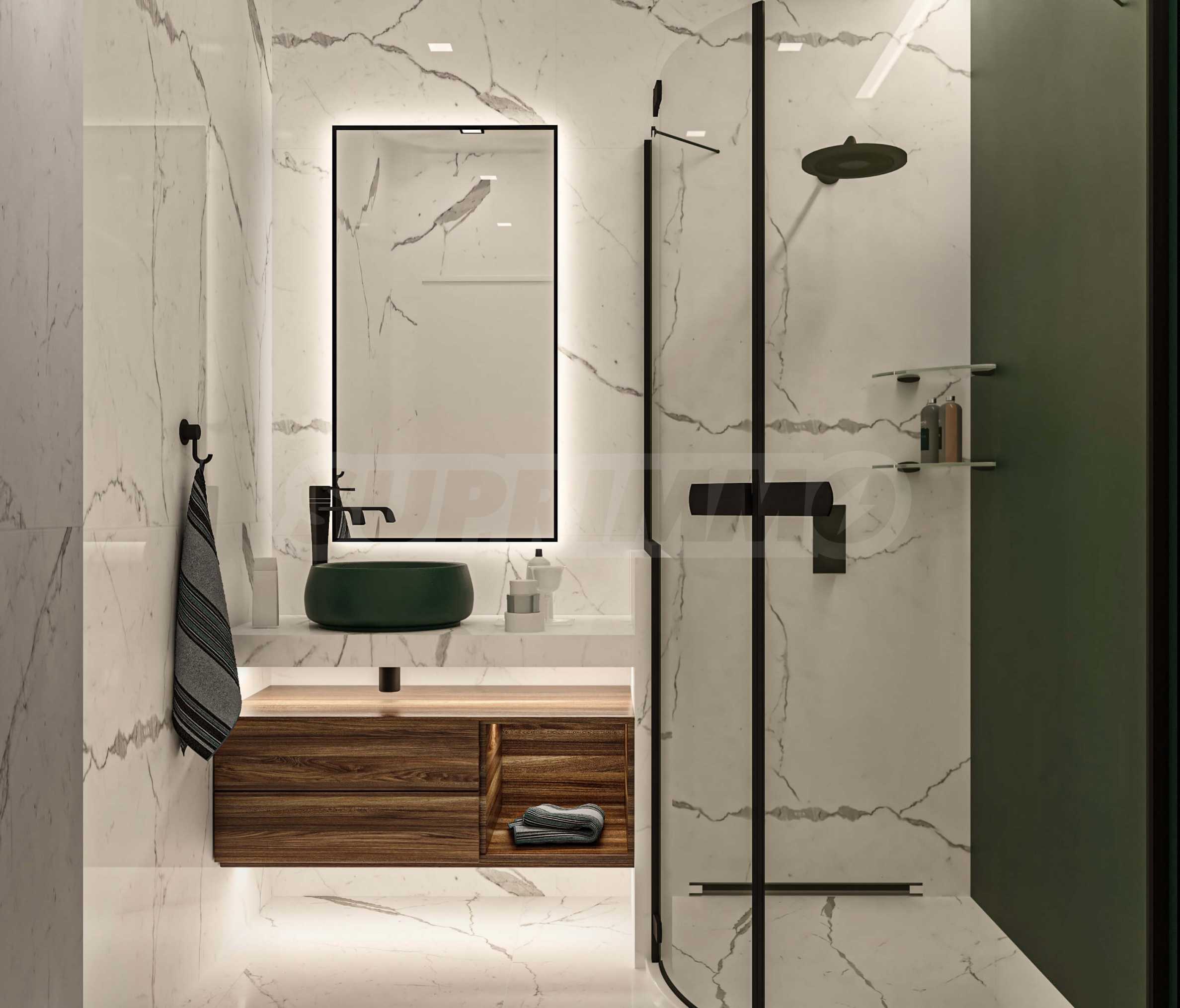 Визуализациите са примерни. Инвеститорът предлага примерни интериорни решения, като е обърнато особено внимание на детайлите, които да създадат усещането за топлина в дома и радост от новото жилище. Опитните дизайнери и архитекти на фирмата са готови да осигурят съпровод до пълна пространствена реализация на всеки индивидуализиран обект.Изложение: юг-запад-север.