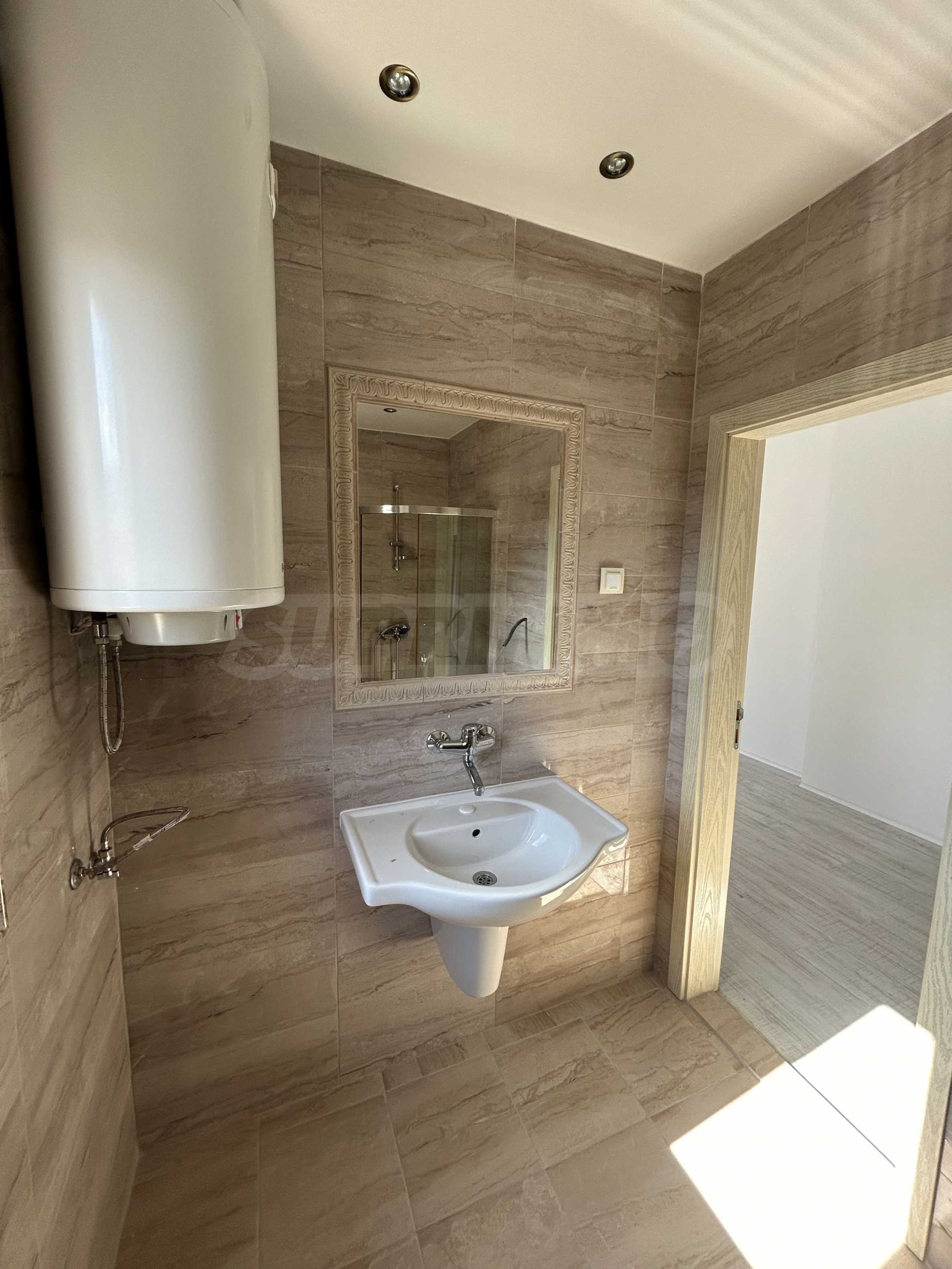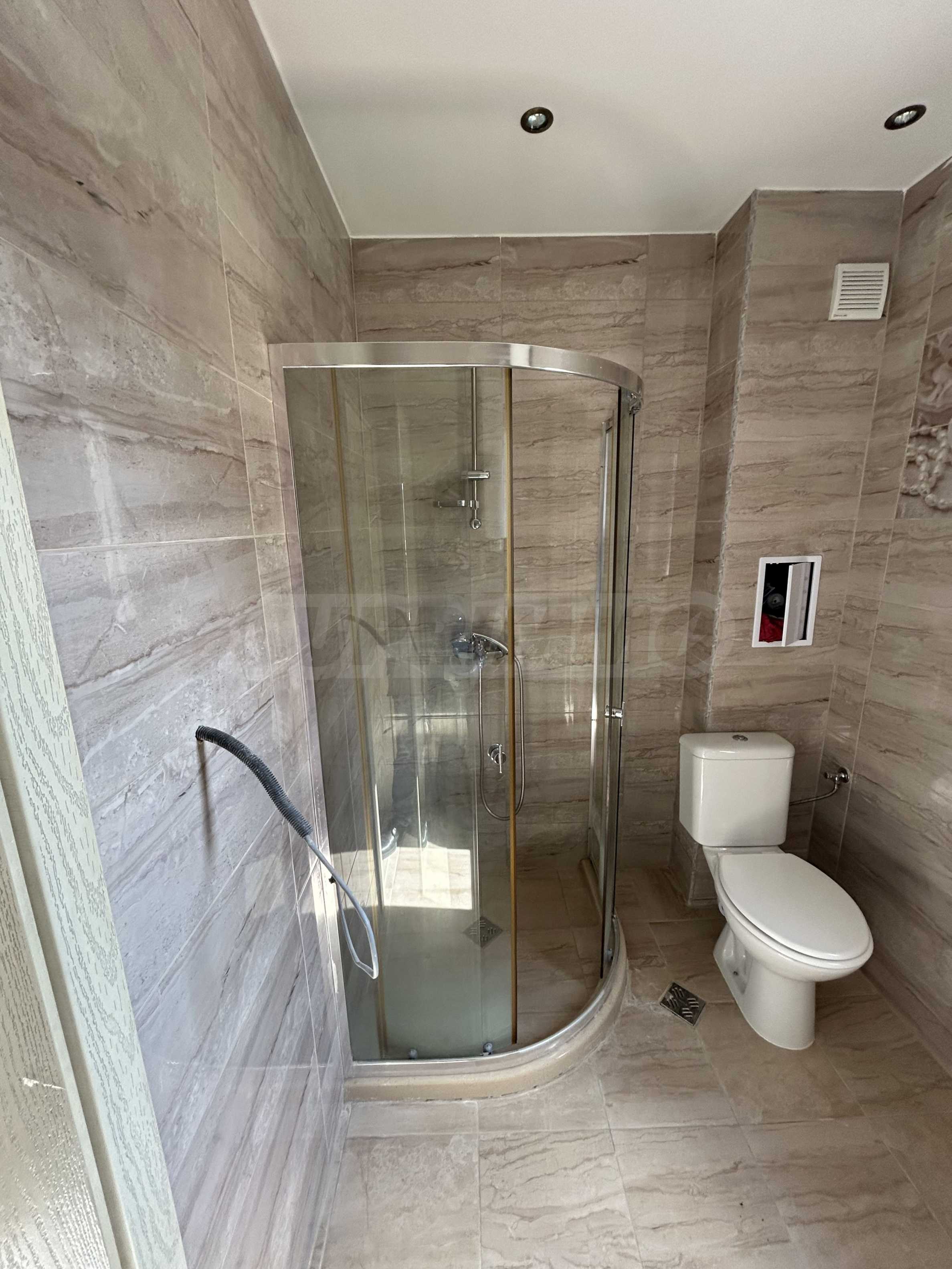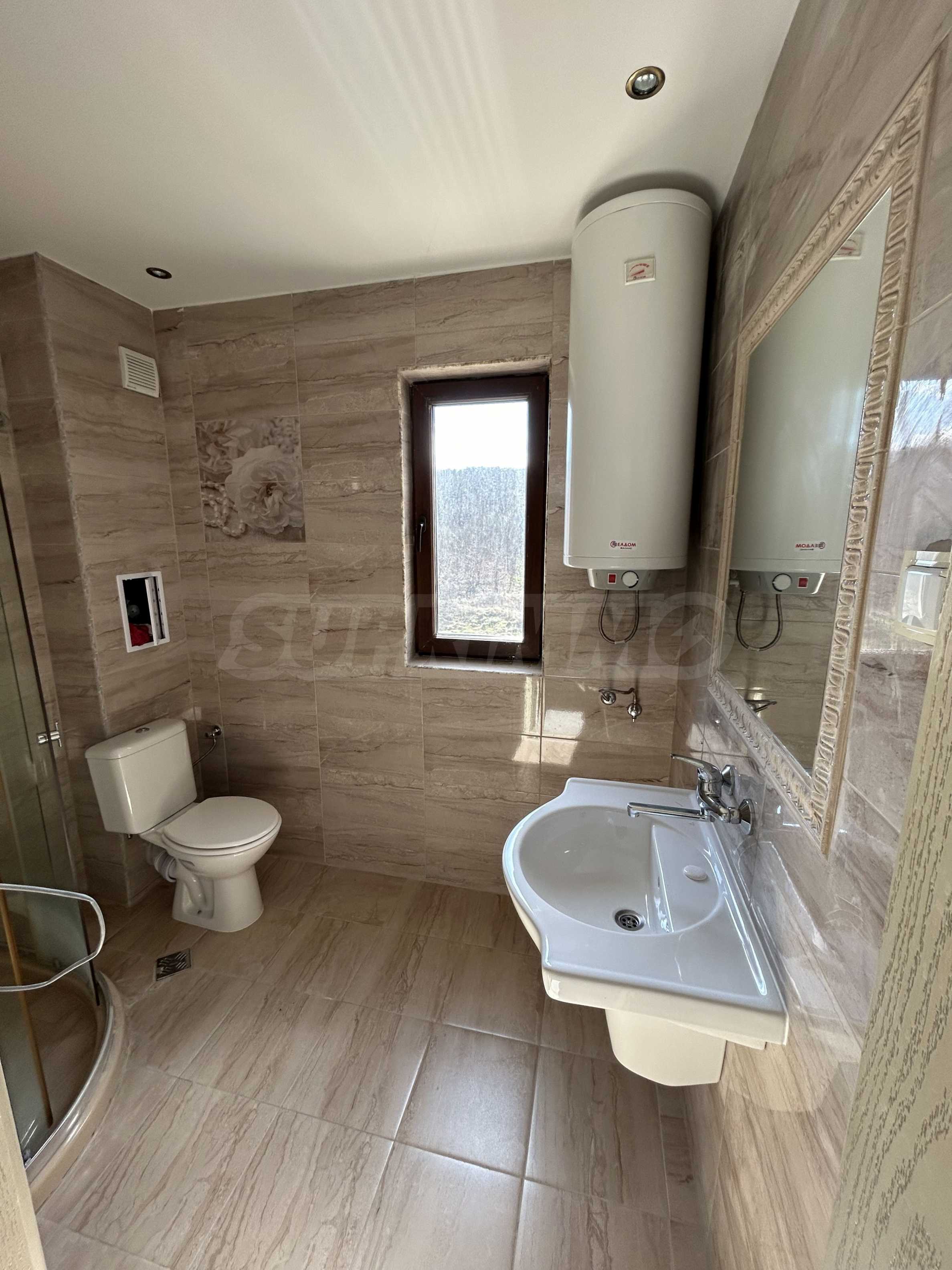 - баня – под – теракот, стени – фаянс, душ батерия, моноблок, мивка, душ кабина и бойлер.