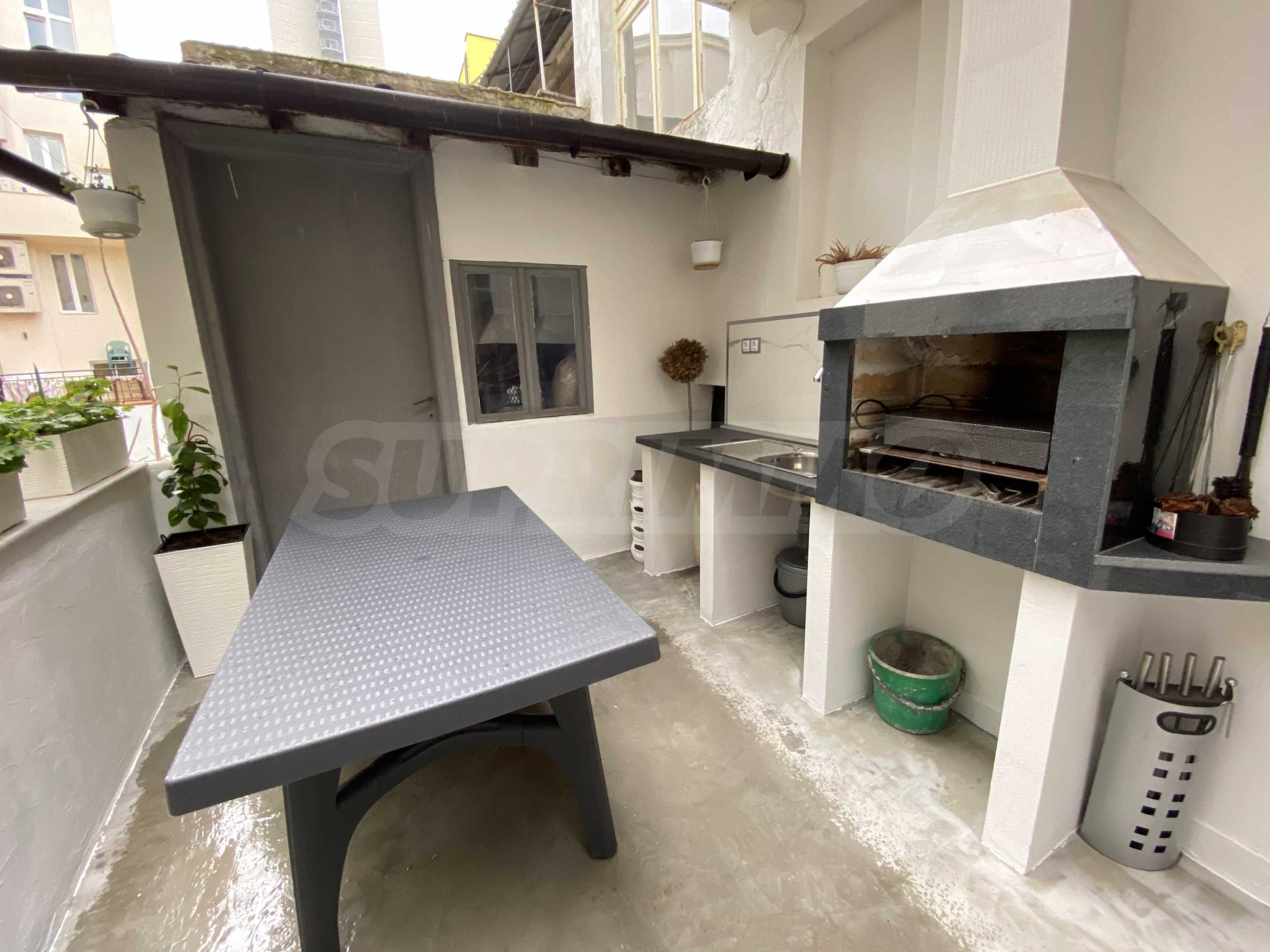 Имотът се намира в близост до хотел "България", на тиха и зелена улица. В района има магазини, заведения и салони за красота, а всички институции са на пешеходно разстояние. Пристанище Бургас и Морската градина са на 10 минути пеша.