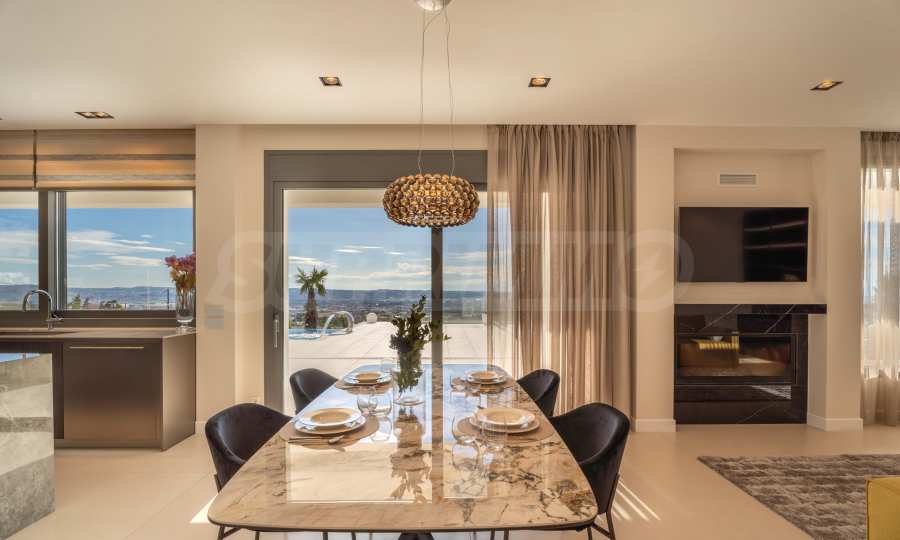 На приземния етаж с площ от 100м2 са разположени хол, трапезария и кухненска част. Функционалната и ергономична кухня е оборудвана с уреди и обков от реномирани марки. Дизайнерските мебели внасят естетика и повишават комфорта. Модерната камина Piazetta придава естетика и топлина на интериора: когато навън стане хладно, тук ще е уютно и топло! Всичко това образува едно пространство, където семейството може удобно да прекарва много време. На основния етаж има и още една всекидневна, която може да служи за офис или стая за гости.