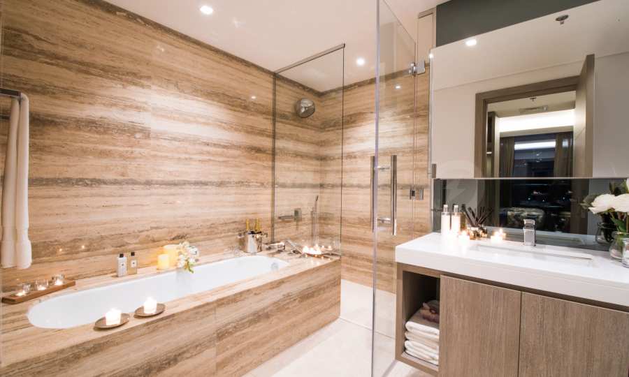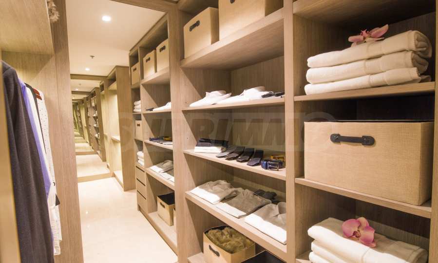 Жилищата в The Sterling предлагат просторно изживяване с високи тавани от 3 метра. Функционалното разпределение, висококачествените материали и стилен дизайн имат цел да създадат идеалната среда, където да се отдадете на блясък, красота и безкрайни възможности. Стилната подова настилка от омански бежов камък, мраморната стена в кухнята и травертините стени в баните добавят нотка елегантност. Изработени по поръчка и вградени гардероби и дрешници с вградено осветление предлагат достатъчно място за съхранение. Съвременната италианска кухня с кварцови плотове и барплот е едновременно функционална и стилна. В допълнение, висококачествените европейски уреди от водещи марки правят готвенето лесно. Баните са напълно оборудвани, а домашната smart система позволява регулиране на осветлението, температурата и завесите.