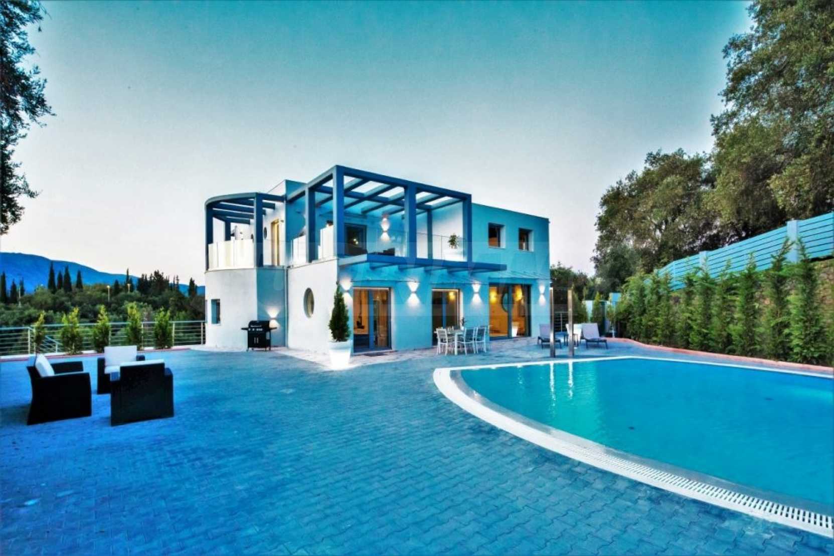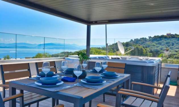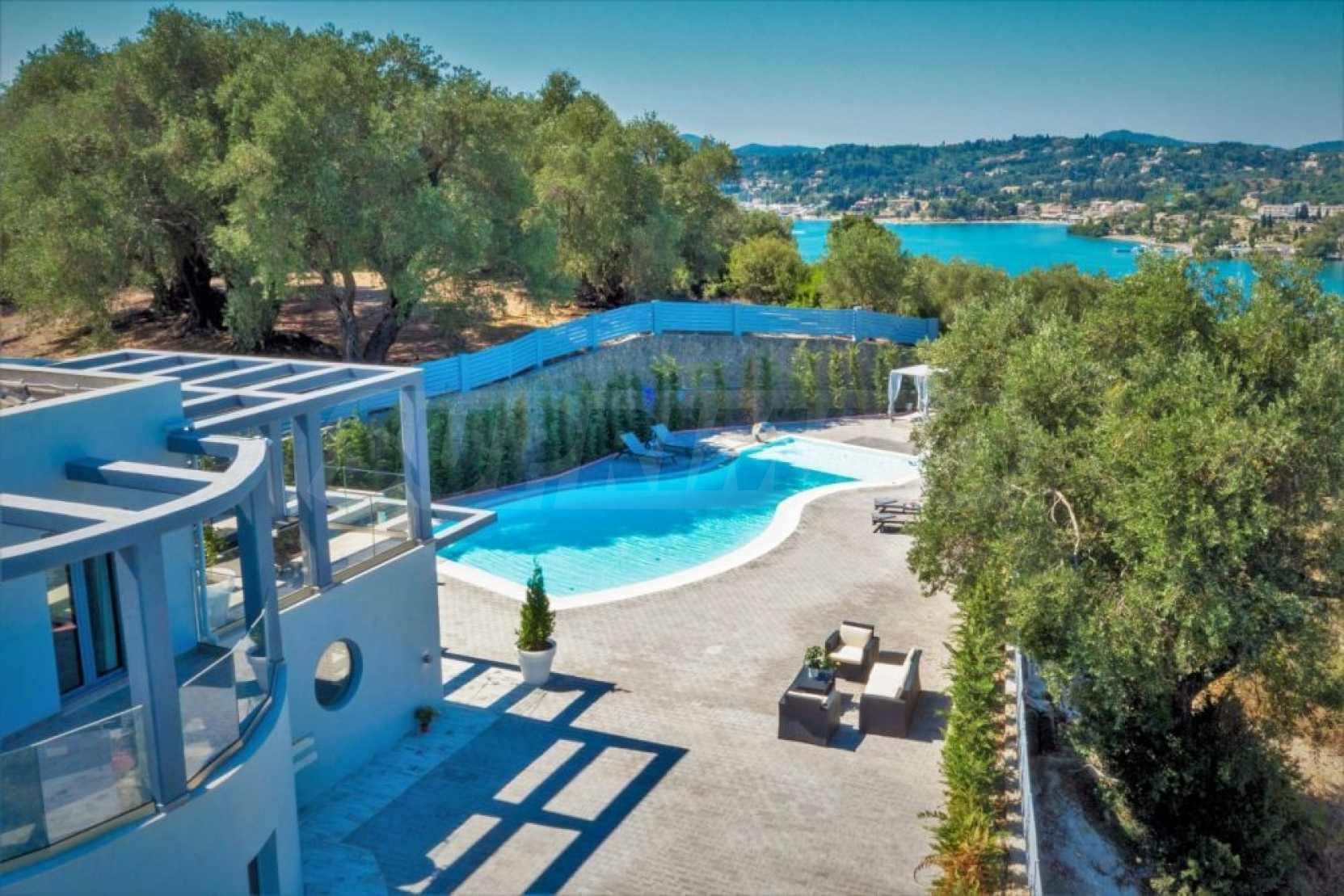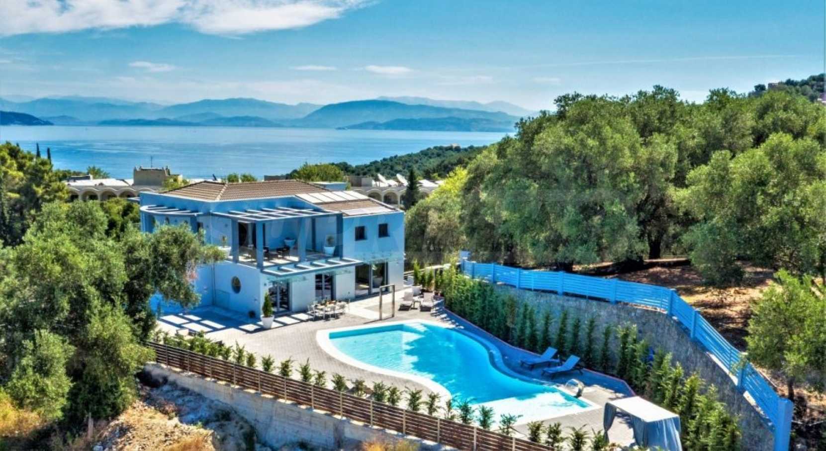 Този имот с интелигентна къща предлага невероятна гледка към дълбокото синьо море, околните тучни хълмове и град Корфу. На кратко разстояние с кола има много красиви пясъчни плажове. Районът Дасия и Ипсос, които са на по-малко от 10 минути път с кола от вилата, разполага с всякакви магазини, услуги и удобства, включително училища, супермаркети, кафенета, ресторанти и много други.