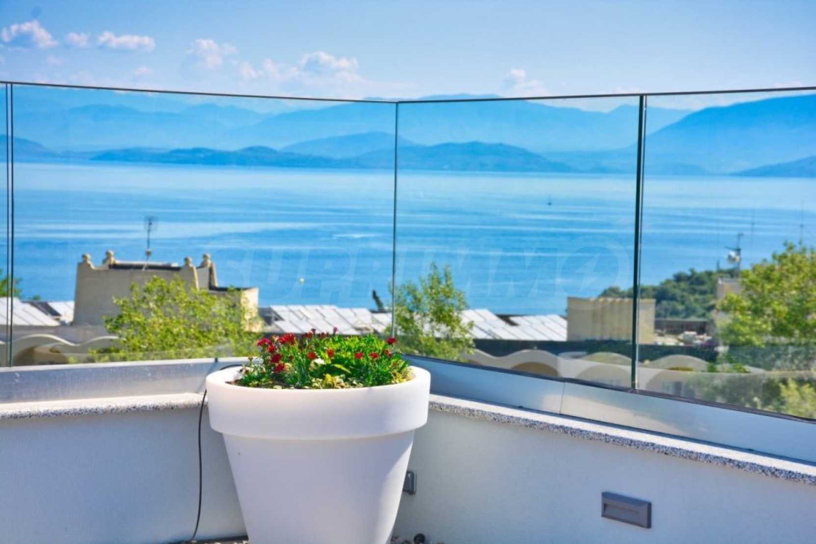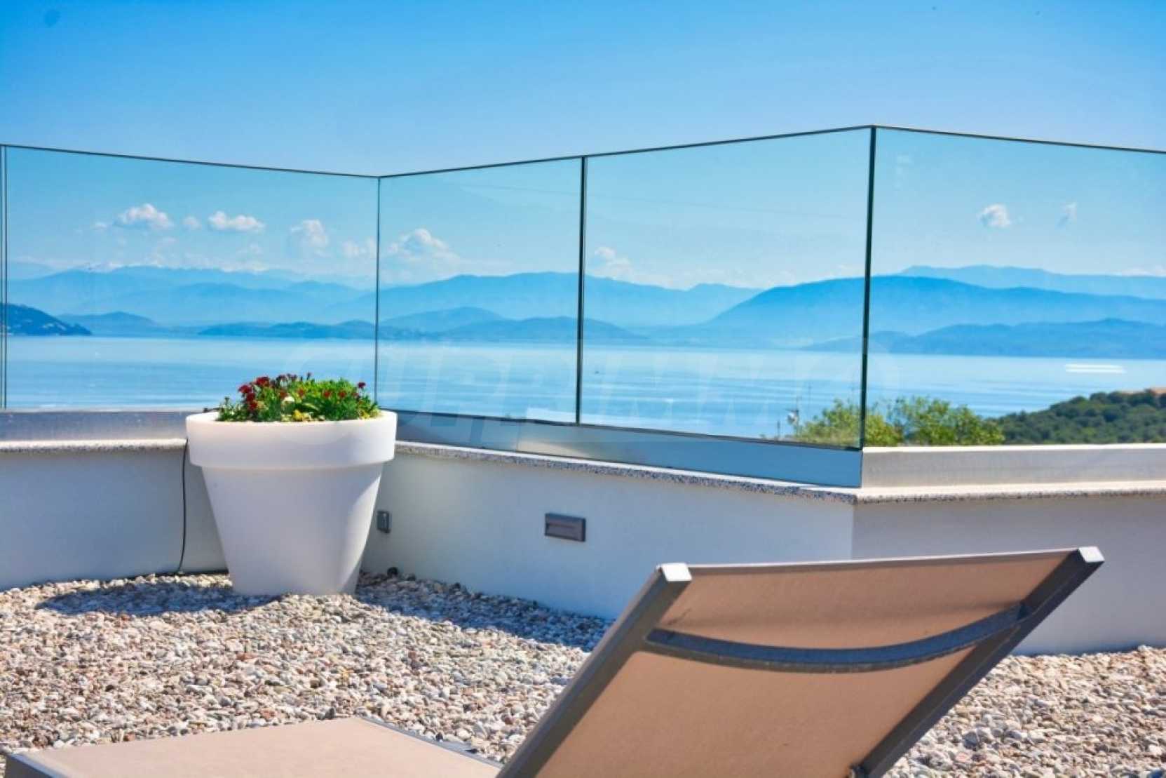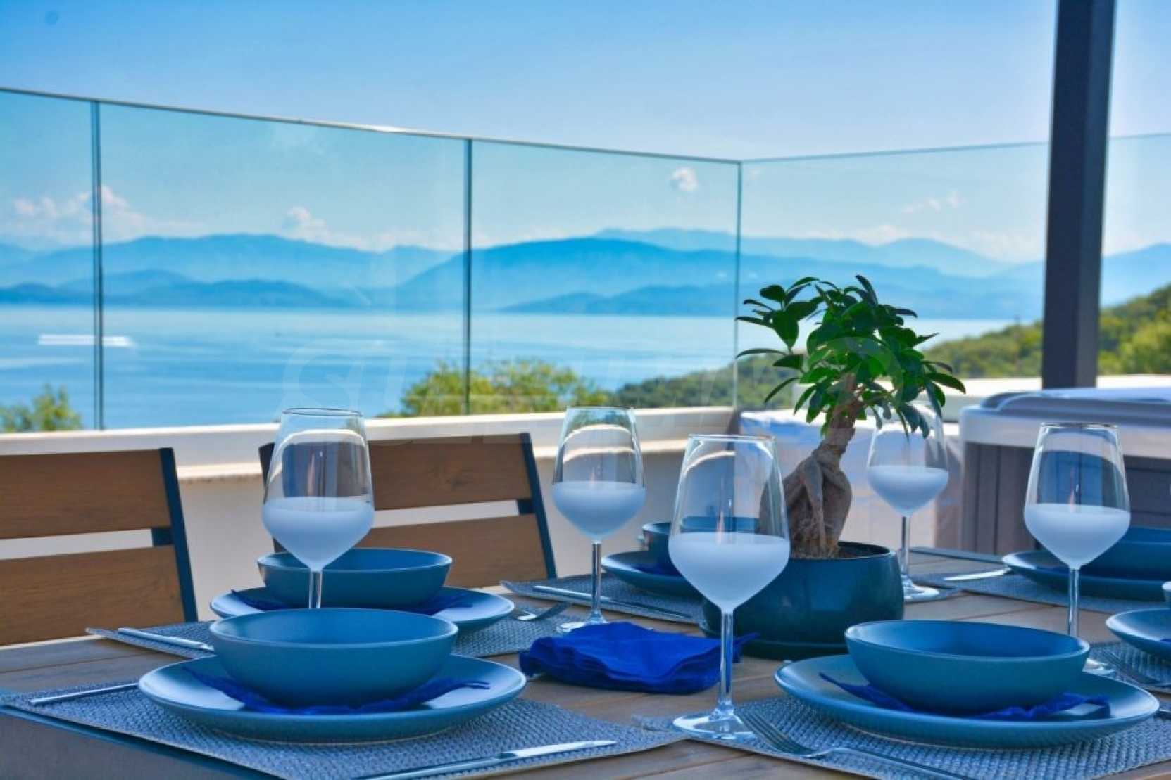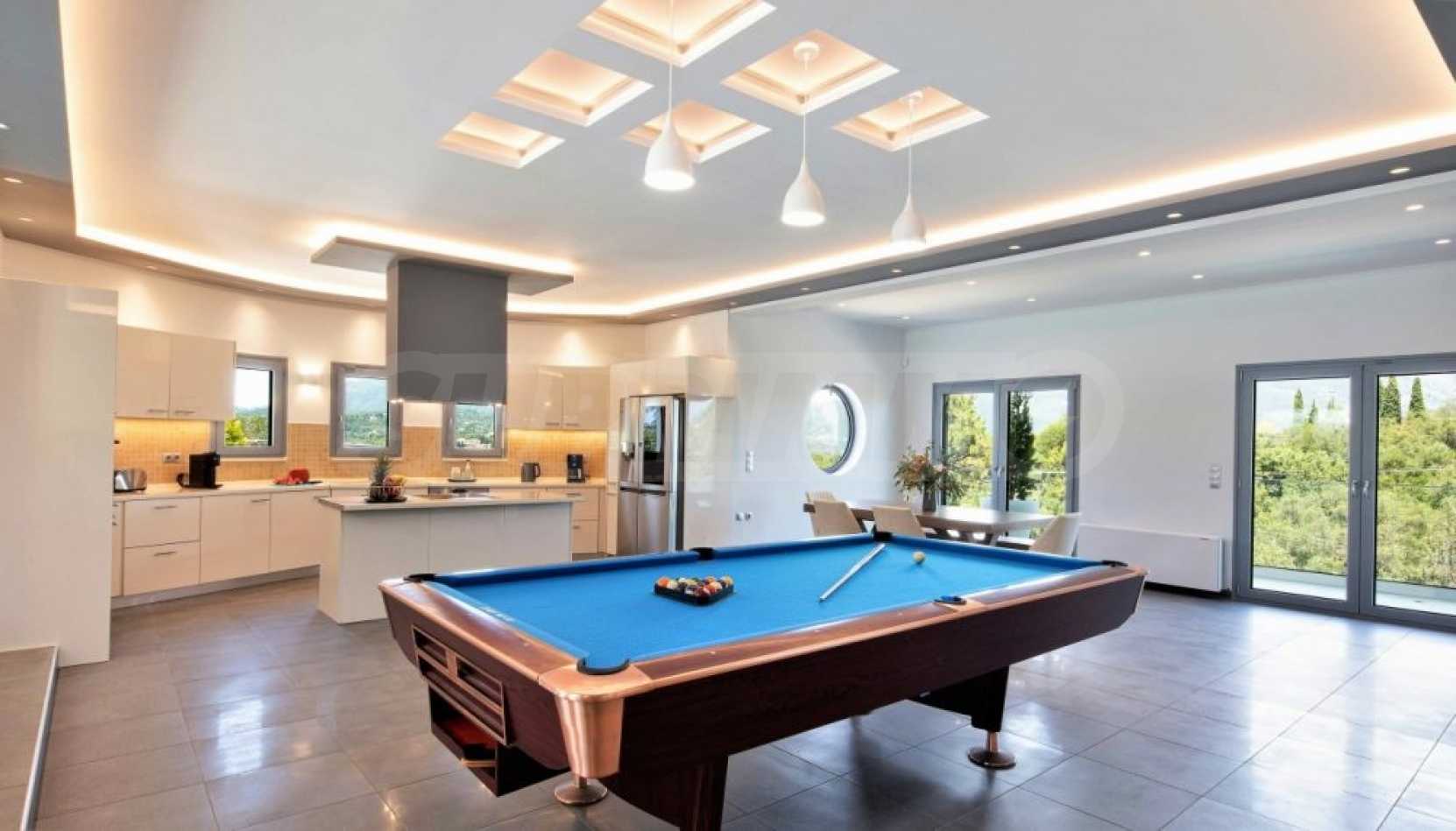 Вилата е разположена на три нива. Всички вътрешни и външни зони предлагат красиви гледки, а всички етажи имат просторни веранди и балкони с изглед към залива Kommeno. До къщата се влиза или през главния вход на приземния етаж, или през гаража в полусутерена.