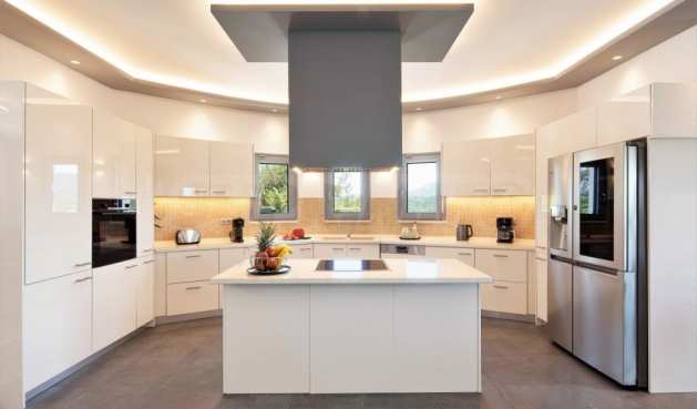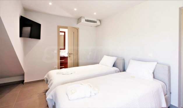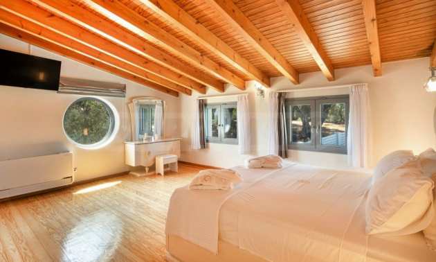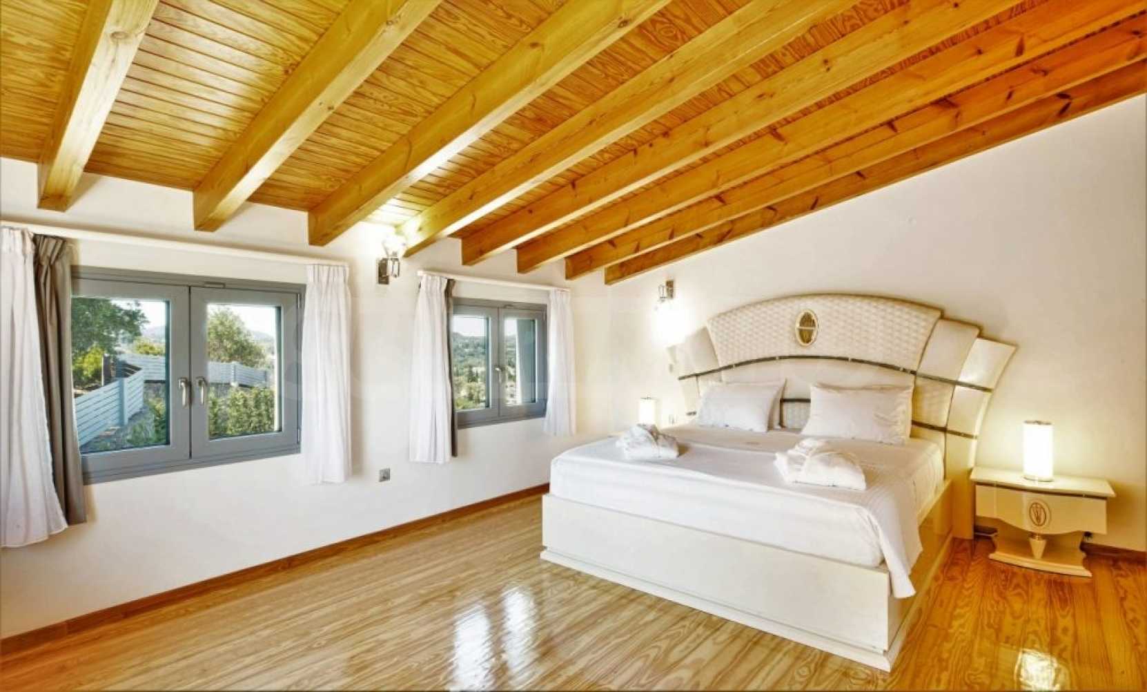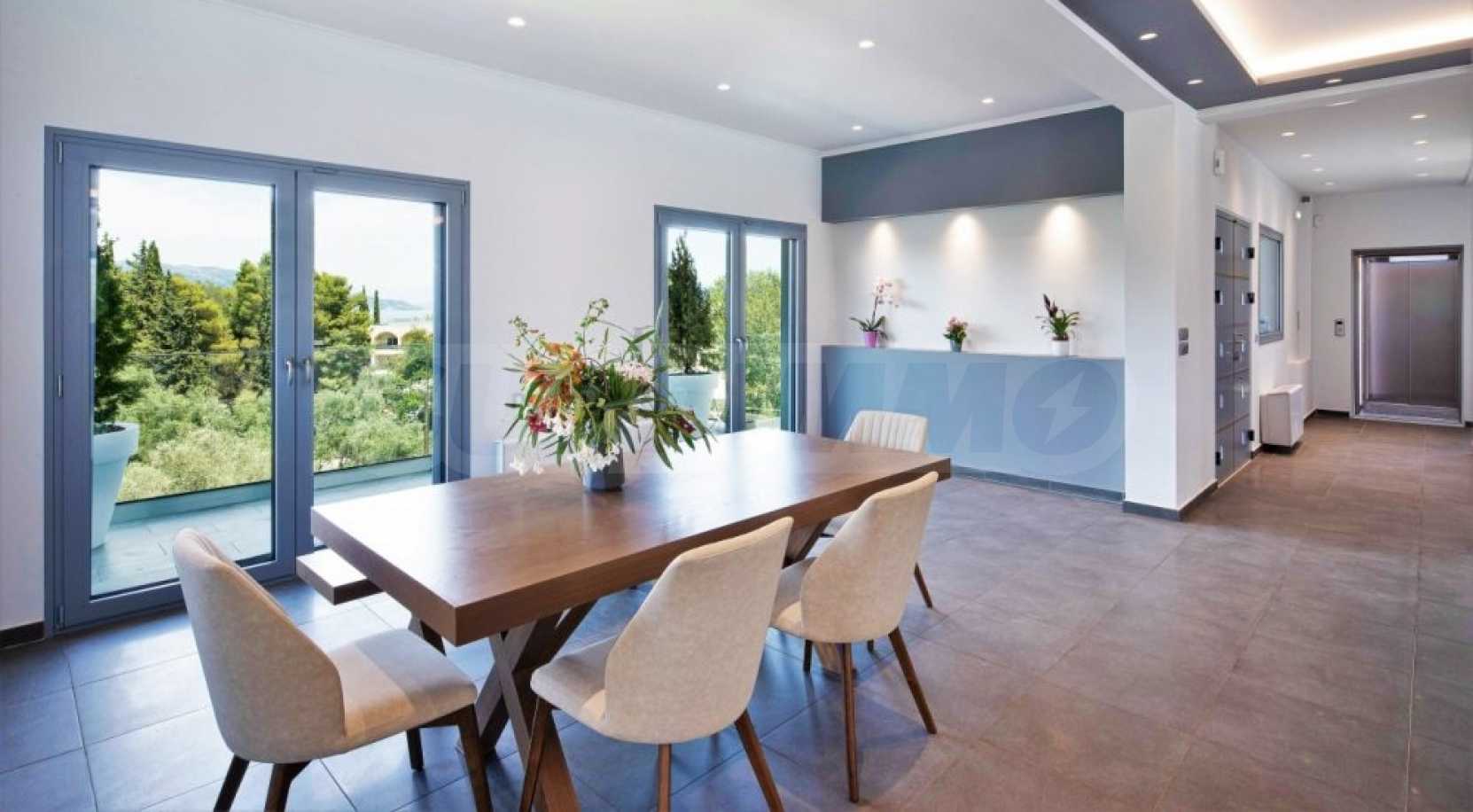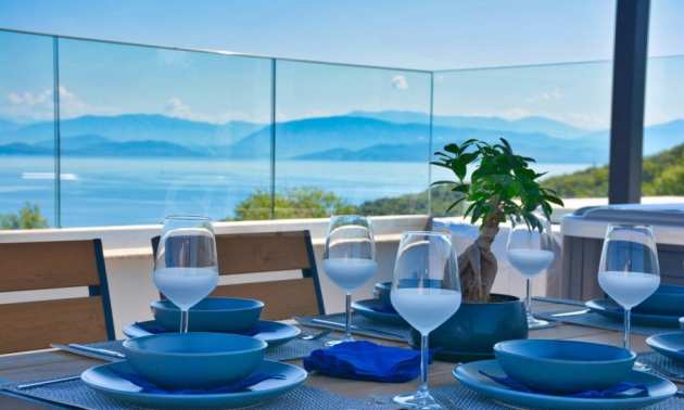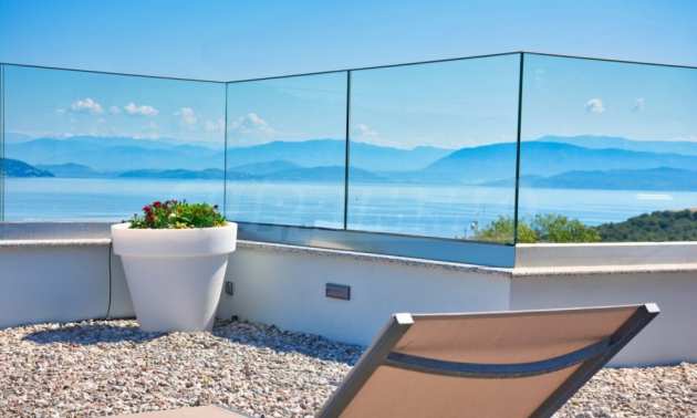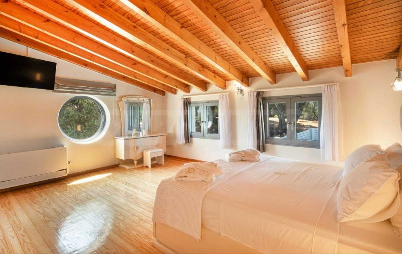 Вилата е разположена на три нива. Всички вътрешни и външни зони предлагат красиви гледки, а всички етажи имат просторни веранди и балкони с изглед към залива Kommeno. До къщата се влиза или през главния вход на приземния етаж, или през гаража в полусутерена.