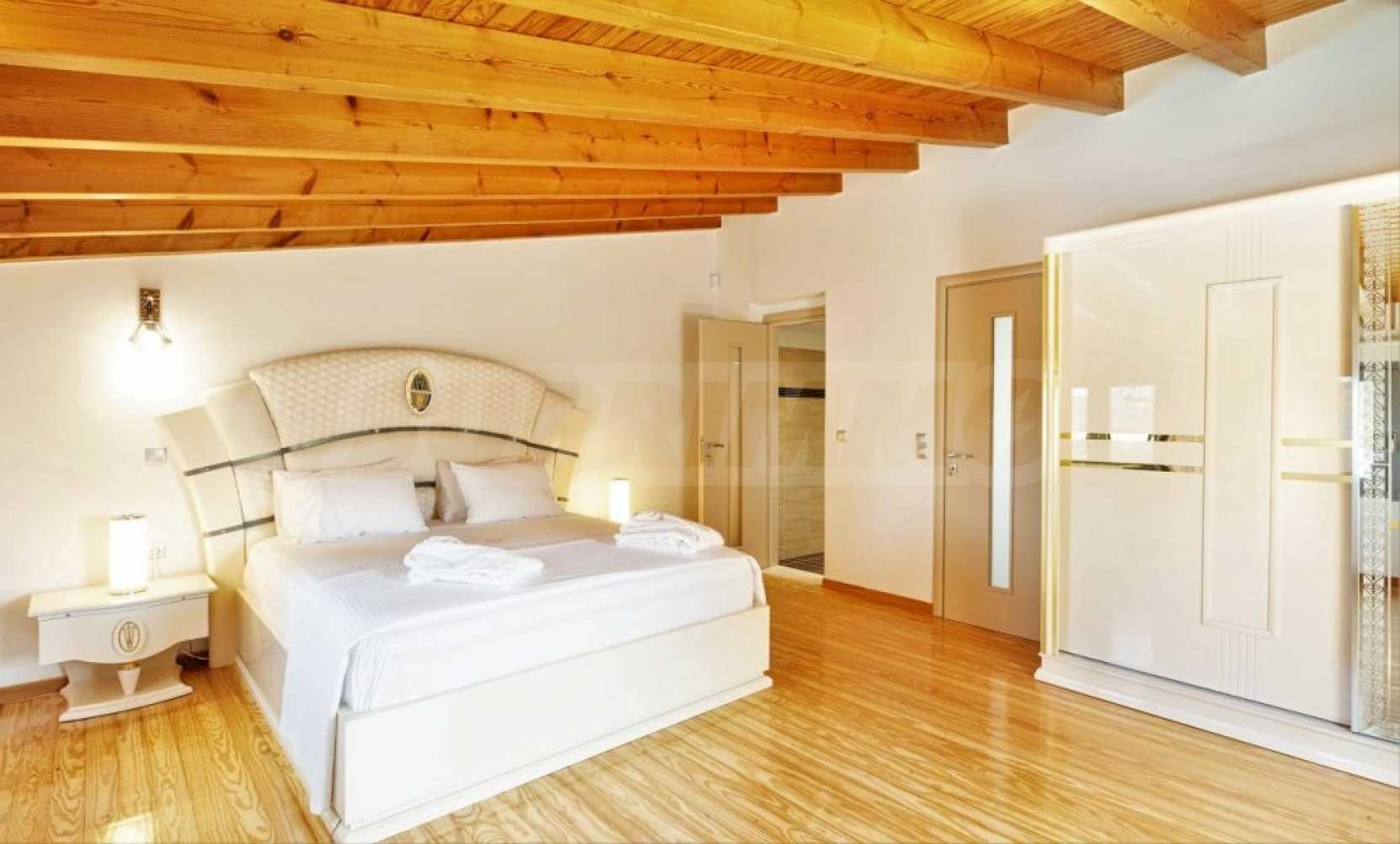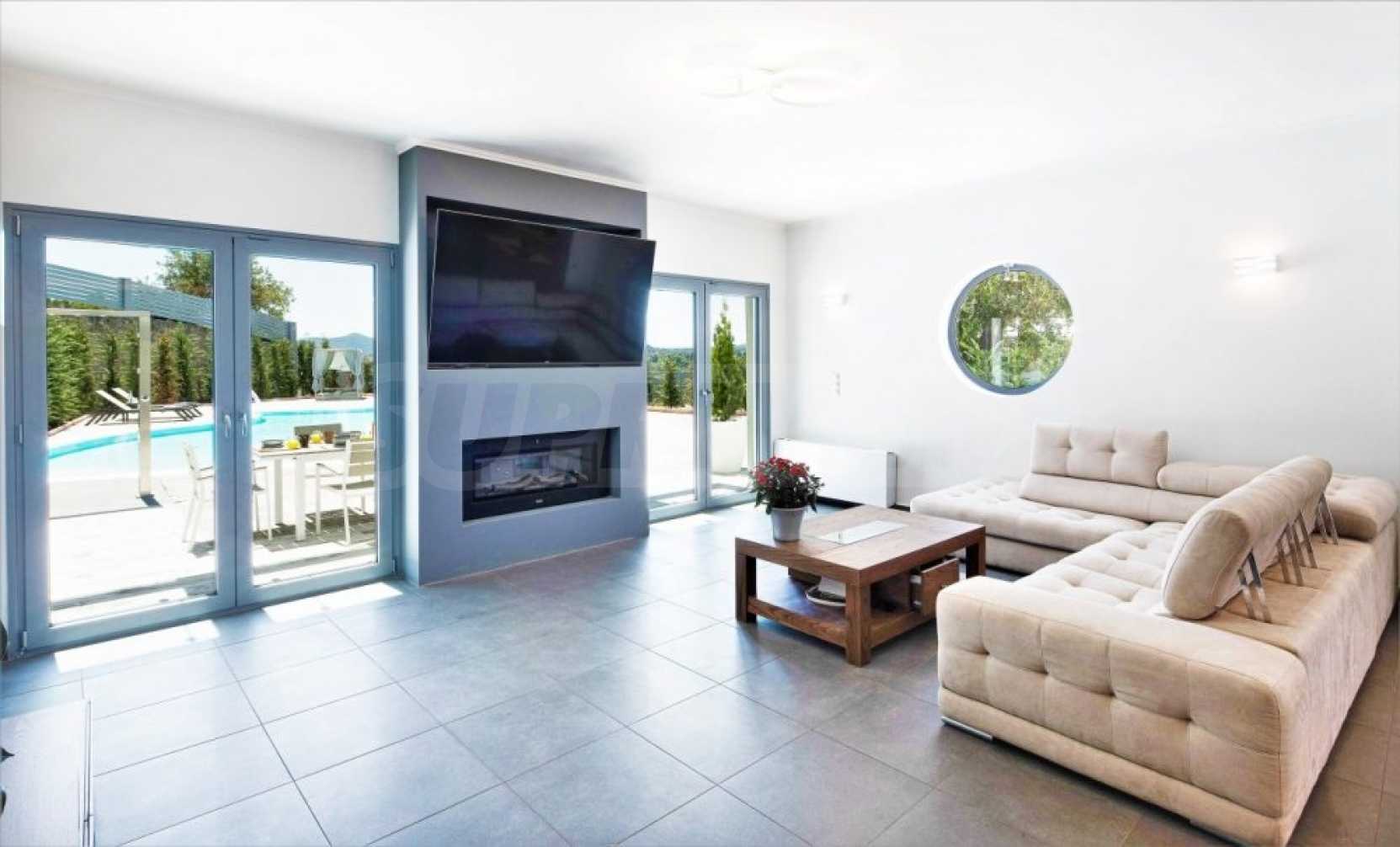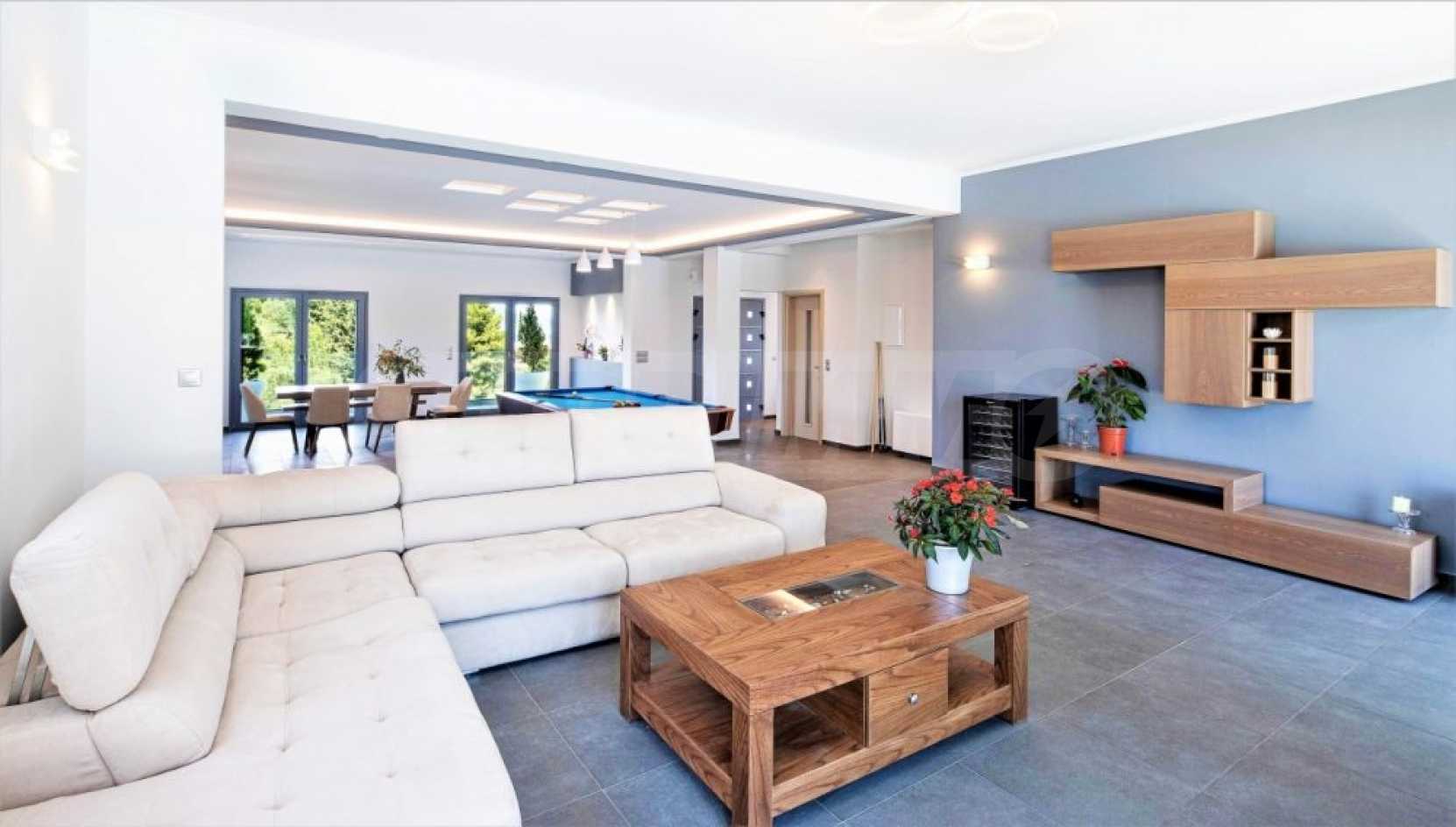 Къщата е безупречно проектирана и построена с фини и скъпи материали. Покупката му е отличен избор за някой, който иска луксозен имот в близост до удобства и далеч от градската суматоха.