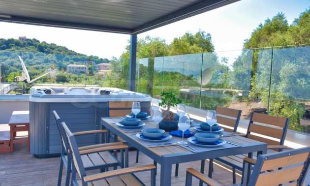 Освен това има невероятна покривна градина с джакузи, кът за хранене с 360 гледка и биоклиматична пергола.
