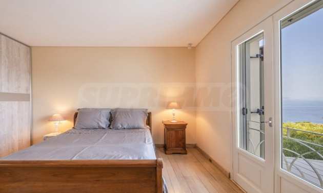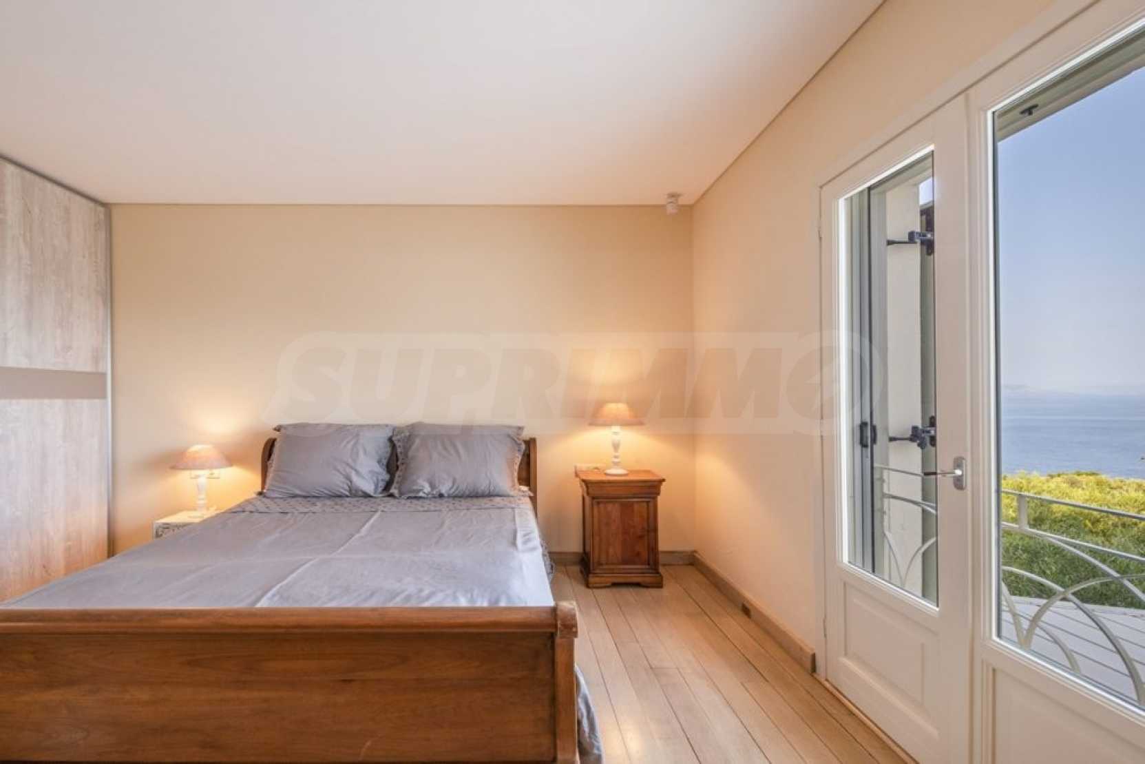 Павирана алея ни води до приземния етаж и главния вход, който ни приветства в просторен и светъл отворен хол/кухня/трапезария с монтирана на тавана камина и една спалня с баня и душ. Големи френски врати ни отвеждат до покрит балкон, който е идеалното място за релаксиращи моменти със семейството и приятелите ви, гледайки кристално чистите води. Голямото предимство на имота е единствената по рода си автоматична биоклиматична пергола със сензори за дъжд, която може да се отваря или затваря според желанието на собственика.