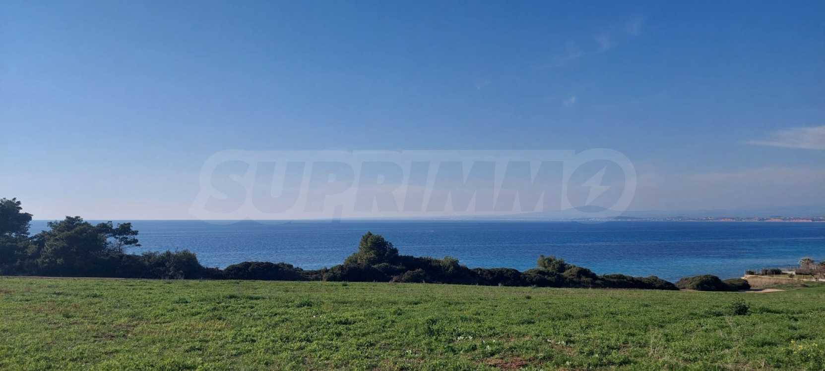 Уникален терен с площ от 5750 кв.м. Парцелът е подходящ за застрояване / идеален за хотел. . Намира се извън план, на много красиво място в Касандра, Халкидики. Намира се на първа линия до морето. Гледката към морето е изключителна. Разстоянието от центъра на района е 4.1 .km , а изложението е запад.