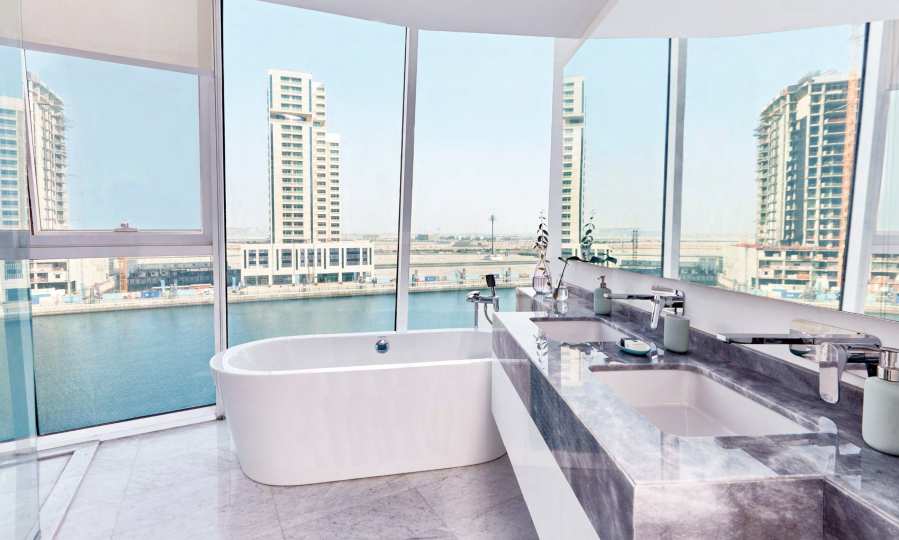 През светлата част на денонощието красивата фасада отразява морето и слънчевата светлина, а нощем LED осветлението, което е разположено по външния екстериор, е в пълен унисон с пъстрия живот в Дубай!