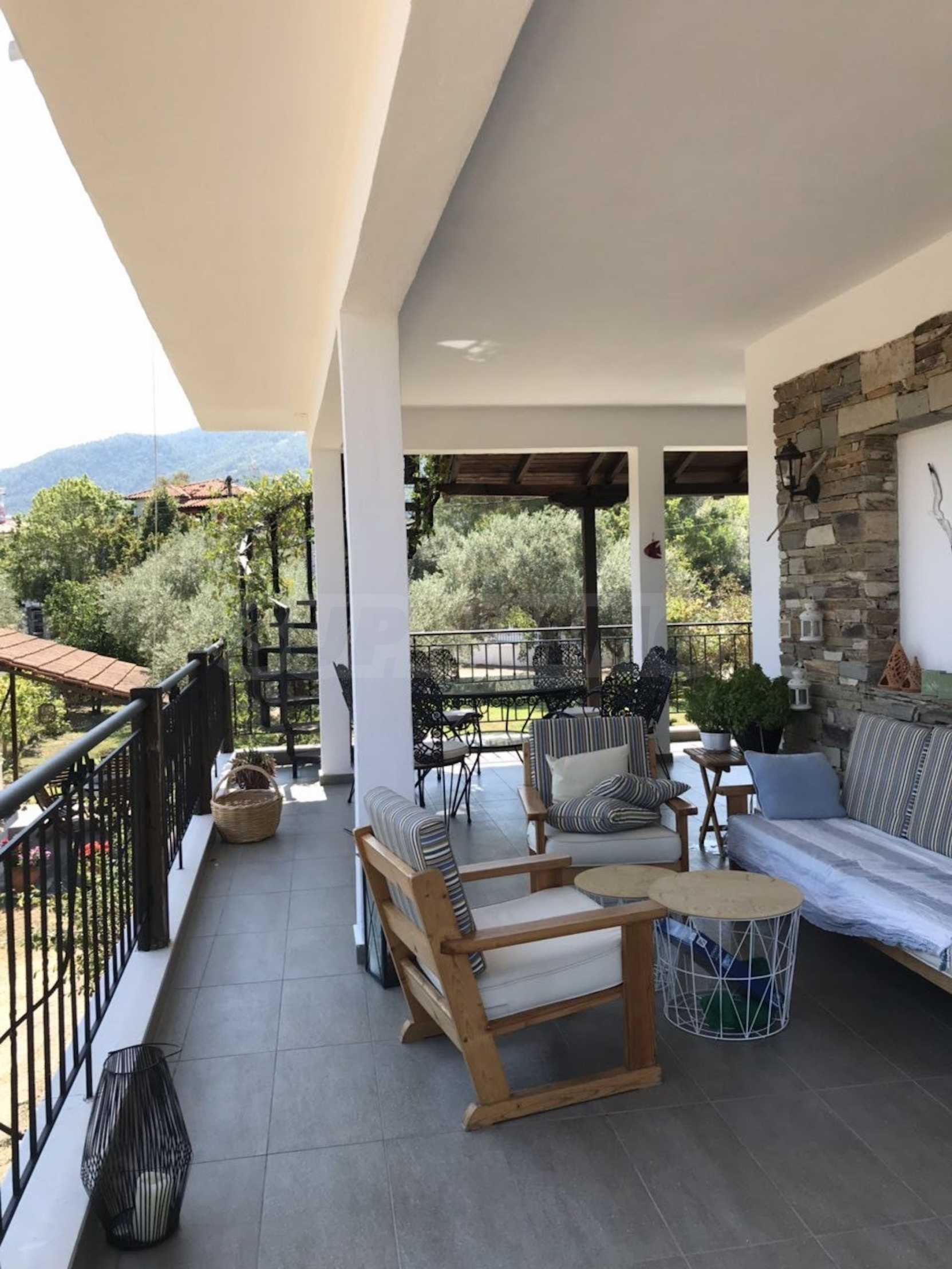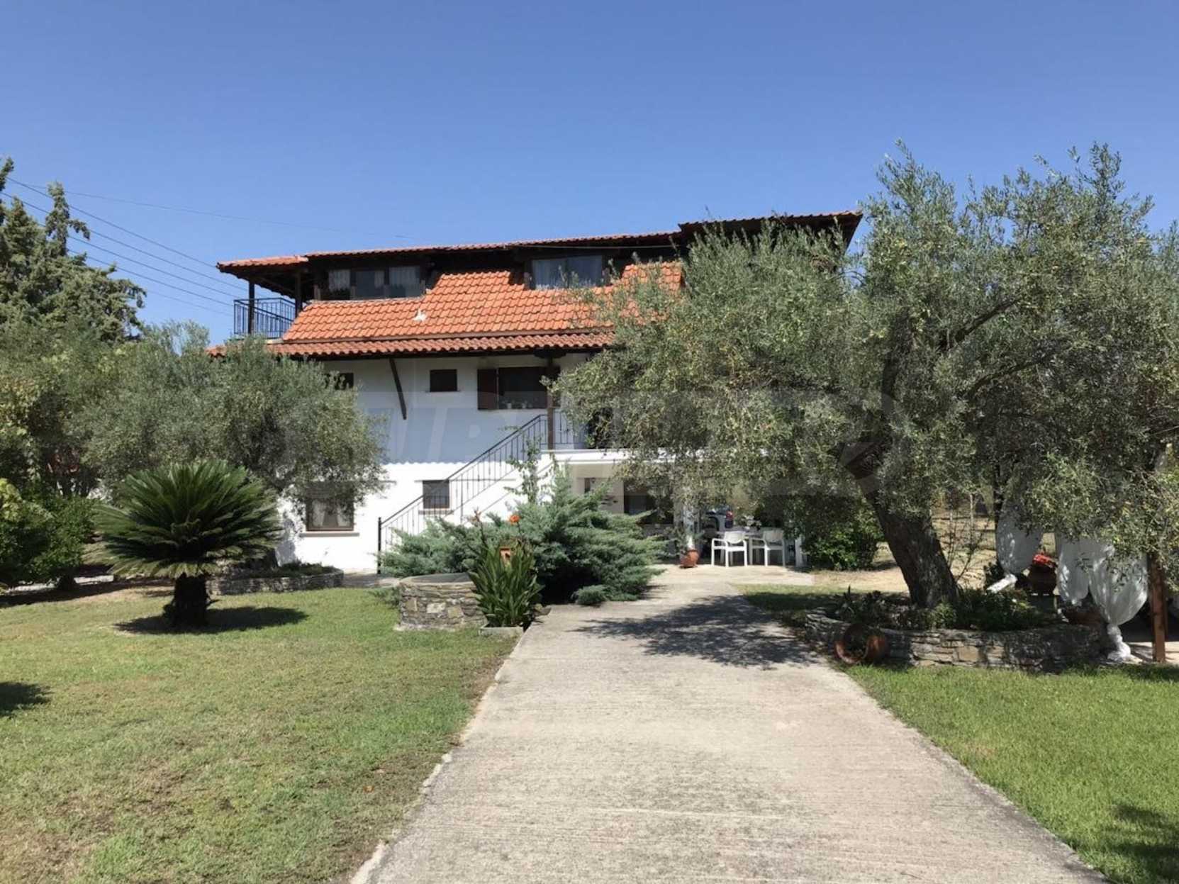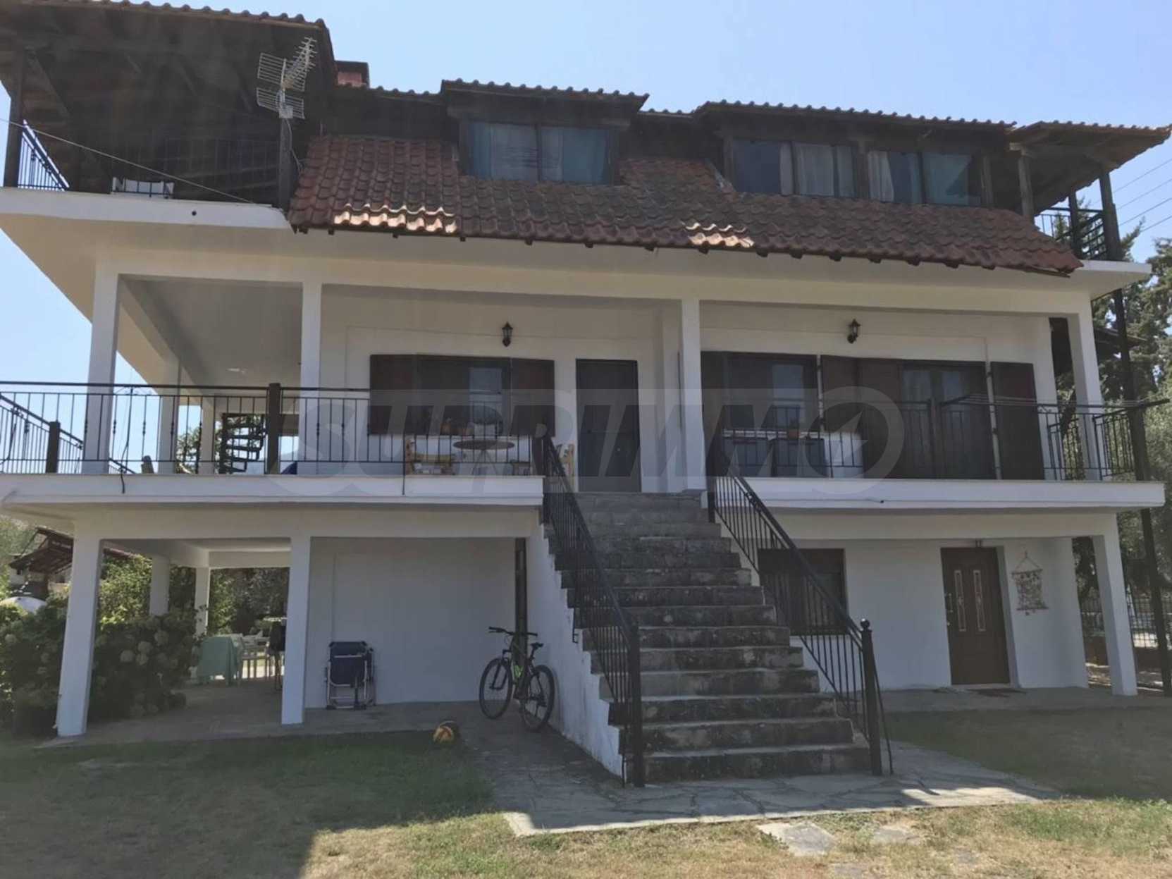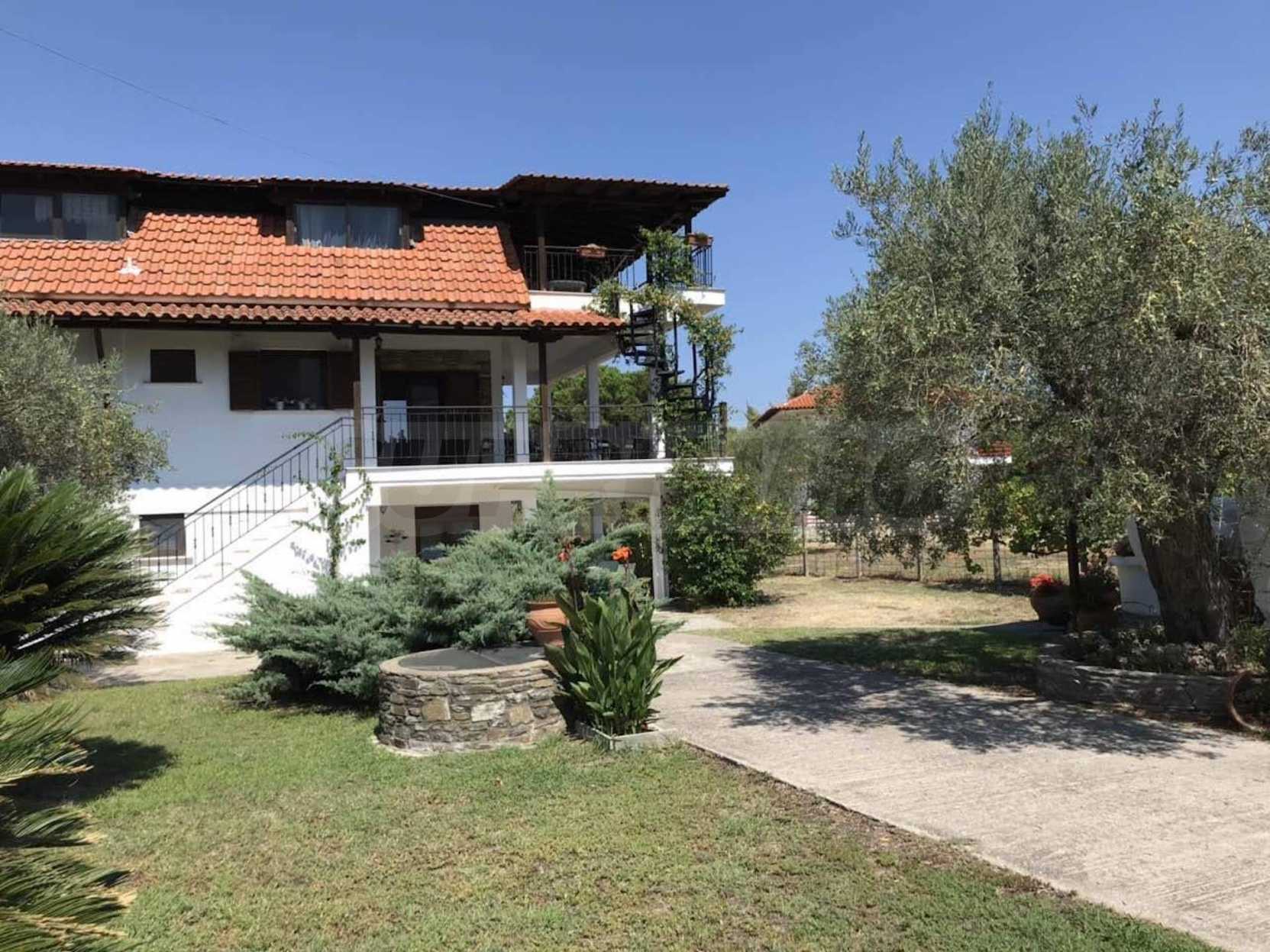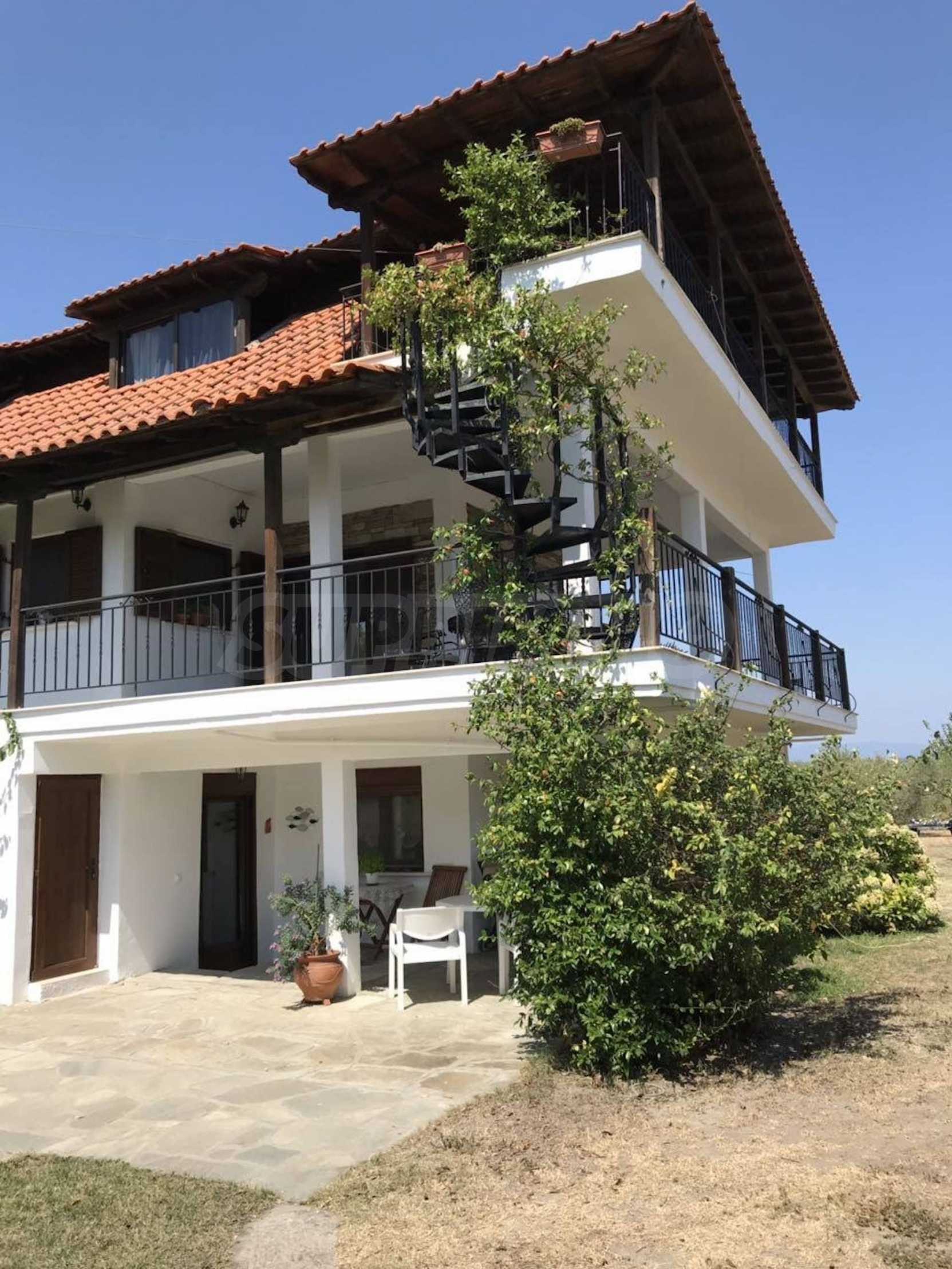 Красива самостоятелна къща на брега на морето, на много красиво място в Ситония, в сърцето на Халкидики. Имотът е разположен на площ от 3205.53 кв.м. , с невероятна морска панорама, на 1.0 .км от центъра на селото Състои се от 3 нива с общо 240 кв.м. жилищна площ. Имотът включва 4 спални, склад и 4 бани