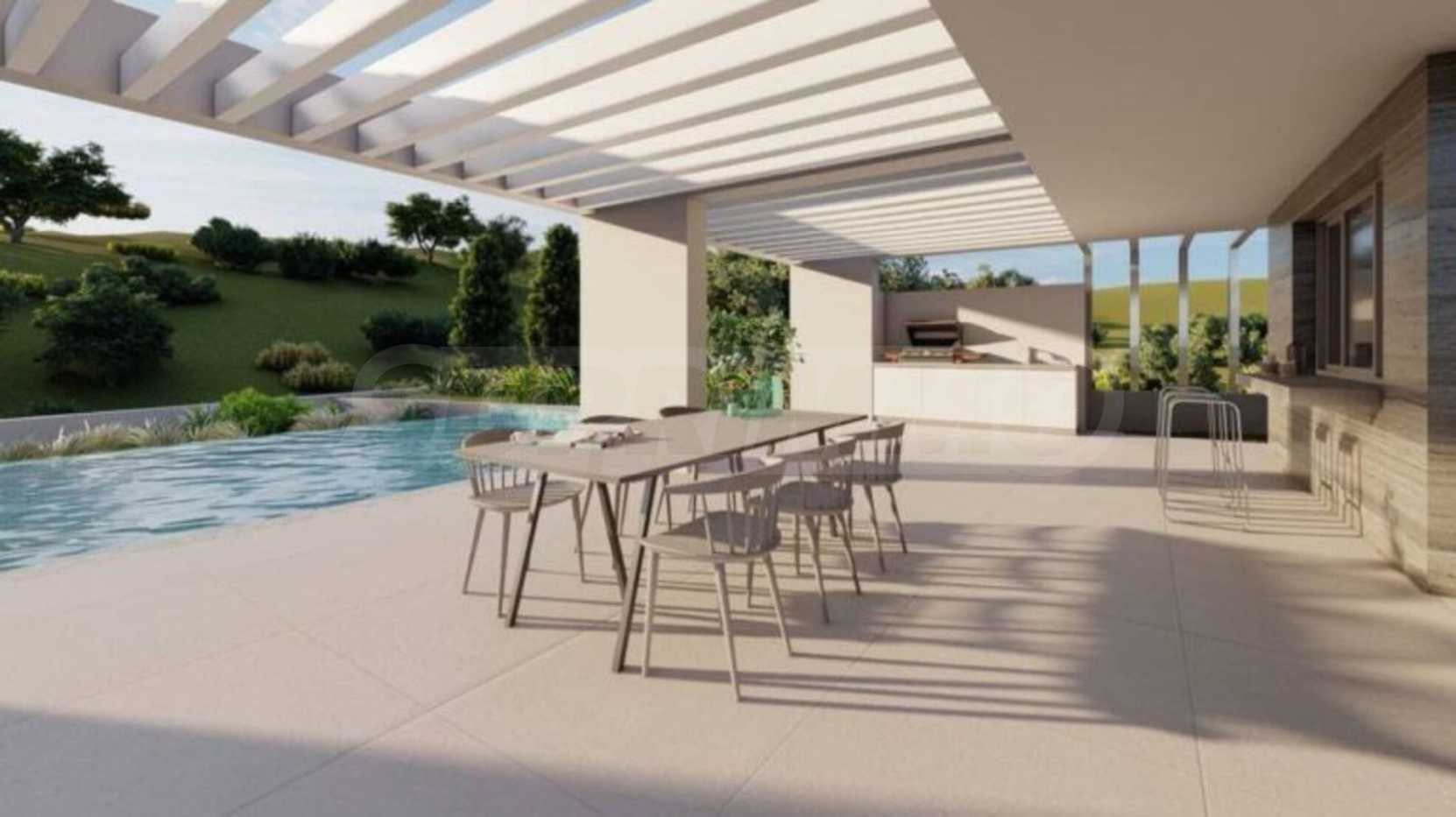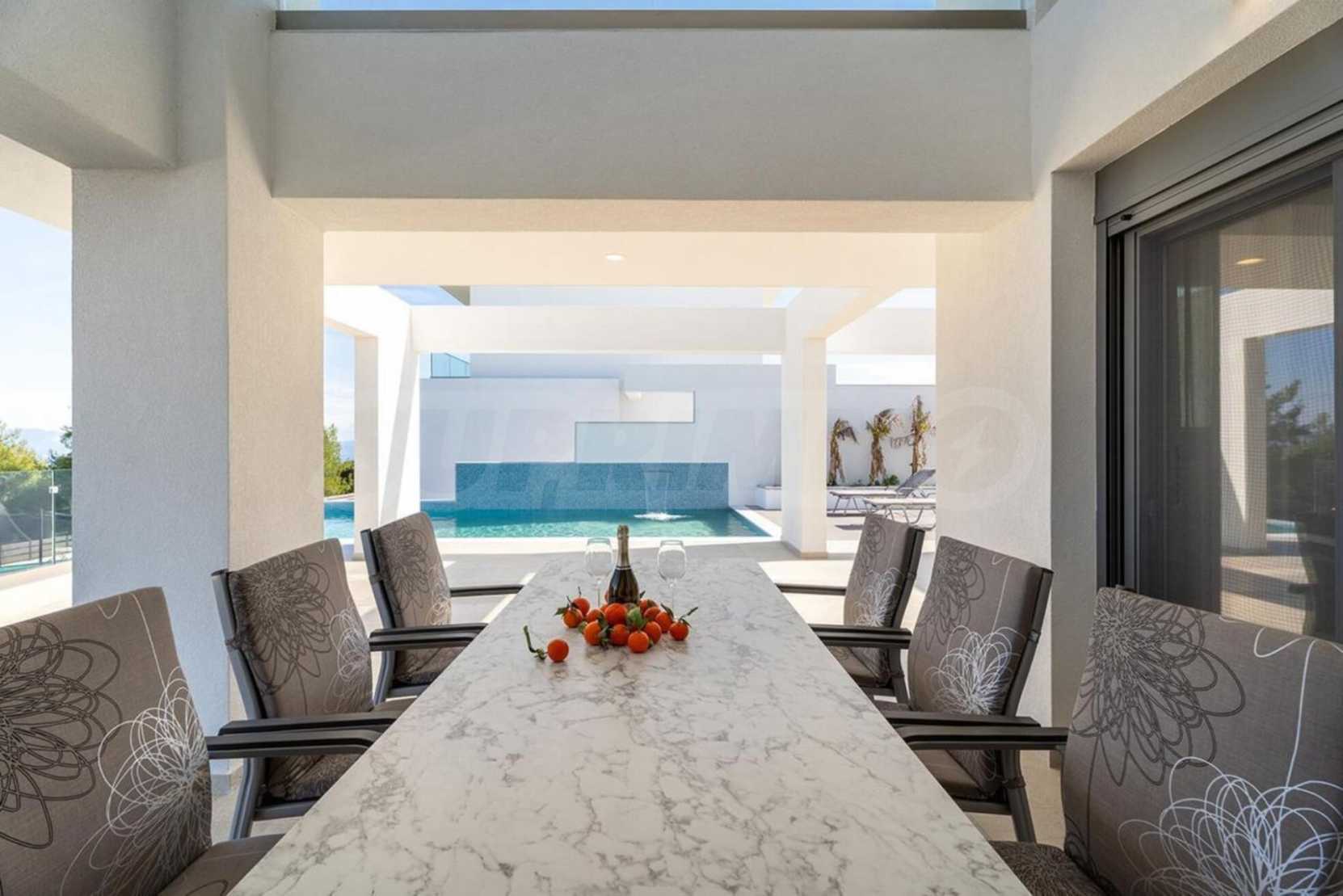 Луксозен имот, Красива самостоятелна къща с басейн, на забележително място в Касандра, в сърцето на Халкидики. Имотът е разположен на площ от 3000 кв.м. , с изключителна морска панорама, на 1.2 .км от центъра на селото Състои се от 3 нива с общо 250 кв.м. жилищна площ. Имотът включва 6 спални, склад и 4 бани