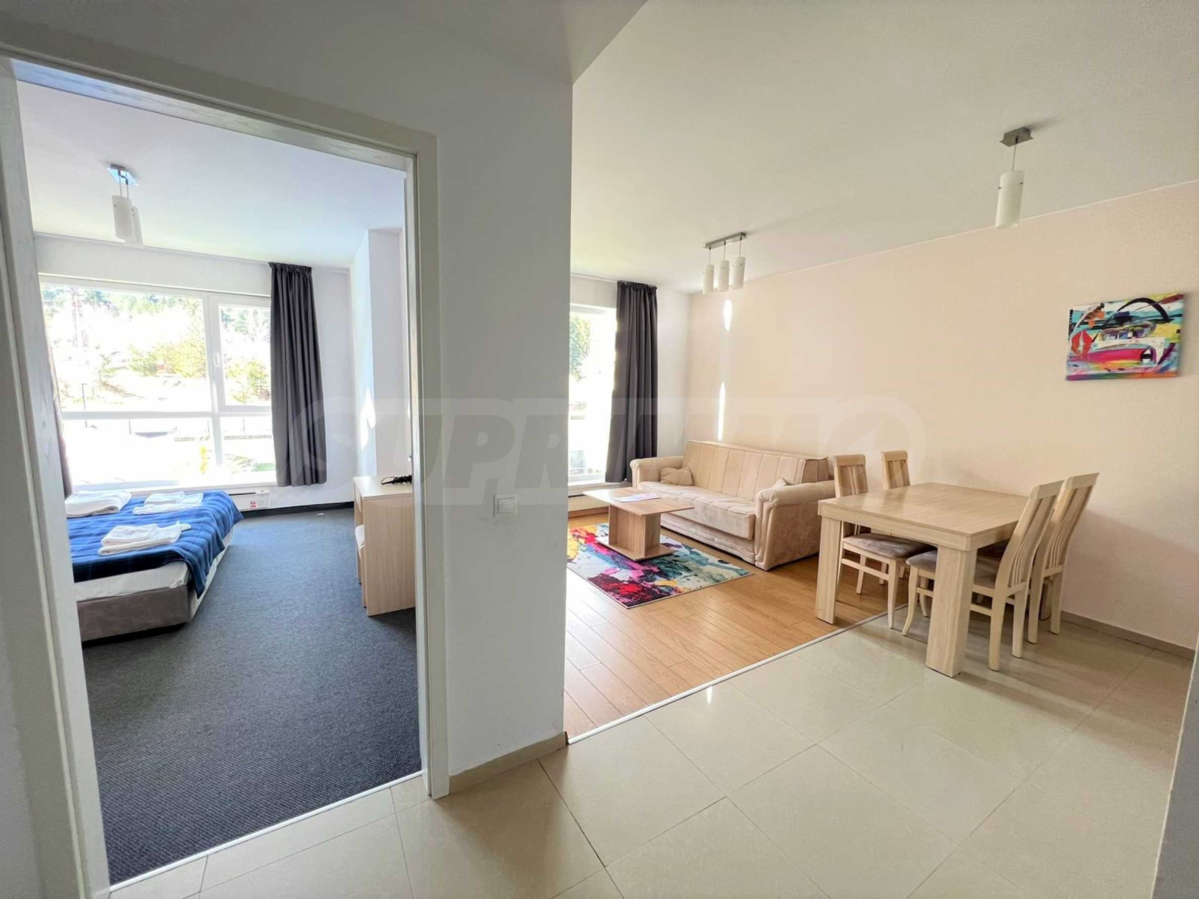 Атрактивно предложение за просторен двустаен апартамент в модерен затворен комплекс, построен в местността Кошерина на планински курорт Банско.