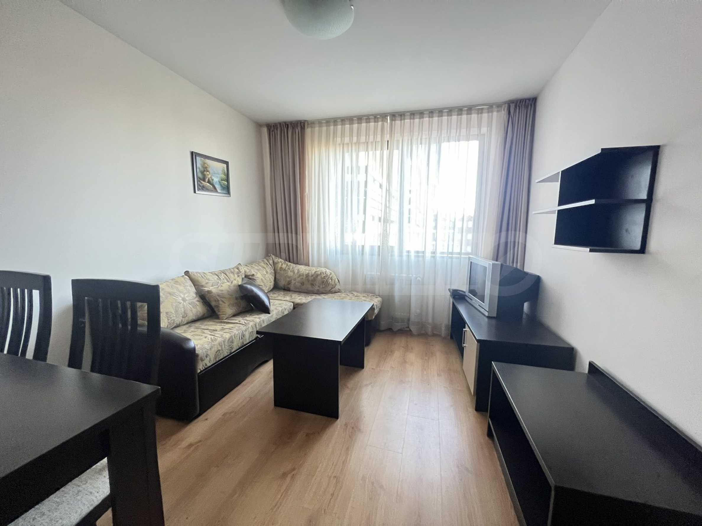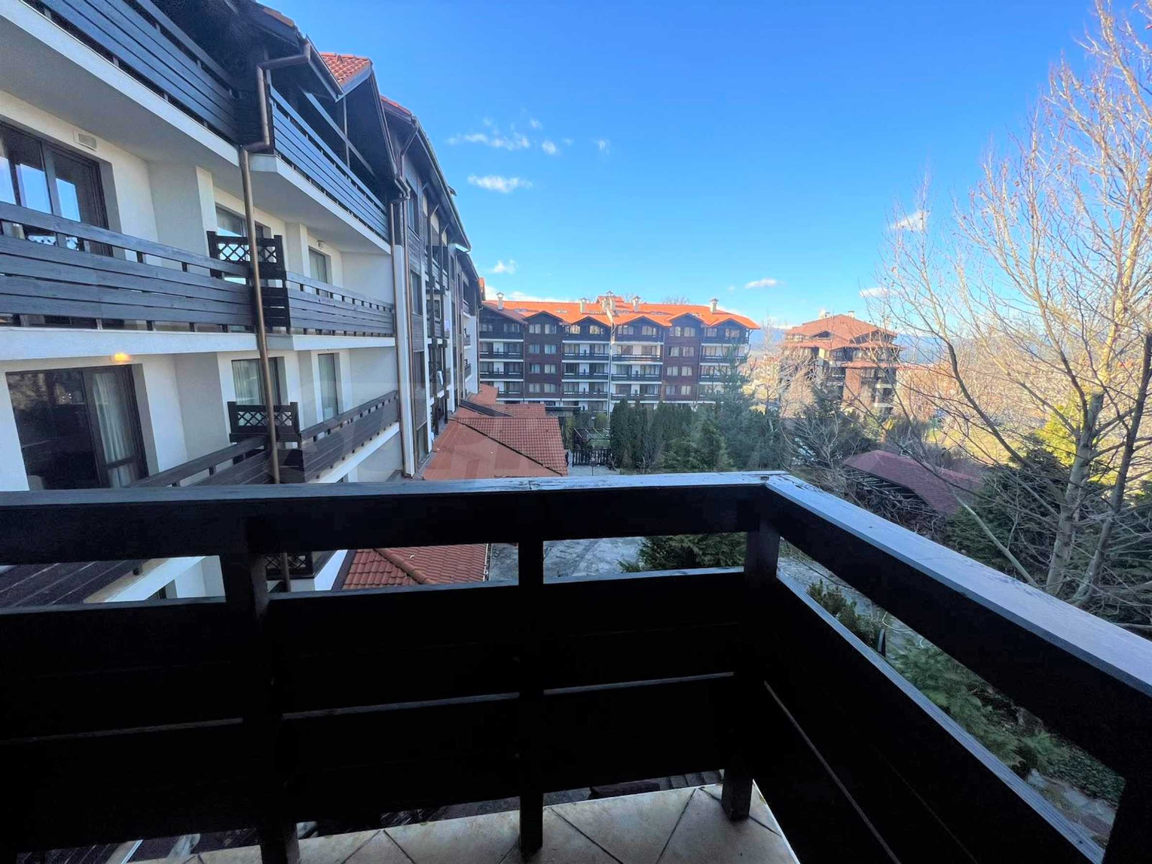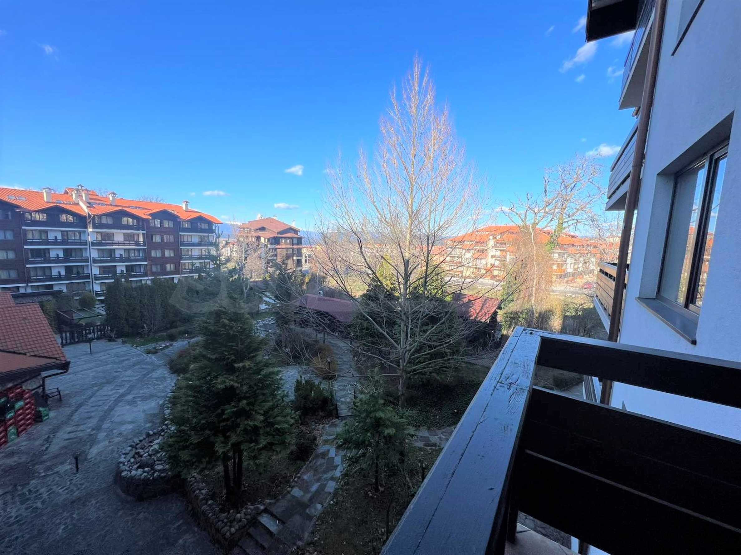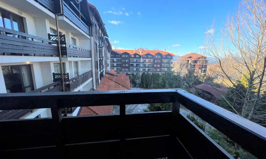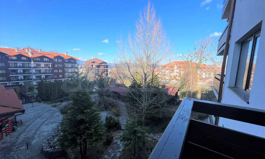 Изцяло обзаведен и оборудван двустаен апартамент с приятна гледка към вътрешния двор на луксозен затворен комплекс „Сънрайз Парк & Спа“, характеризиращ се с удобна локация, само на 600 метра от кабинковия лифт и в близост до национален парк Пирин.
