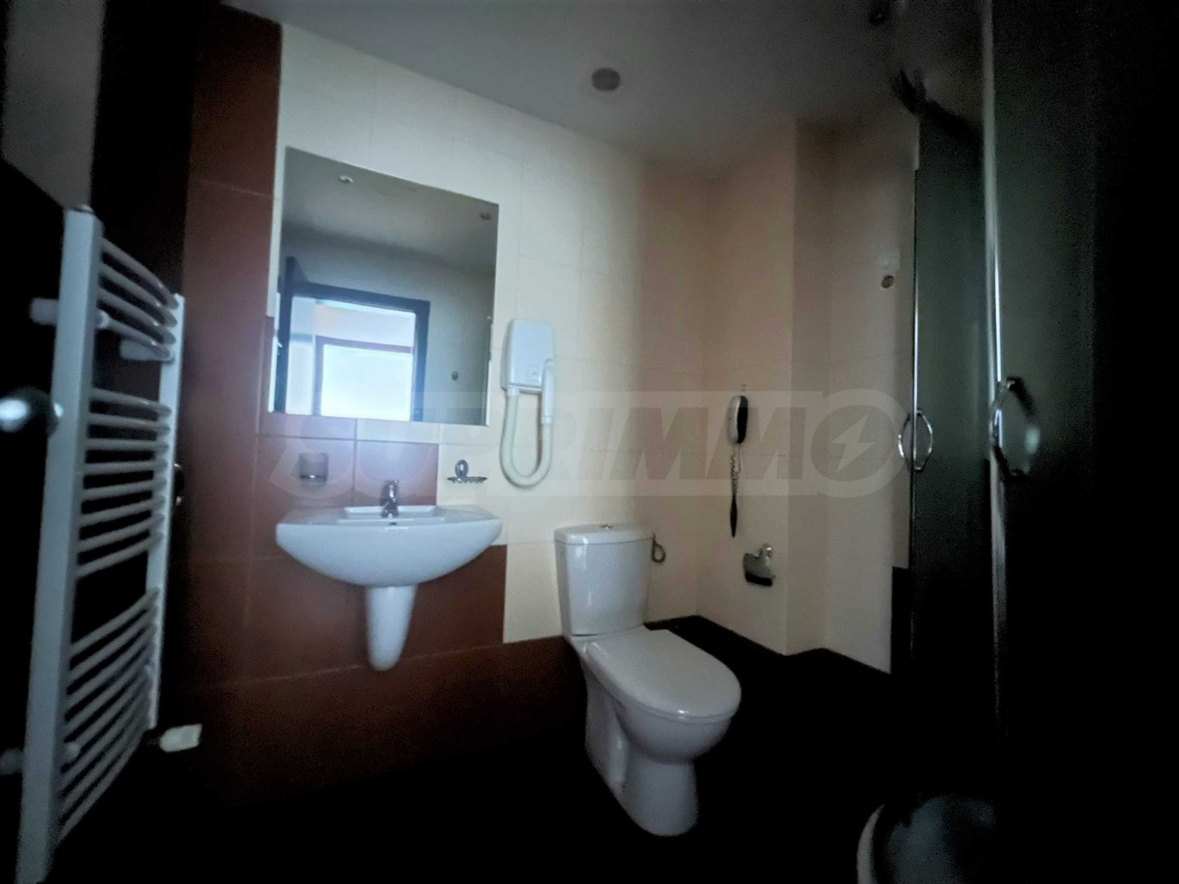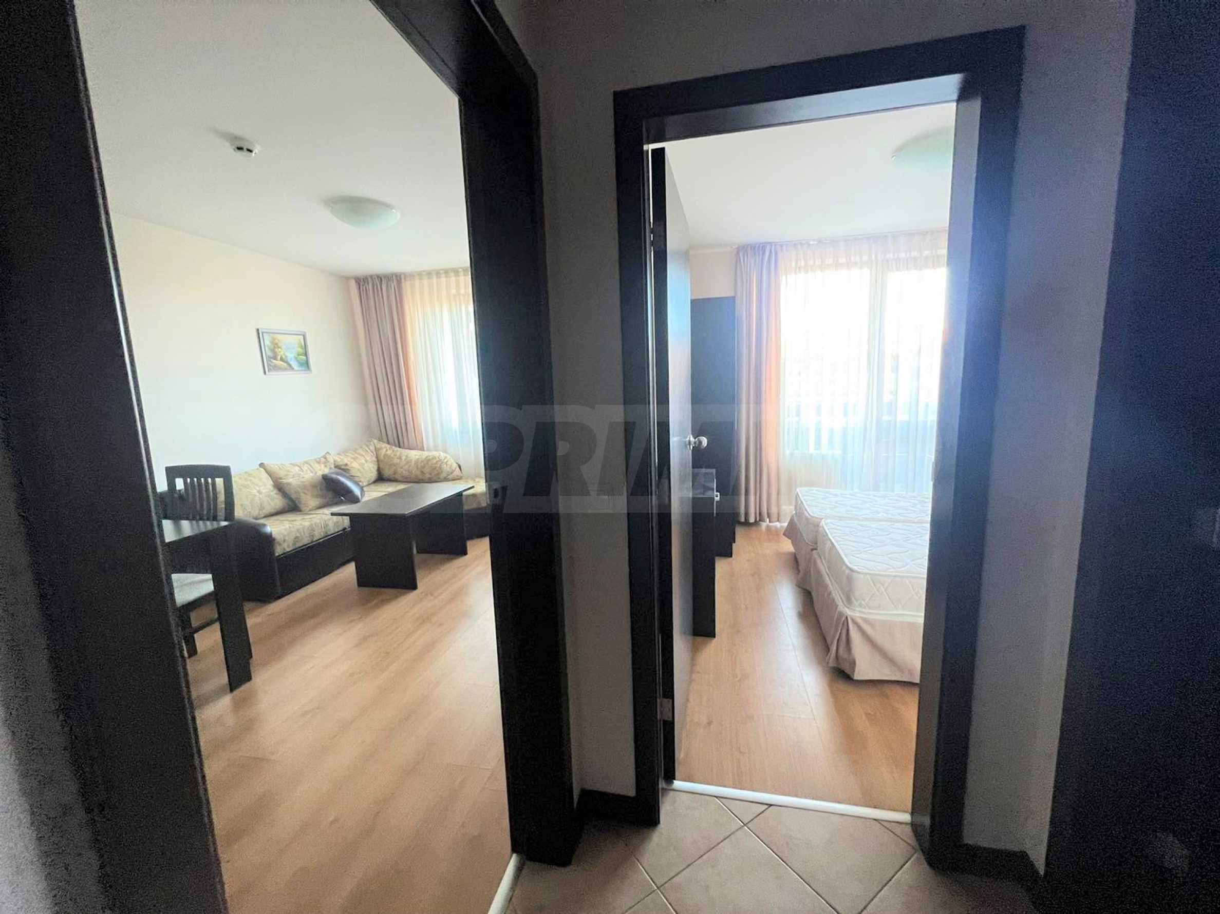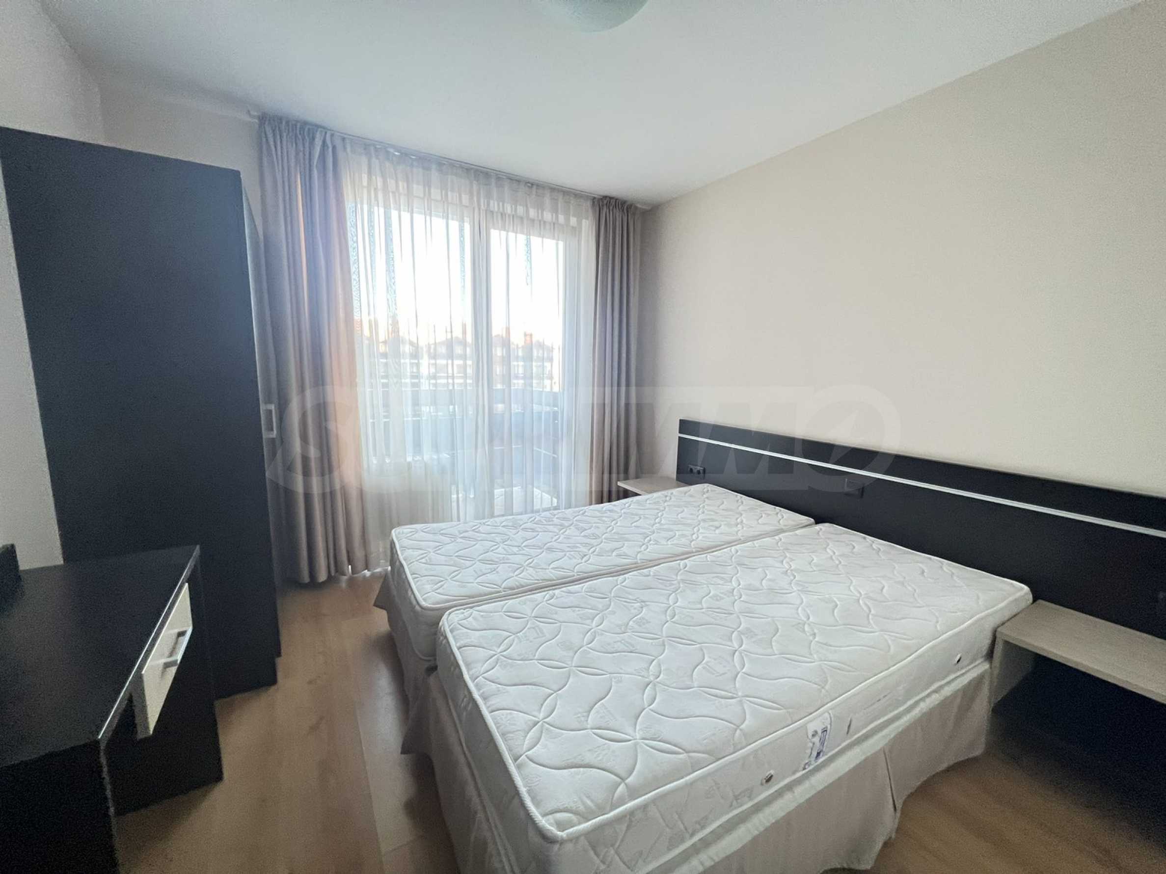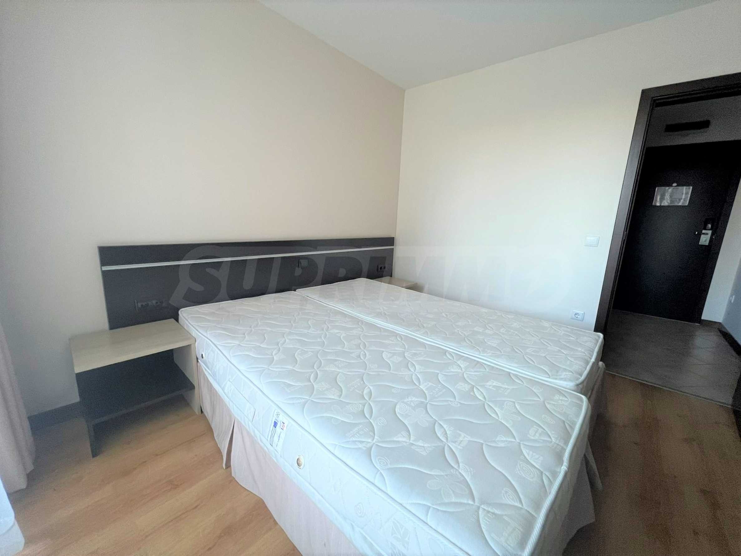 Изцяло обзаведен и оборудван двустаен апартамент с приятна гледка към вътрешния двор на луксозен затворен комплекс „Сънрайз Парк & Спа“, характеризиращ се с удобна локация, само на 600 метра от кабинковия лифт и в близост до национален парк Пирин.