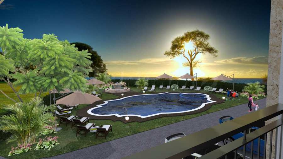 На територията е предвиден красив басейн със зона за шезлонги и озеленяването.