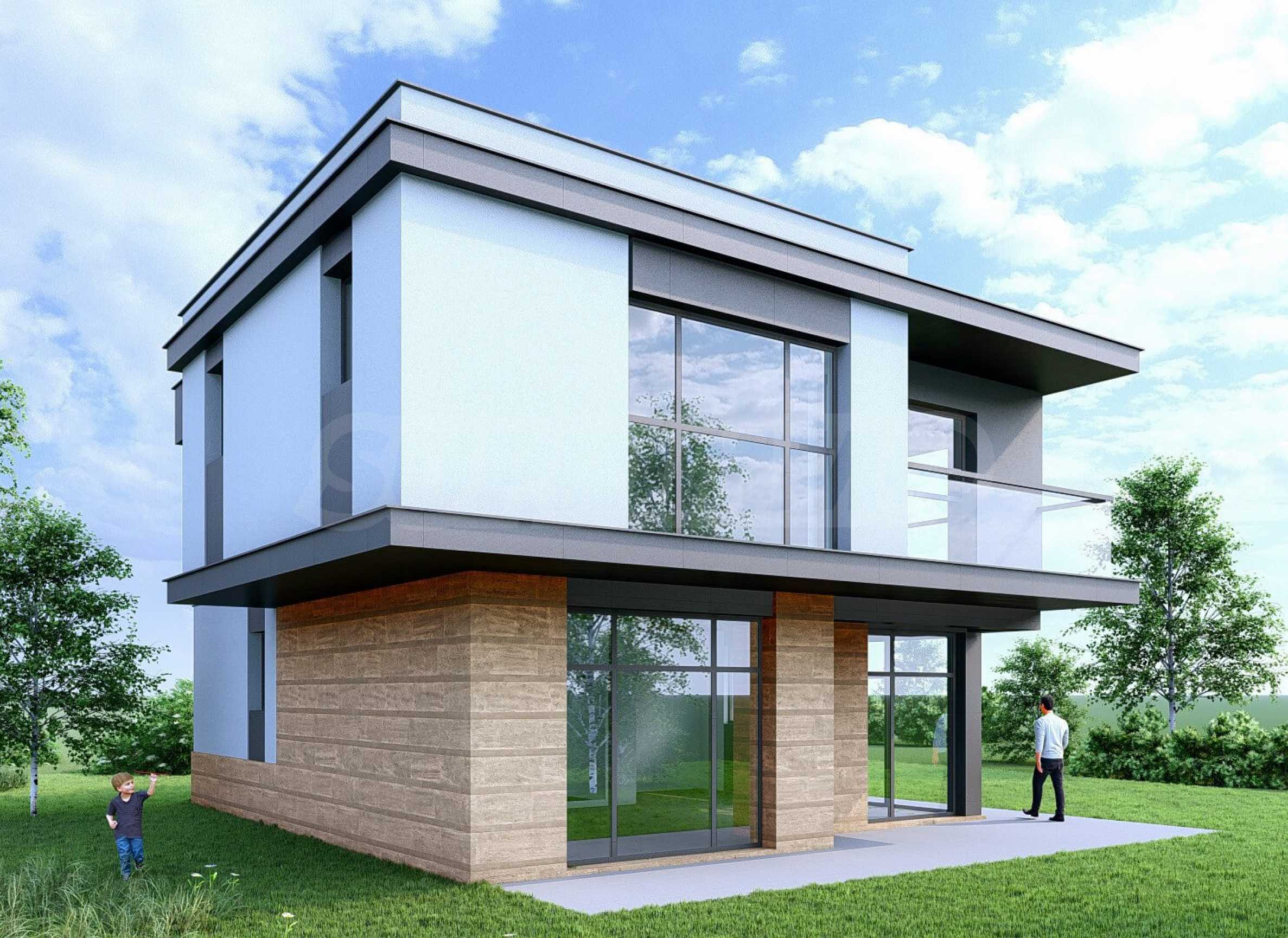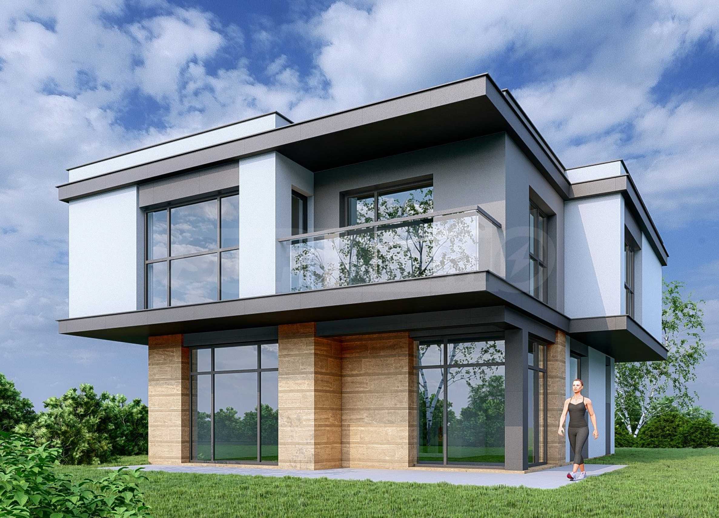 Къщите в комплекса са проектирани на два етажа в модерен изчистен стил и разполагат със собствен двор до 600 кв.м, който е идеален за релаксация или за дружески събирания на открито. Строителството е с висок клас материали и с изключителна прецизност и внимание към детайла. Уникалността на терена и разположението на отделните къщи осигуряват панорамна и успокояваща гледка на всеки имот.