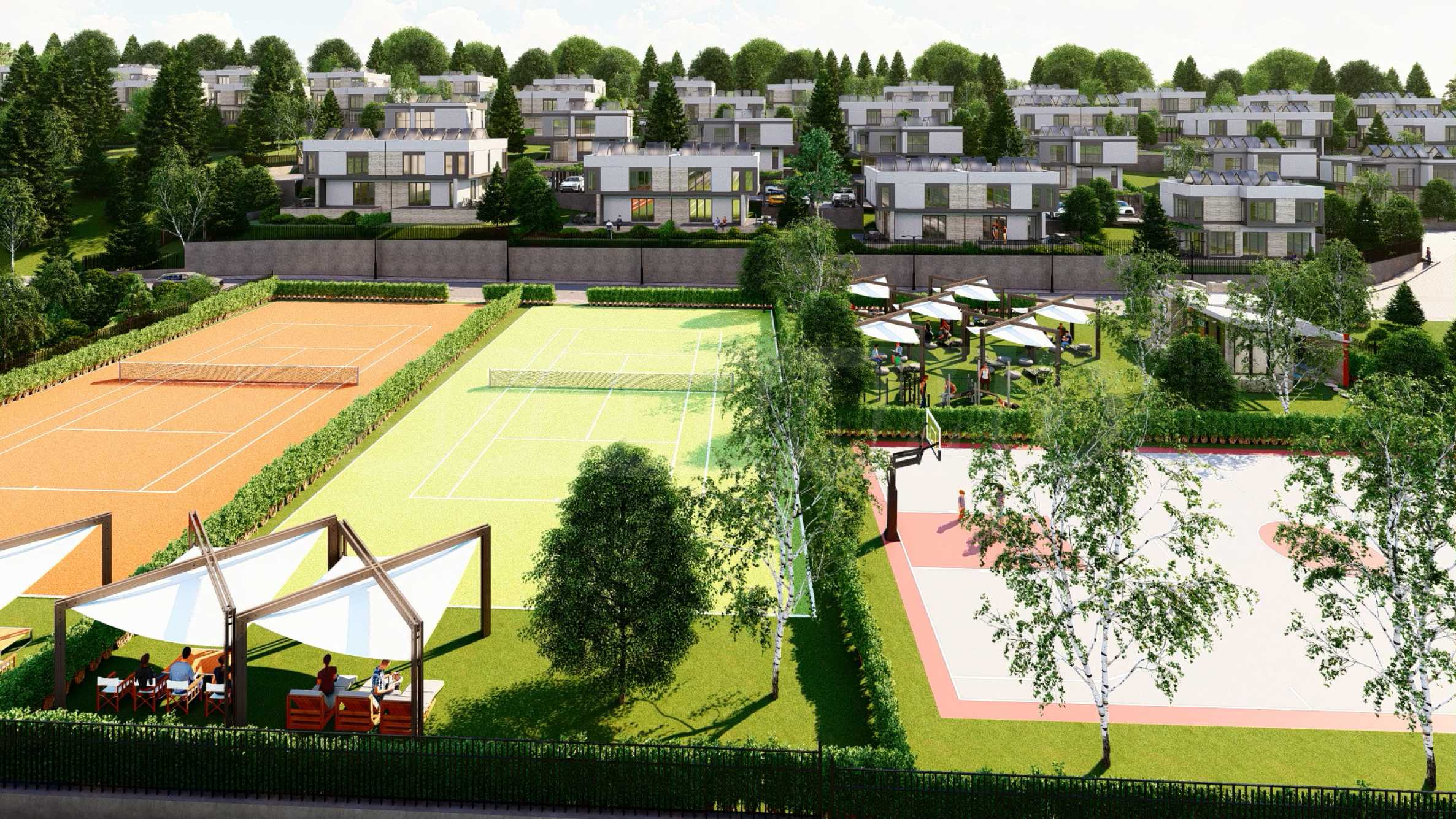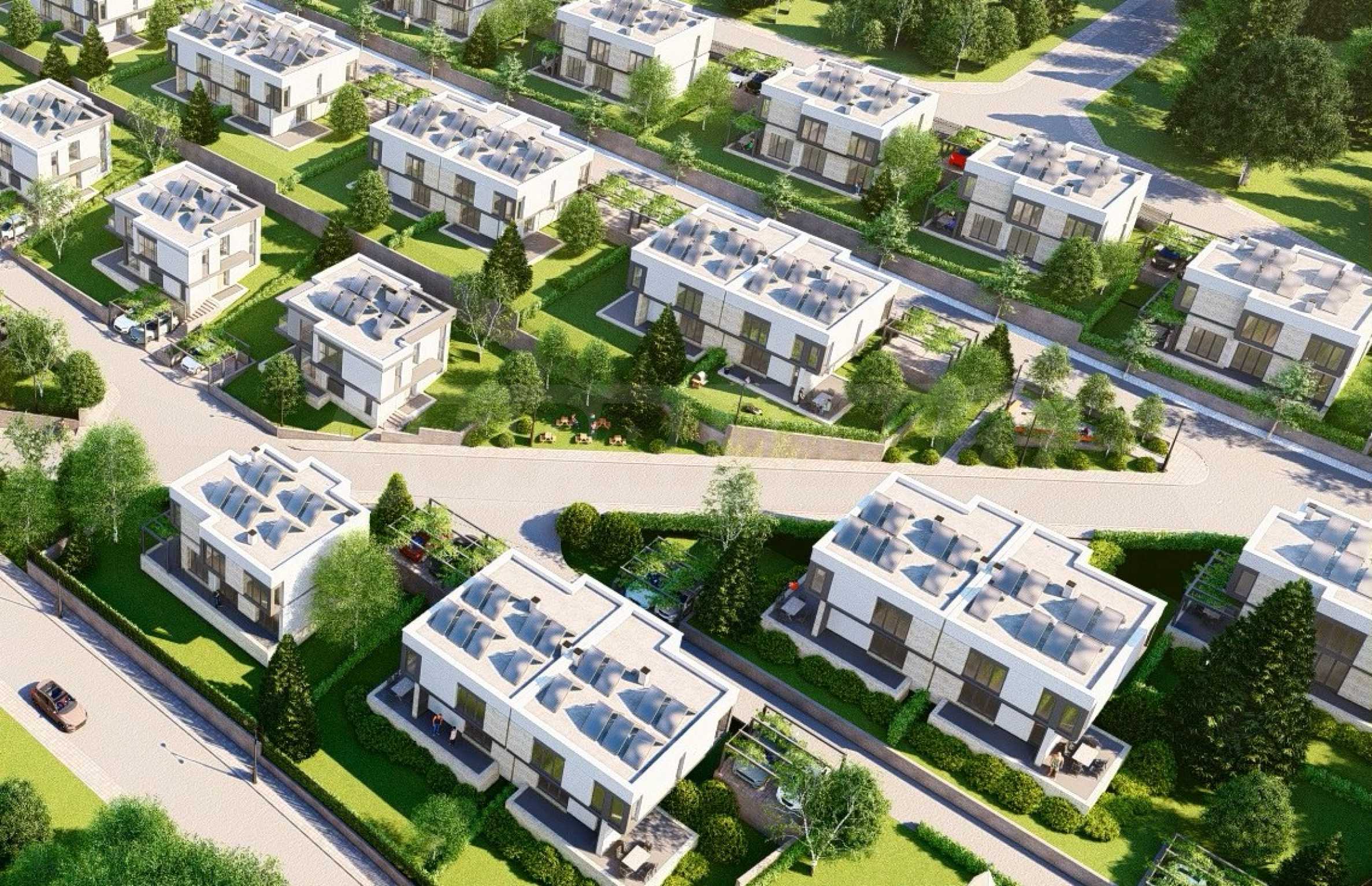 Проектът се състои от 70 кокетни и модерни къщи със самостоятелен двор, обединени в затворен комплекс с контрол на достъпа и отлично планирани общи пространства, отговарящи на най-високите изисквания. Сред осигурените удобства са две детски площадки, игрища за тенис, футбол и баскетбол, както и зони за разходка и пикник. Теренът, върху който е изграден комплекса е с юго-източно изложение, което осигурява достатъчно слънчева светлина и топлина през целия ден, както и пленяваща гледка към Витоша планина. Възползвайте се от възможността да живеете в спокойна и уютна среда, която ще ви предложи всички удобства на градския живот сред много зеленина и чист въздух.