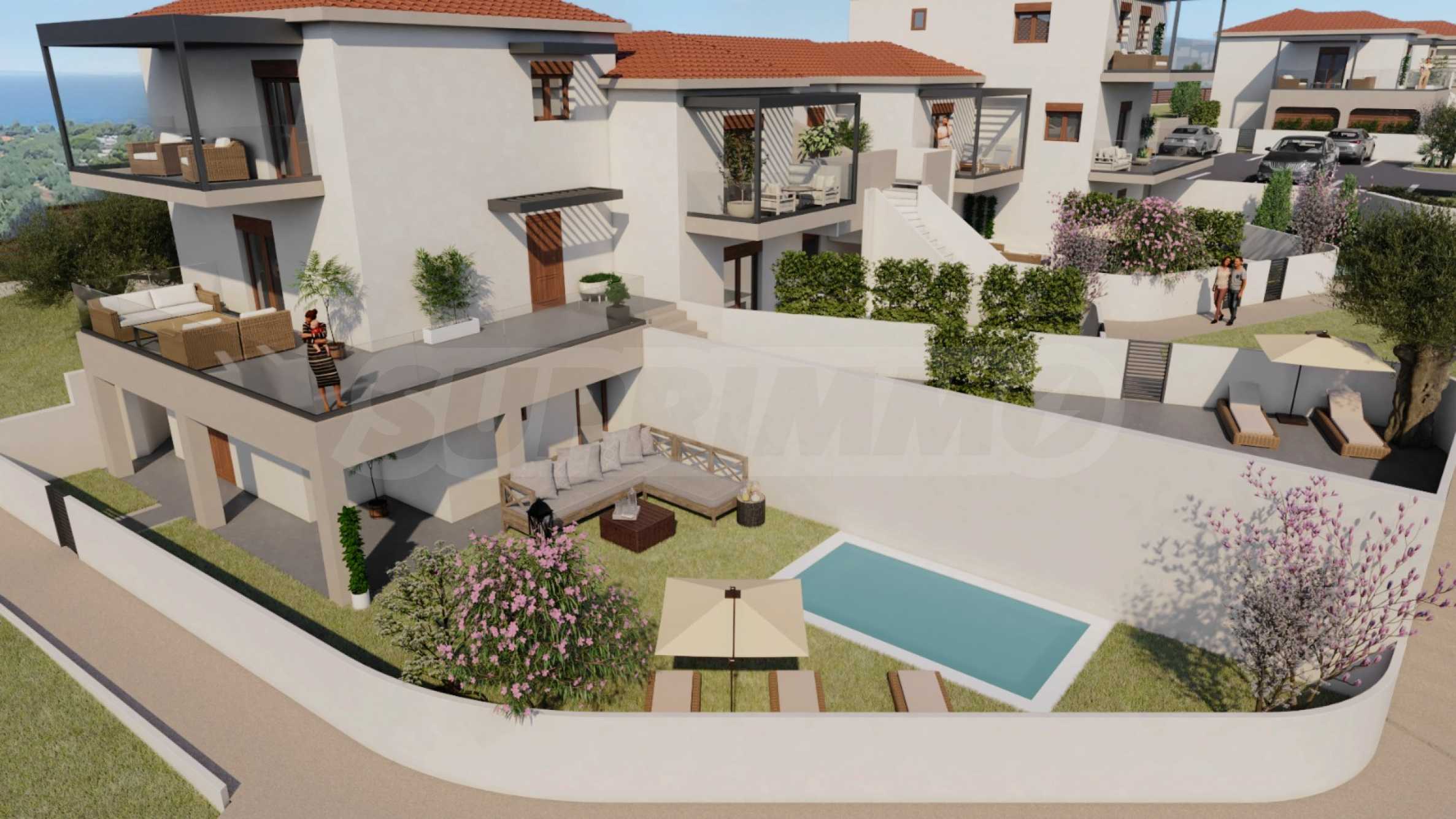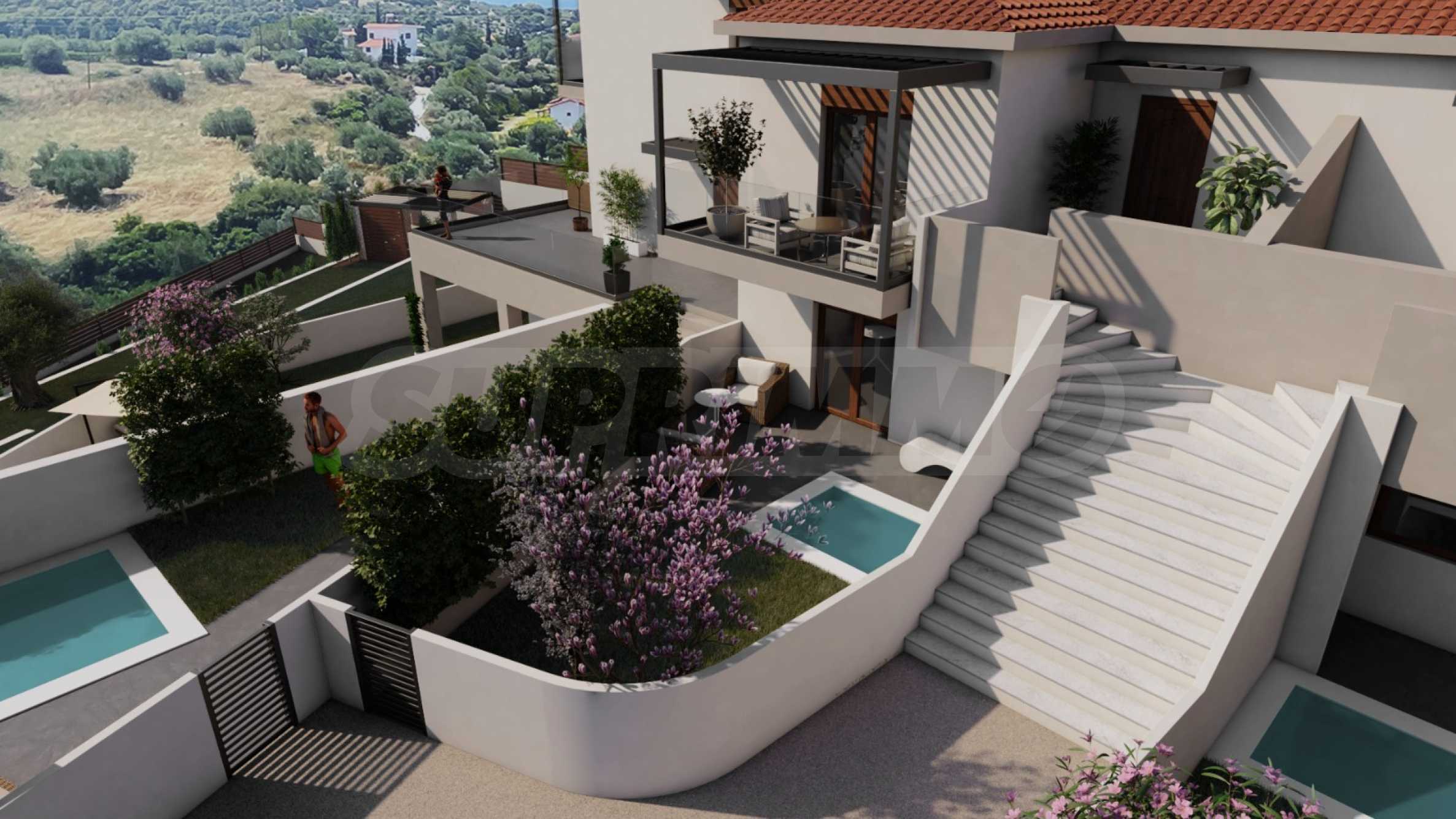 Предвидени са и кътове за отдих с беседки и барбекю, както и възможност за малък личен басейн или джакузи към всеки от имотите.
