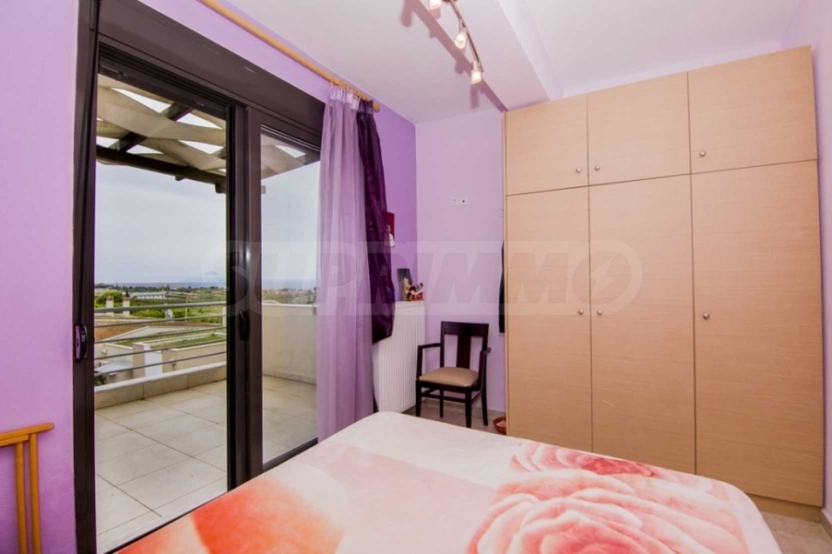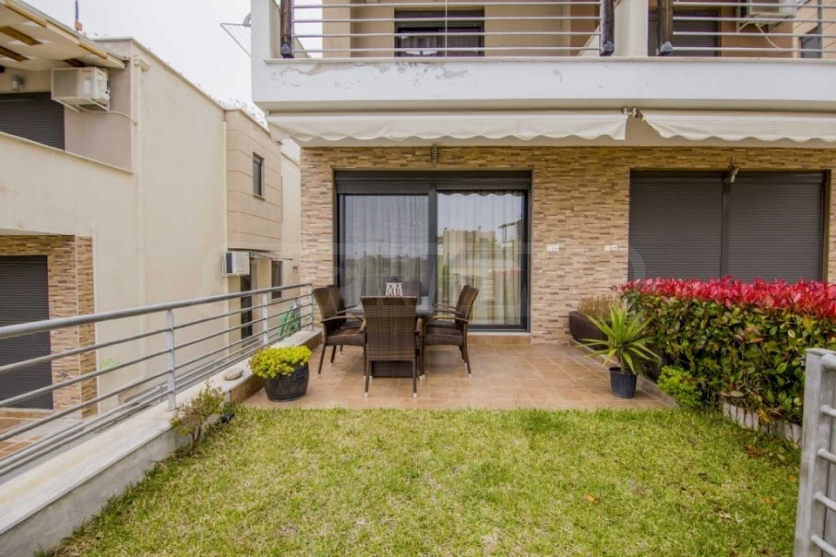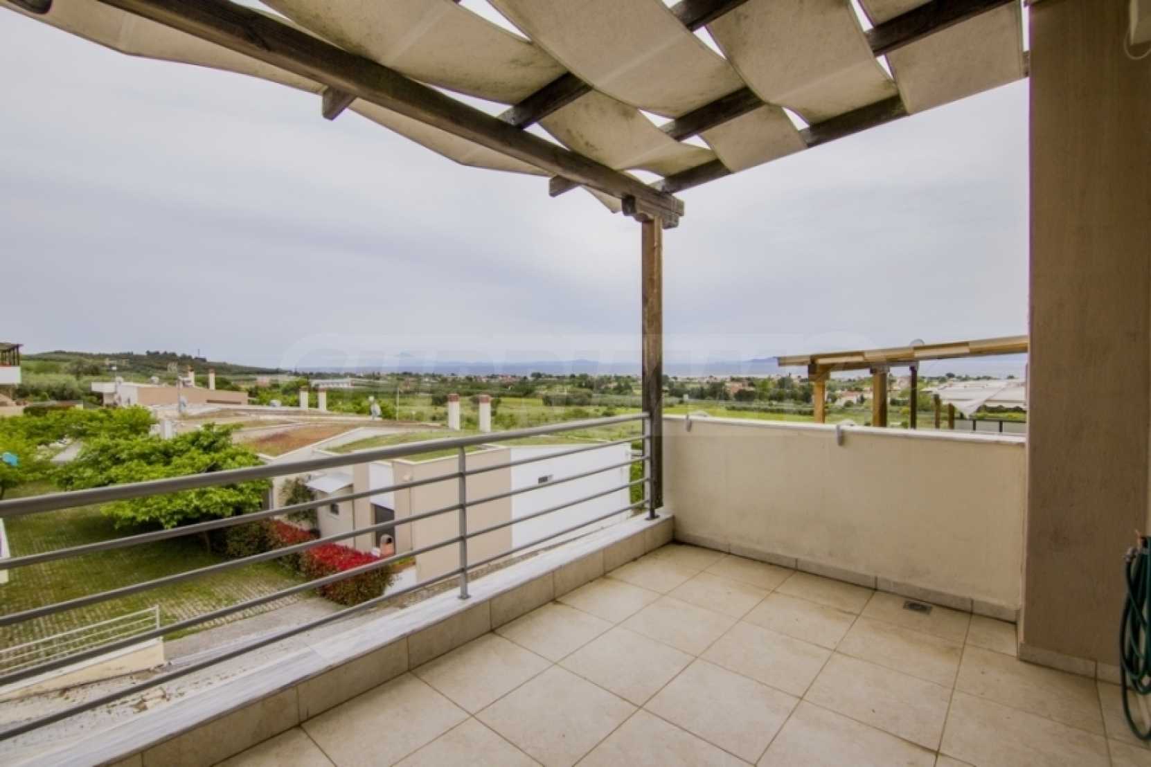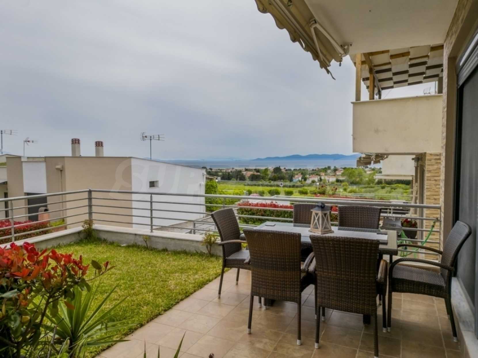 Двуетажен мезонет със сутерен 106,5кв.м с ексклузивно ползване на земя 104кв.м в комплекс Панорама в Кариани, Кавала. Партерът се състои от просторен хол с кухня и wc. По вътрешната стълба се стига до горното ниво, което се състои от две просторни спални и основна баня. И балконът, и верандата предлагат безпрепятствена гледка към морето. Резиденцията разполага с просторен сутерен, като част от него се използва като къща за гости, а останалата част като котелно помещение. Има автономно отопление на нафта, пластмасова дограма, шатра и барбекю.